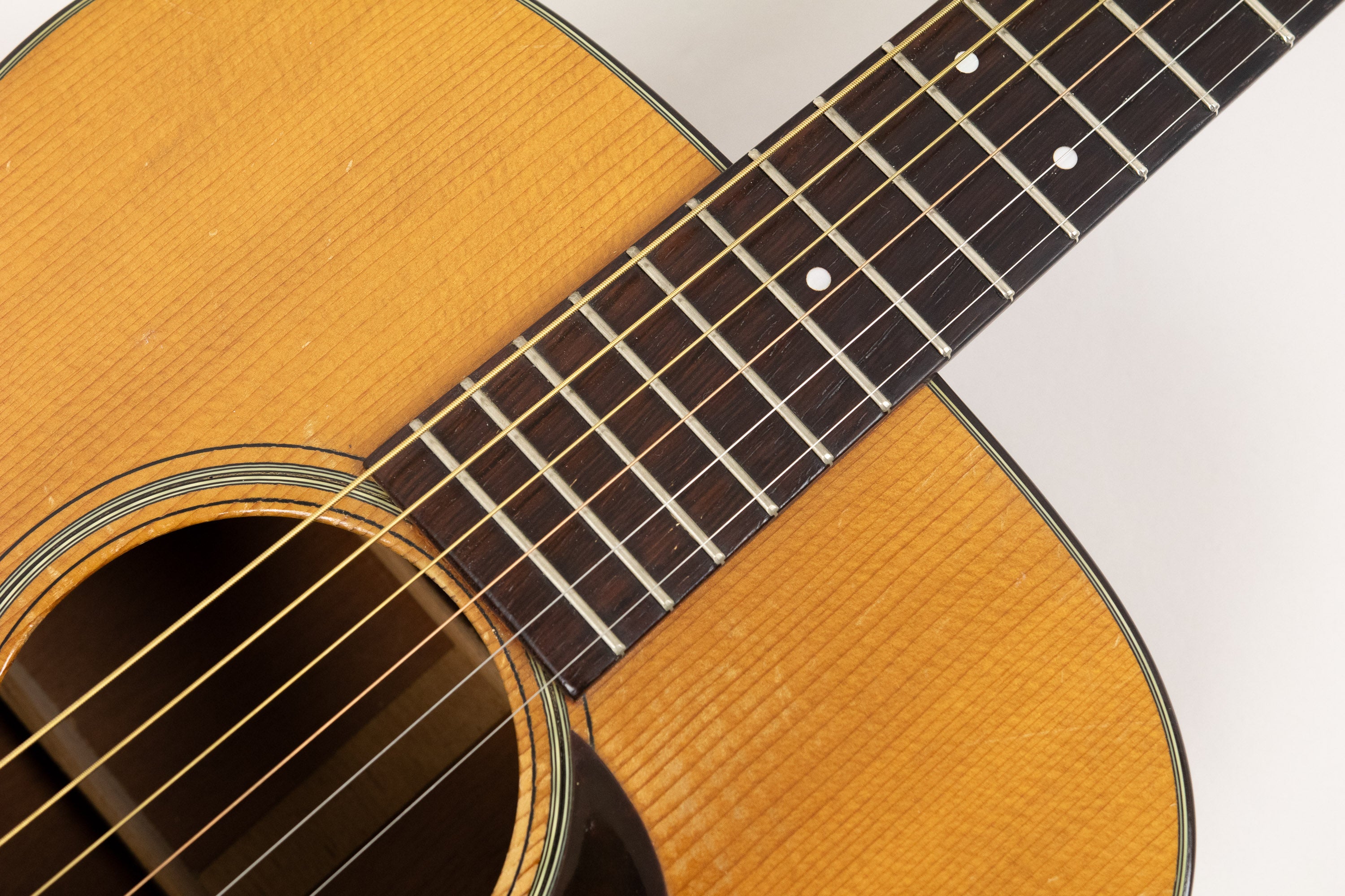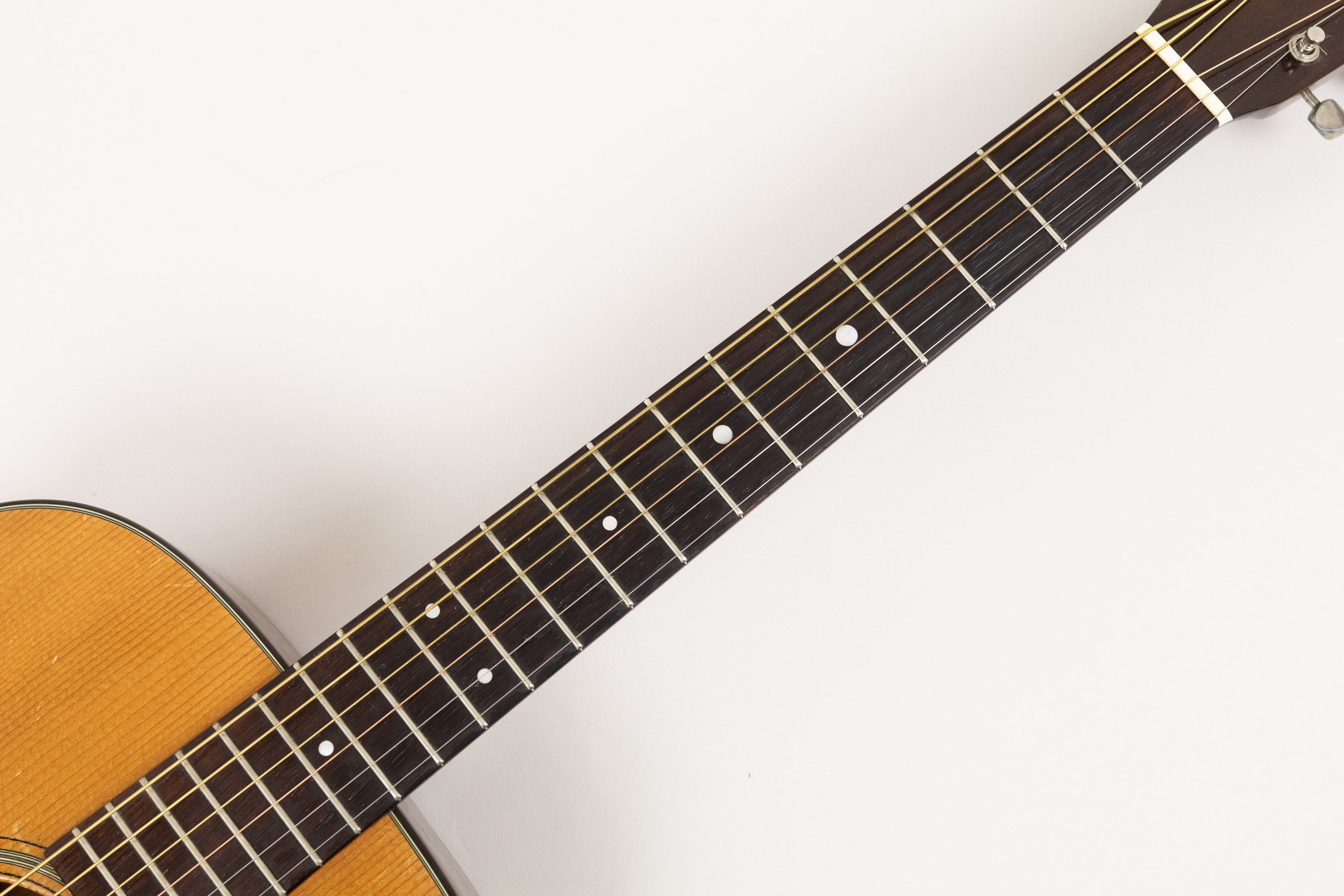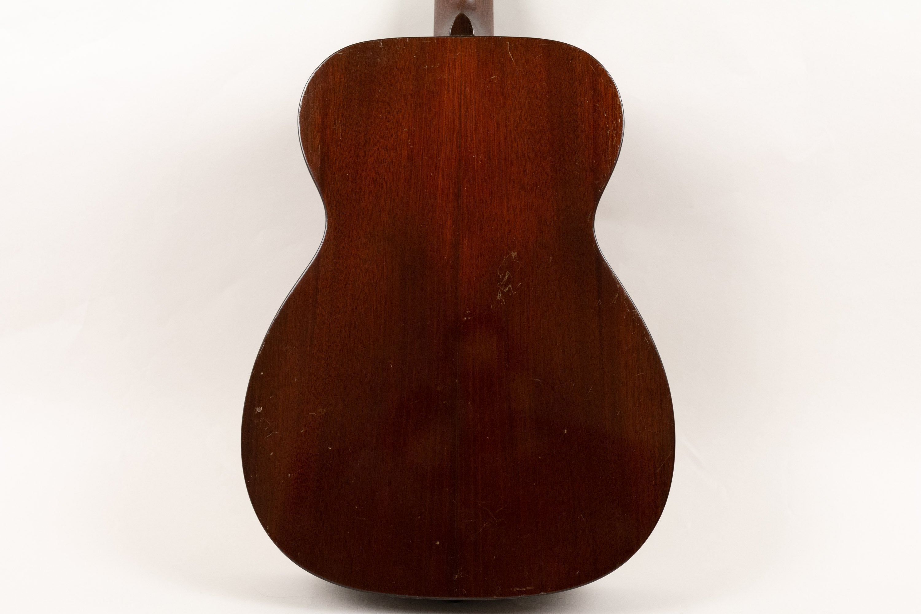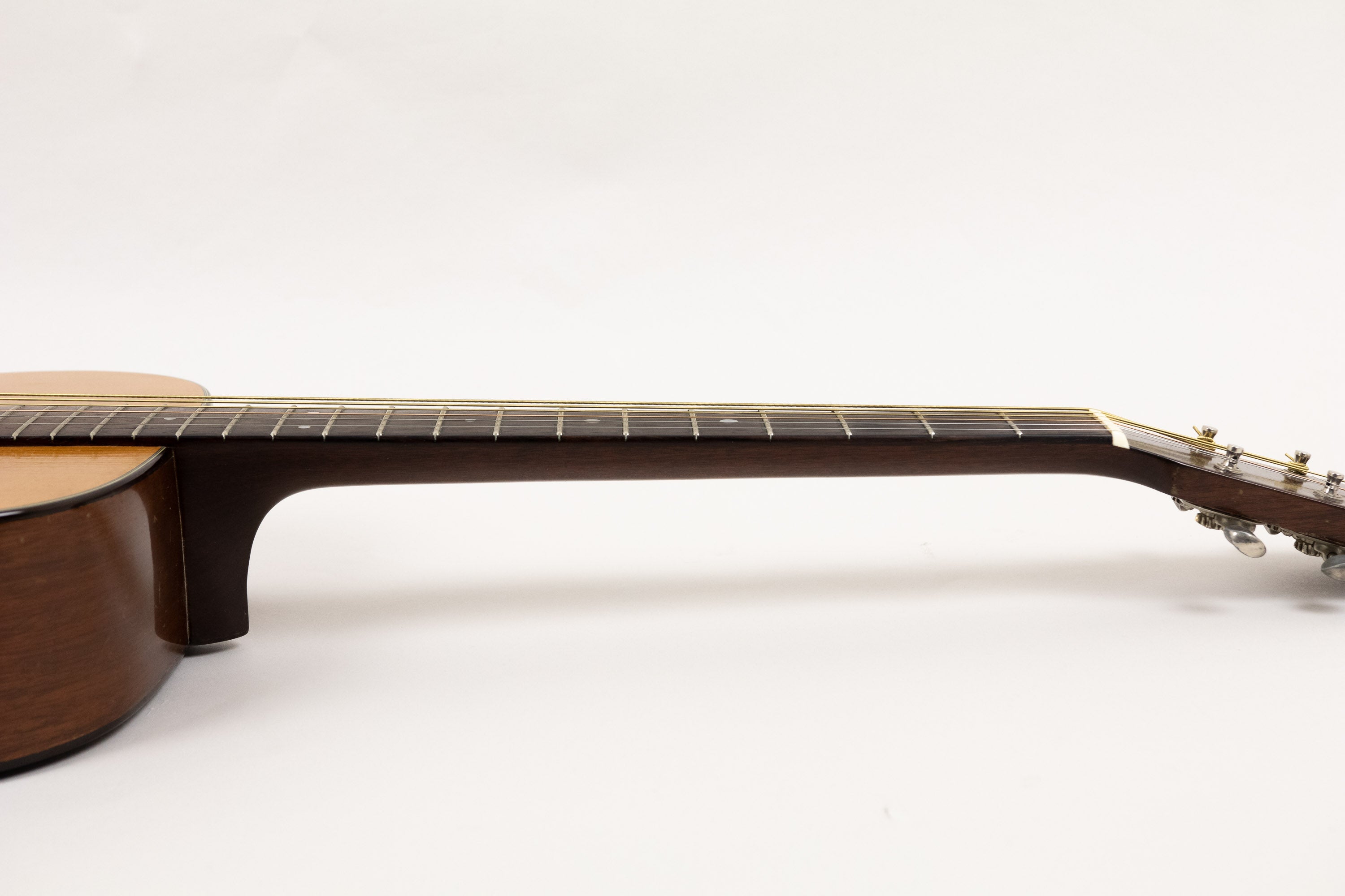 Presented in very good condition for its age, this guitar has been well cared for across its 75- year lifetime, with only very light playwear throughout and no sign of any splits, cracks or repairs. The neck has a comfortable, effortless feeling medium-C profile with a hint of V that thickens nicely towards the body. The frets appear original as does the nut. The bridge saddle has split between the D and G strings, however remains fully functional and with room left for height adjustment. The current action is however very comfortable, and plays very easily across the whole neck.