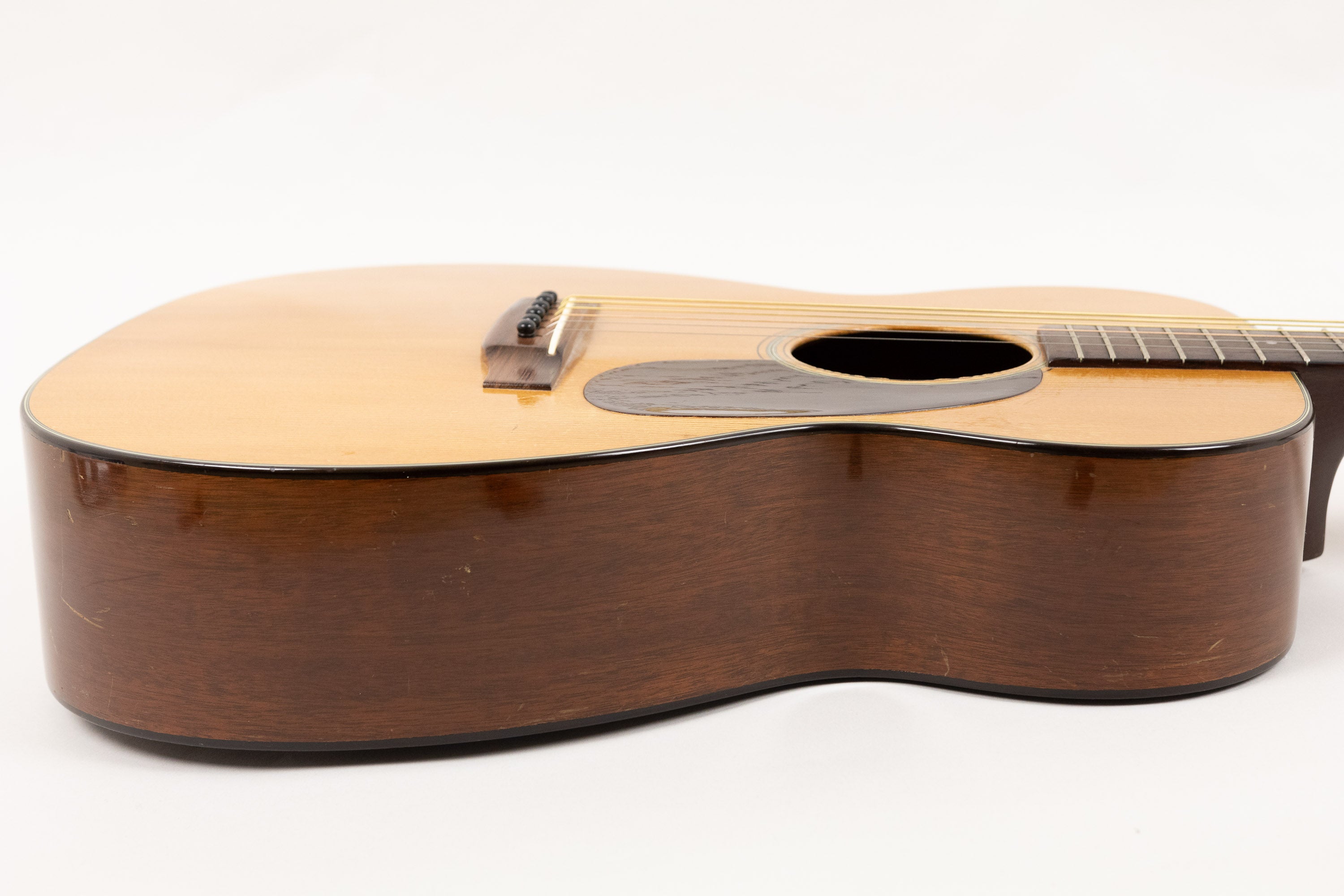 Constructed with a solid Sitka spruce top and mahogany back and sides, this 00-18 delivers a beautifully balanced voice. There’s a dry, woody fundamental with a clear, focused midrange and a sweet, open top end and the smaller 00 body size makes for an incredibly immediate and intimate playing experience, equally at home with fingerstyle, flatpicking or strumming.
