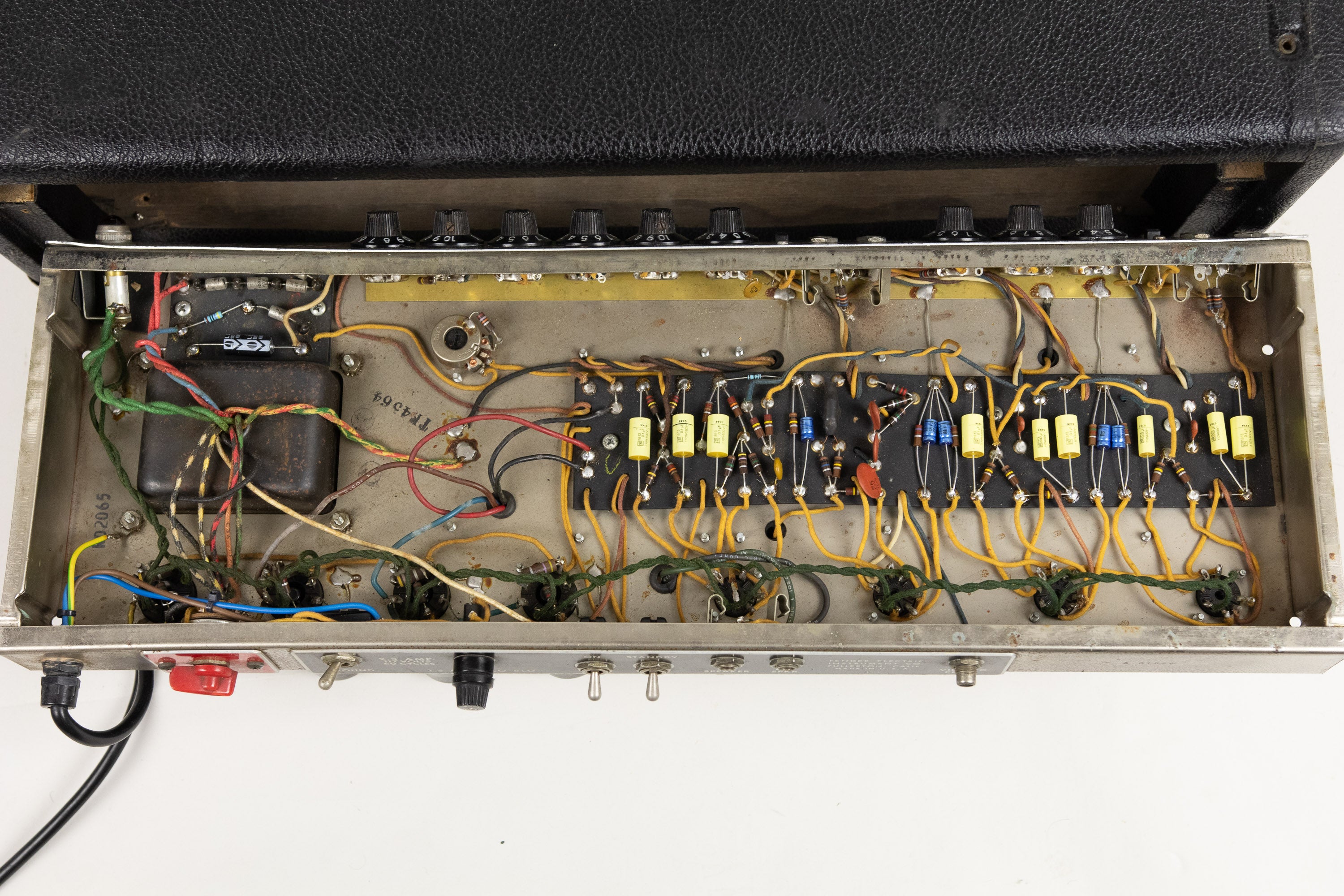 The head remains in excellent vintage condition. The original transformers are intact, the chassis and circuitry are clean, and any maintenance has been performed thoughtfully to preserve its authenticity and reliability. The tolex and grille cloth show only light, honest wear, consistent with a well-cared-for amp of this era. An alteration has been made to the mains cable outlet which has resulted in the back panel having a cut out to accommodate it.