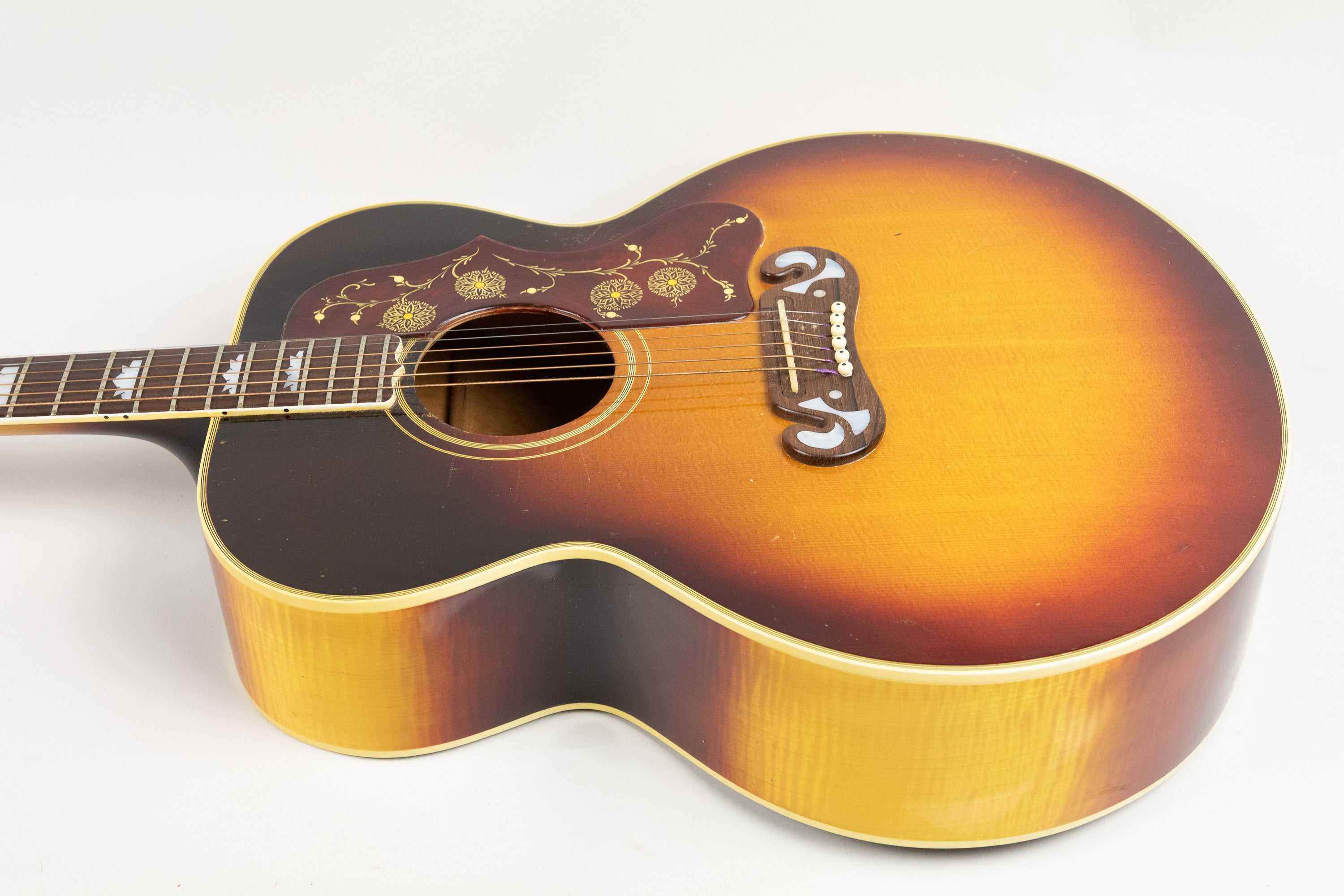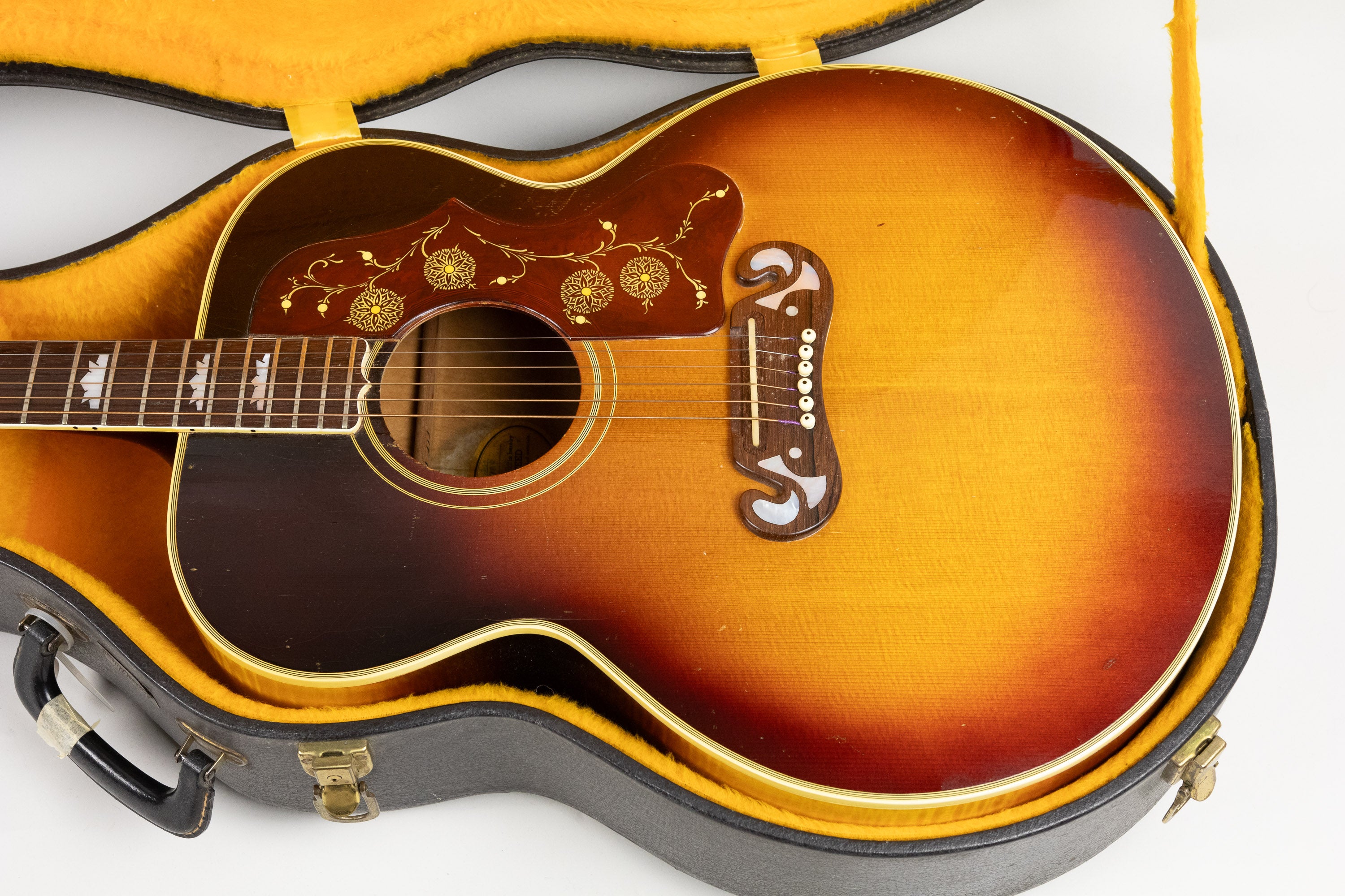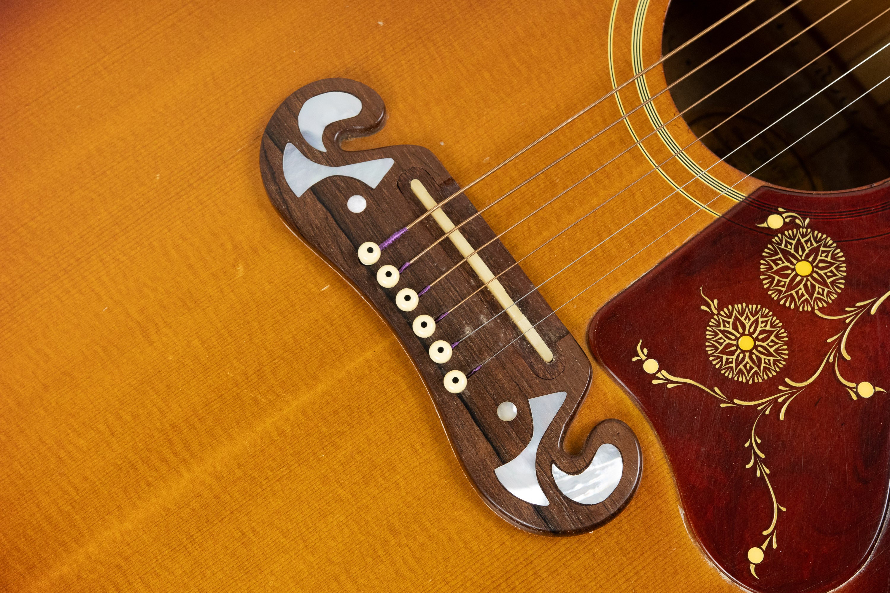 Overall, this is a characterful and visually striking mid-’60s J-200, combining classic Jumbo tone and presence with honest wear, sensible repairs and plenty of vintage appeal. Includes the original hard shell case.