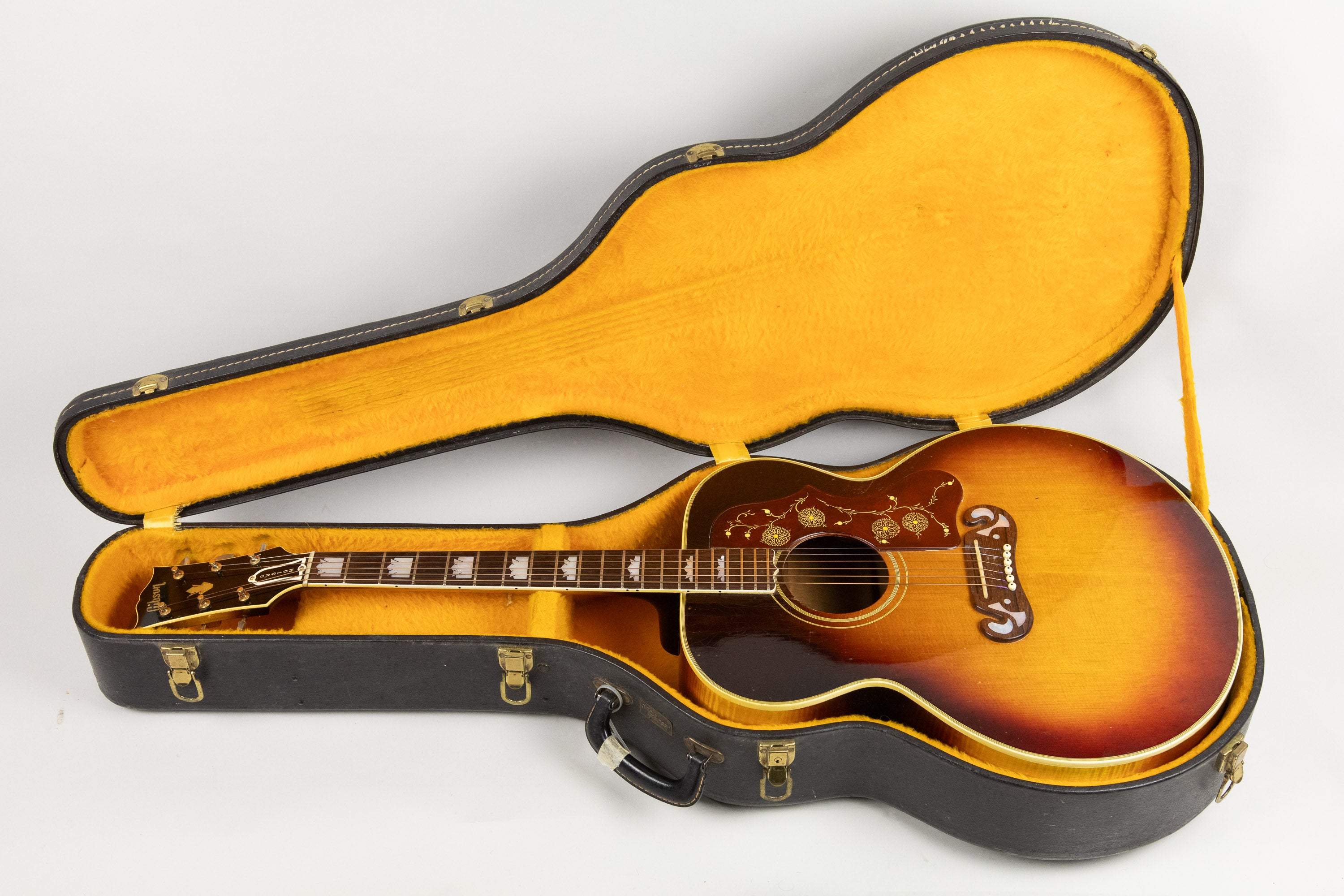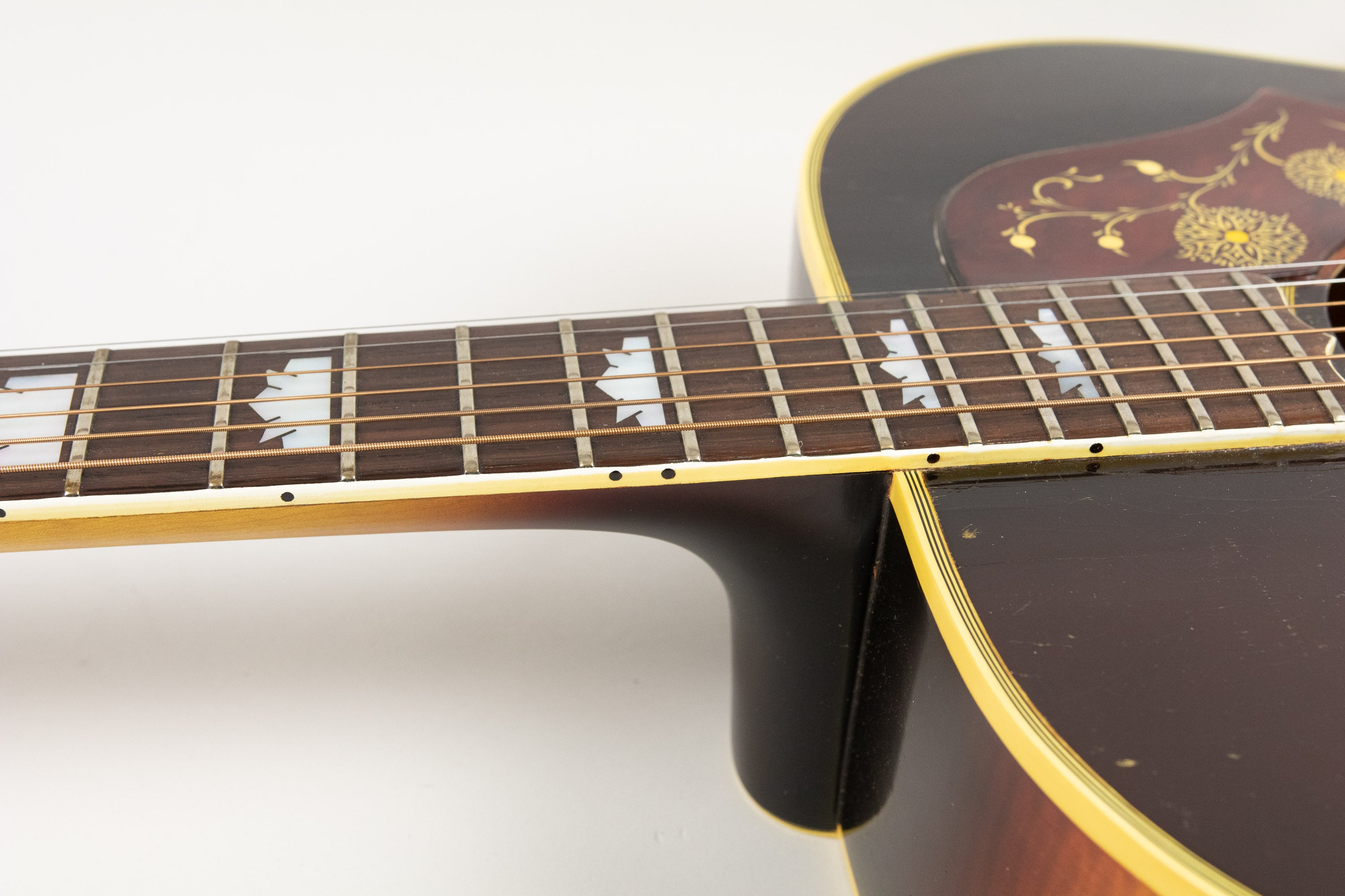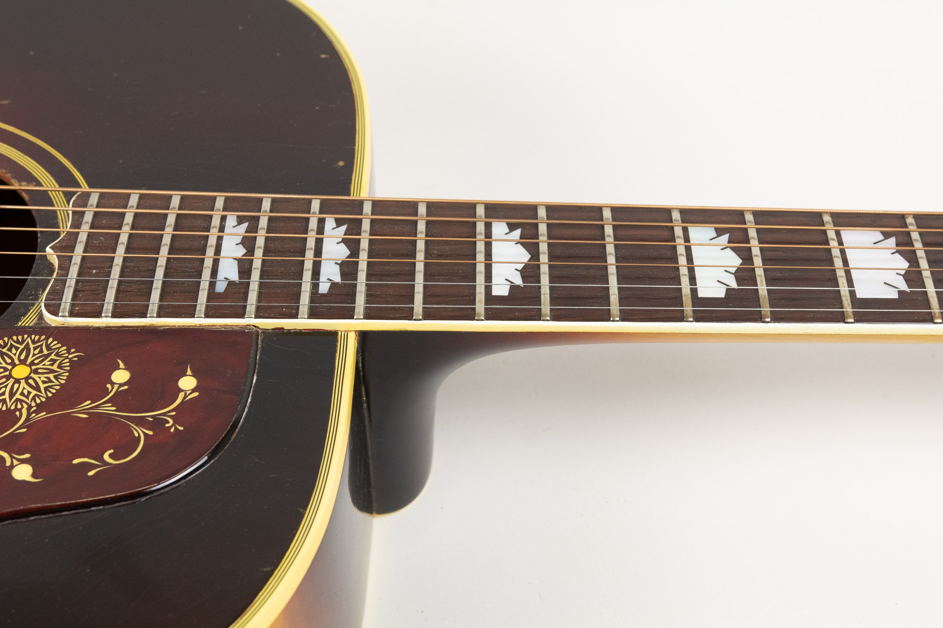 Overall, this is a characterful and visually striking mid-’60s J-200, combining classic Jumbo tone and presence with honest wear, sensible repairs and plenty of vintage appeal. Includes the original hard shell case.