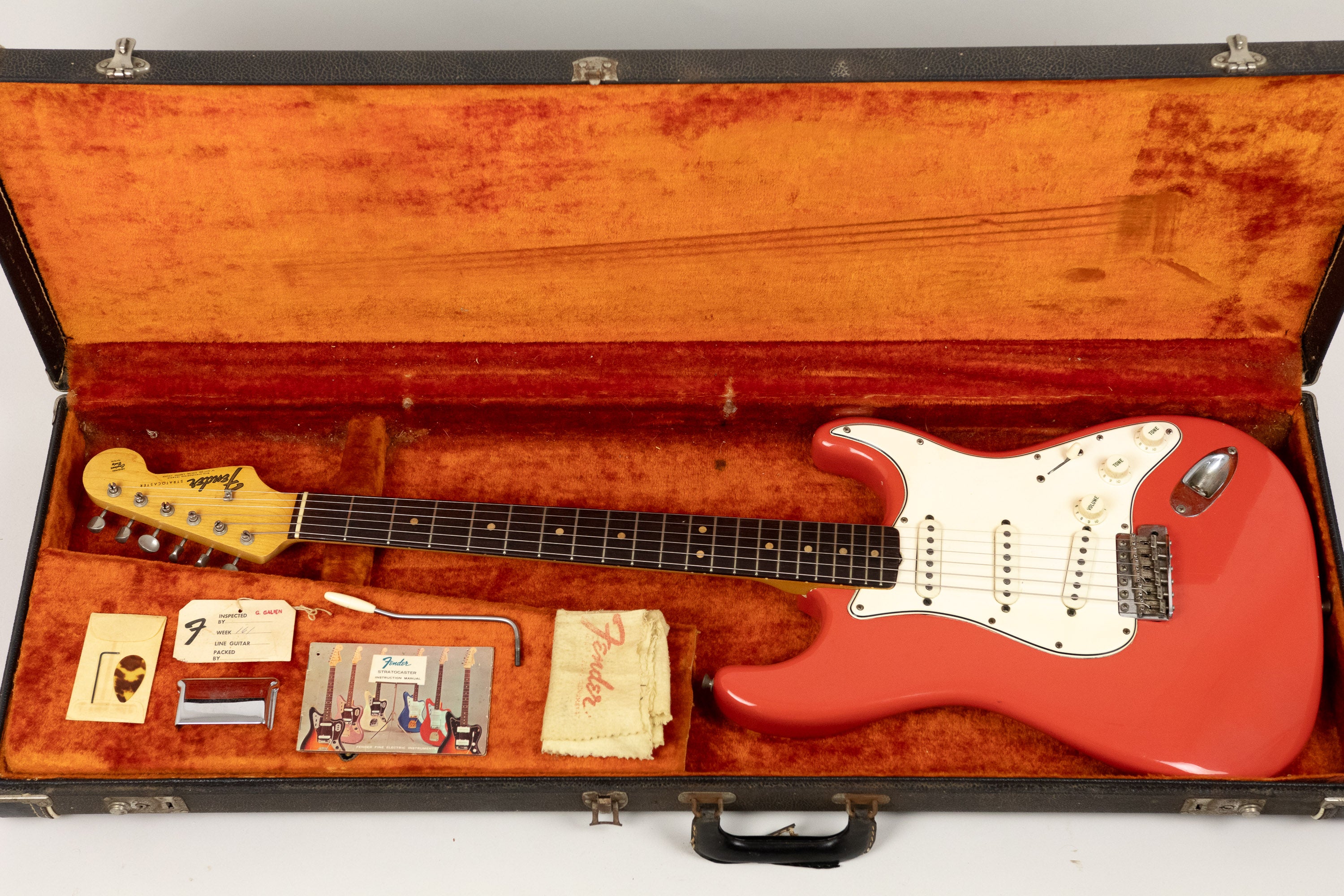 Overall, this is a superbly preserved and highly desirable Fiesta Red Stratocaster from one of the most collectable periods in Fender history. A serious collector-grade custom colour example complete with original case, hang tags (showing matching serial number), polish cloth and allen key. Stunning!