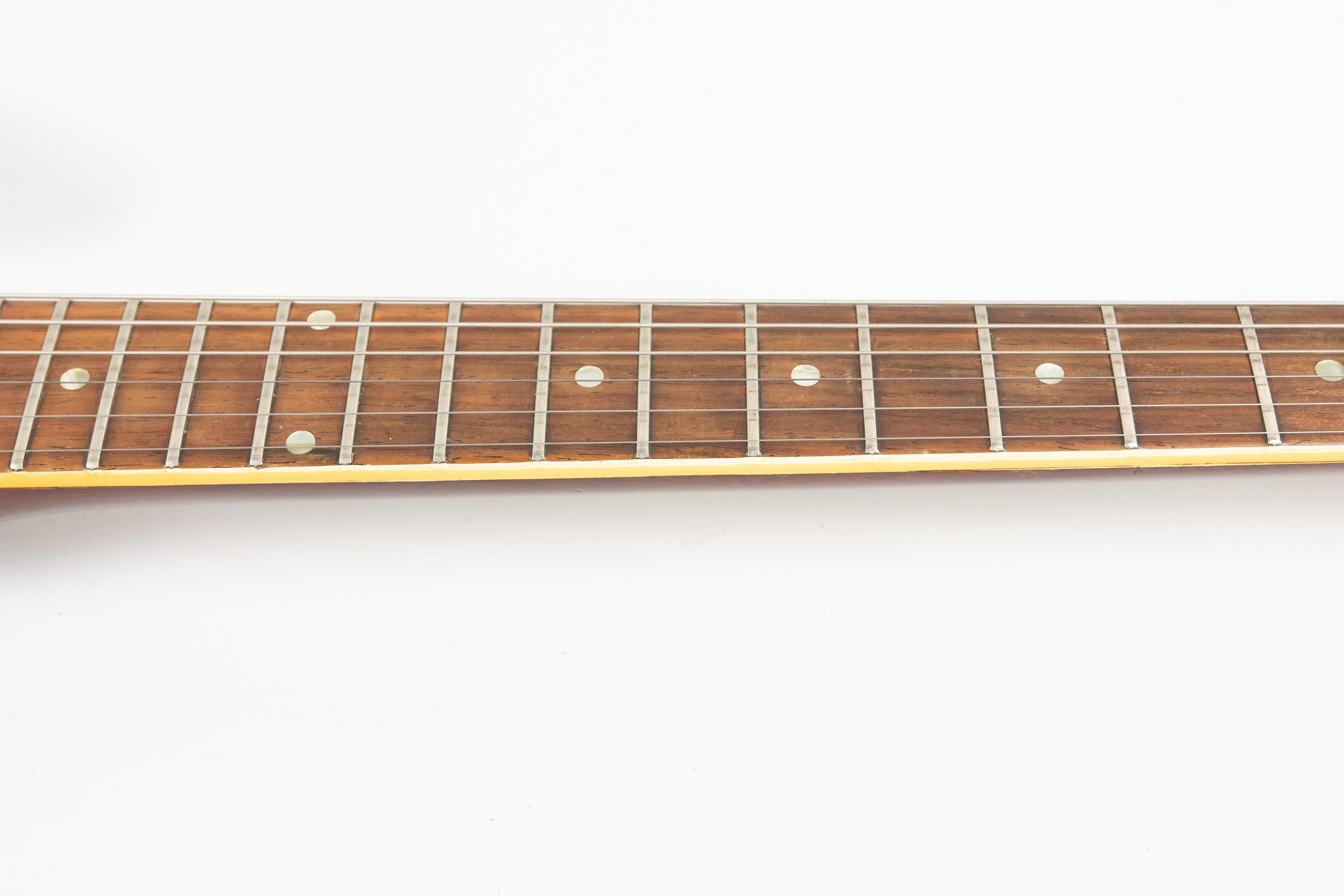 It retains a pair of original P-90s measuring a healthy 8.40k at the bridge and 8.93k at the neck. Plugged in, this guitar is everything a late-’60s SG Special should be: aggressive and articulate on the bridge, thick and vocal on the neck, with excellent touch sensitivity and that unmistakable midrange grind/snarl when pushed.