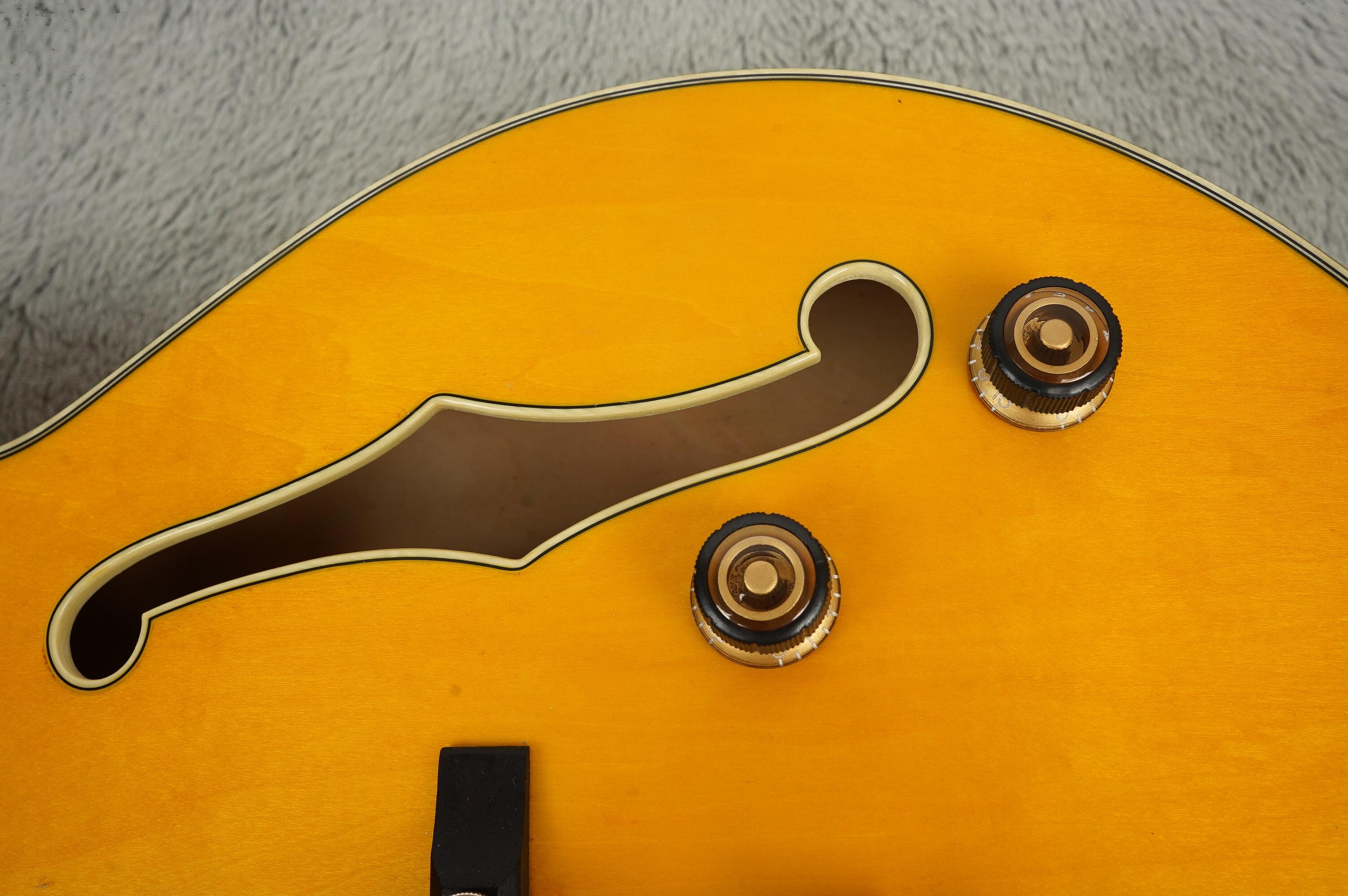 Built with a fully hollow Maple body, this guitar delivers rich, resonant tones with plenty of sustain and clarity—perfect for jazz, fusion, and expressive melodic phrasing. Finished in Antique Amber gloss that complements its vintage vibe.