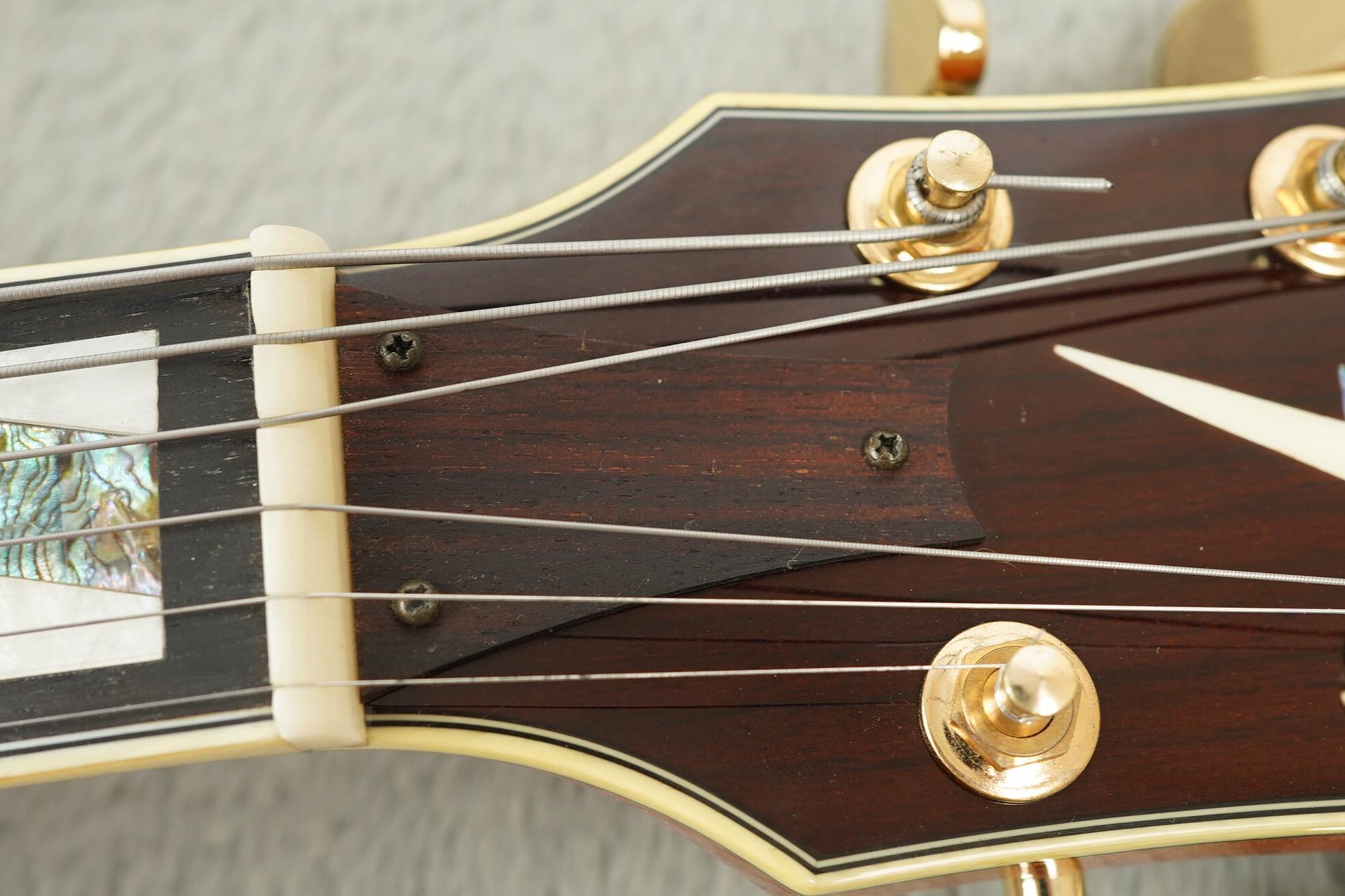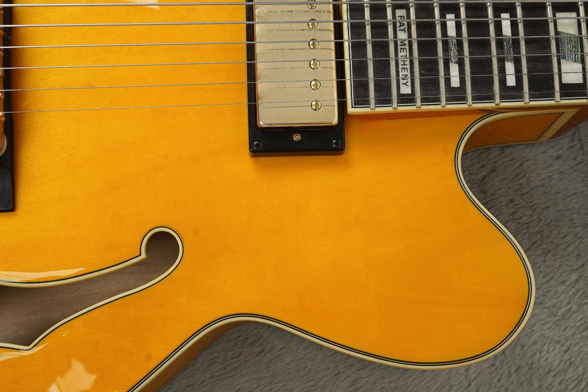 The 3-piece Mahogany/Maple neck with bound Ebony fingerboard feels great in the hand. The medium C neck profile feels familiar and plays really well with the current action. Other high-end appointments include: Artstar fret edge treatment for ultra-smooth playability, gold plated floating bridge and tailpiece and multi-ply binding. An excellent quality instrument that lives up to Pat Metheny’s legacy.