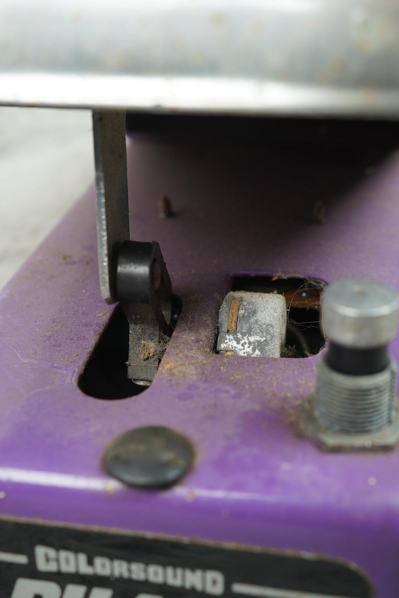 This pedal has seen a bit of life but seems to have survived quite well. The case has some scratches and bumps but nothing too substantial. The original base plate is missing but we do have a modern one that can be fitted.