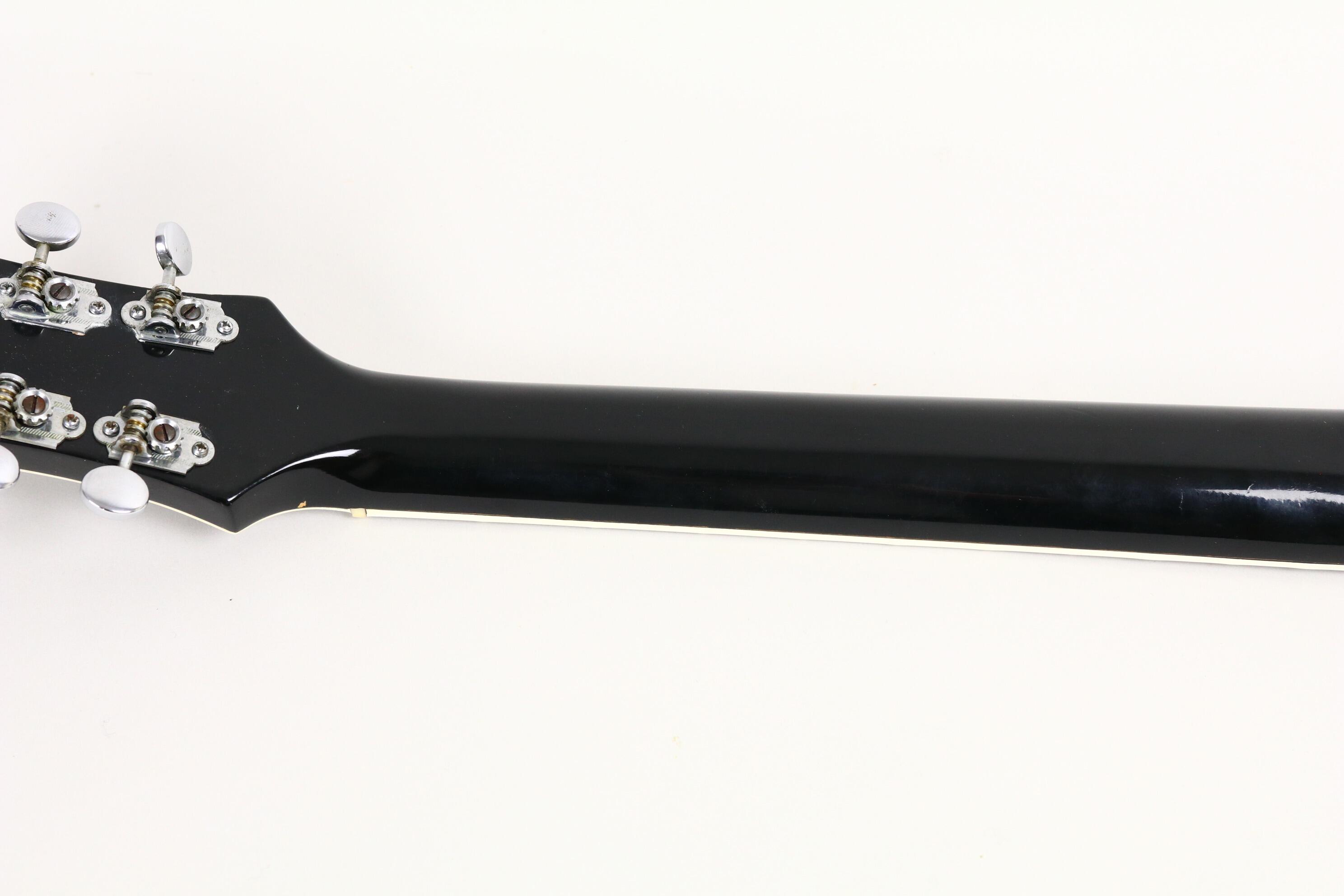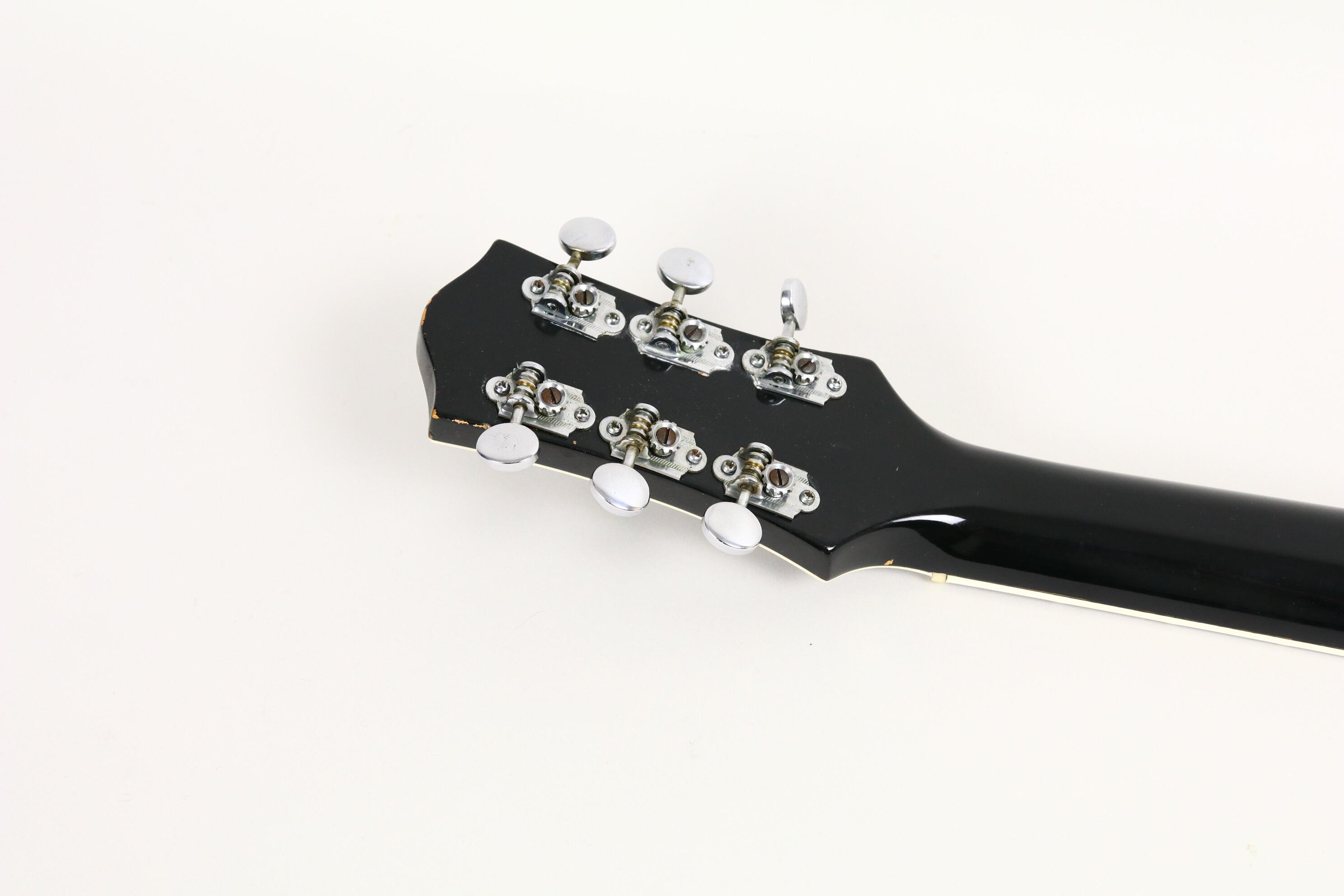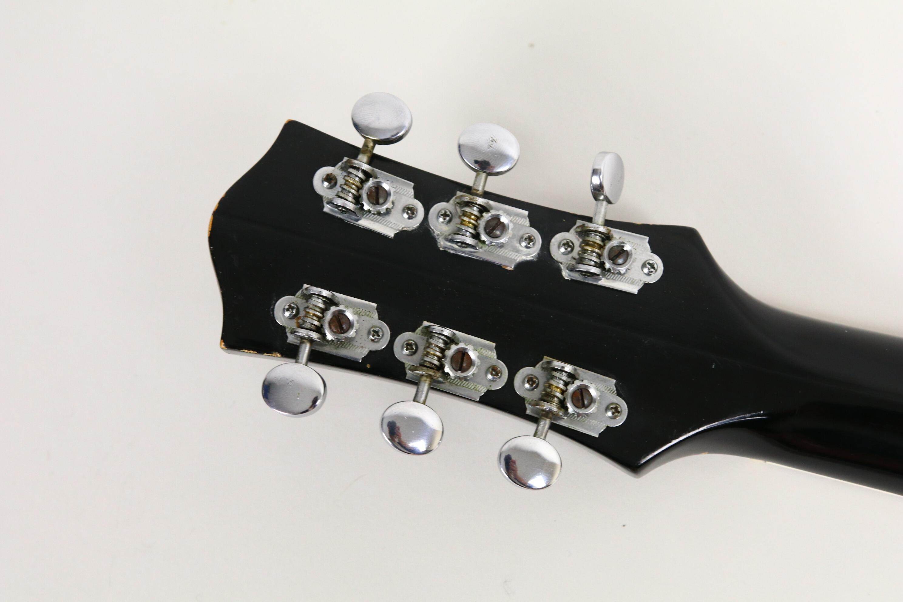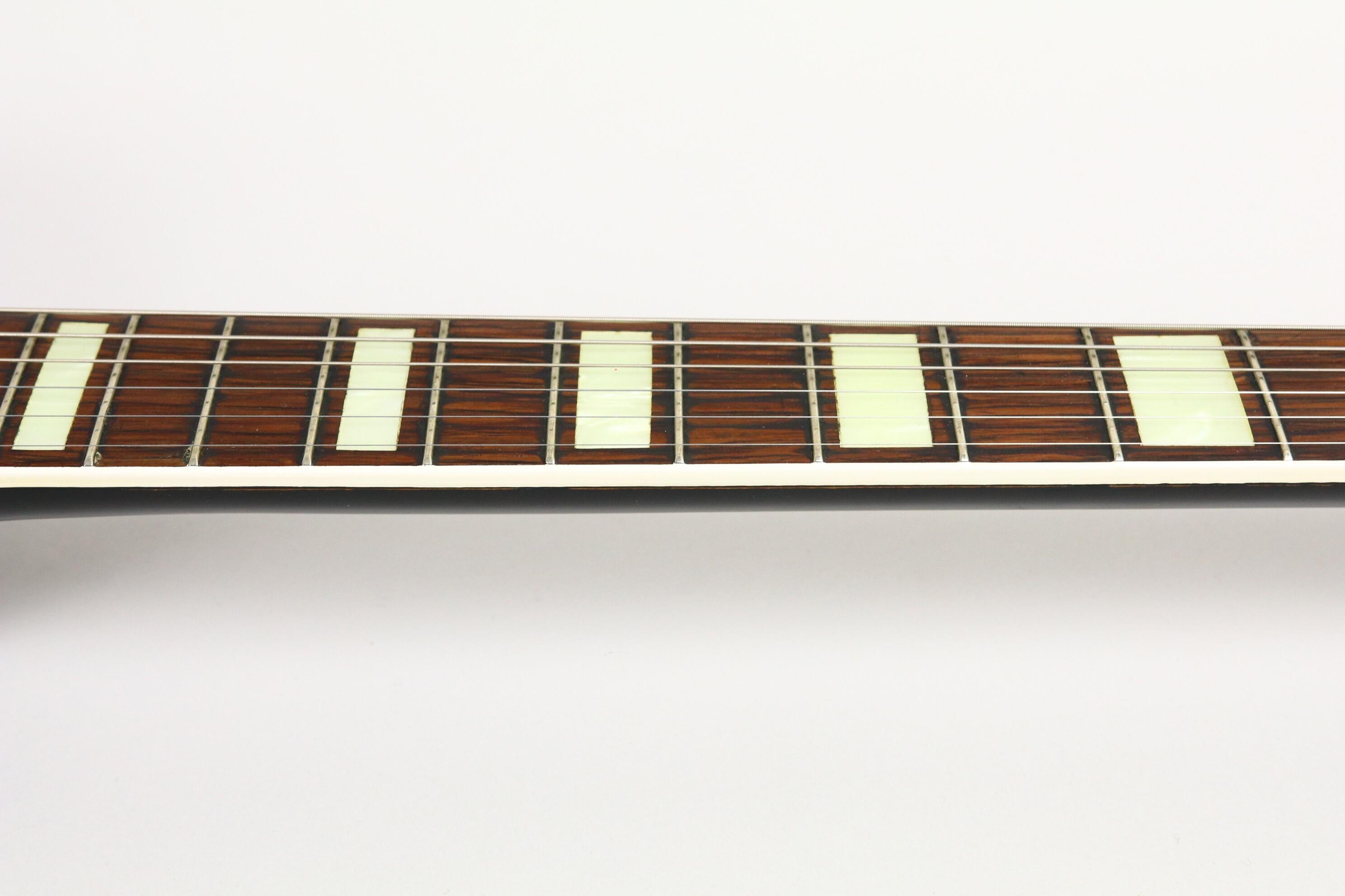The neck has the comfortable mid-’50s “C” profile with a rosewood fingerboard and block inlays, offering superb playability. Original hardware includes the G-cutout tailpiece, arrow knobs, Melita bridge, and Waverly tuners — all beautifully aged and functional. The binding and finish show a lovely natural patina, consistent with careful use and decades of preservation with no rot at all.