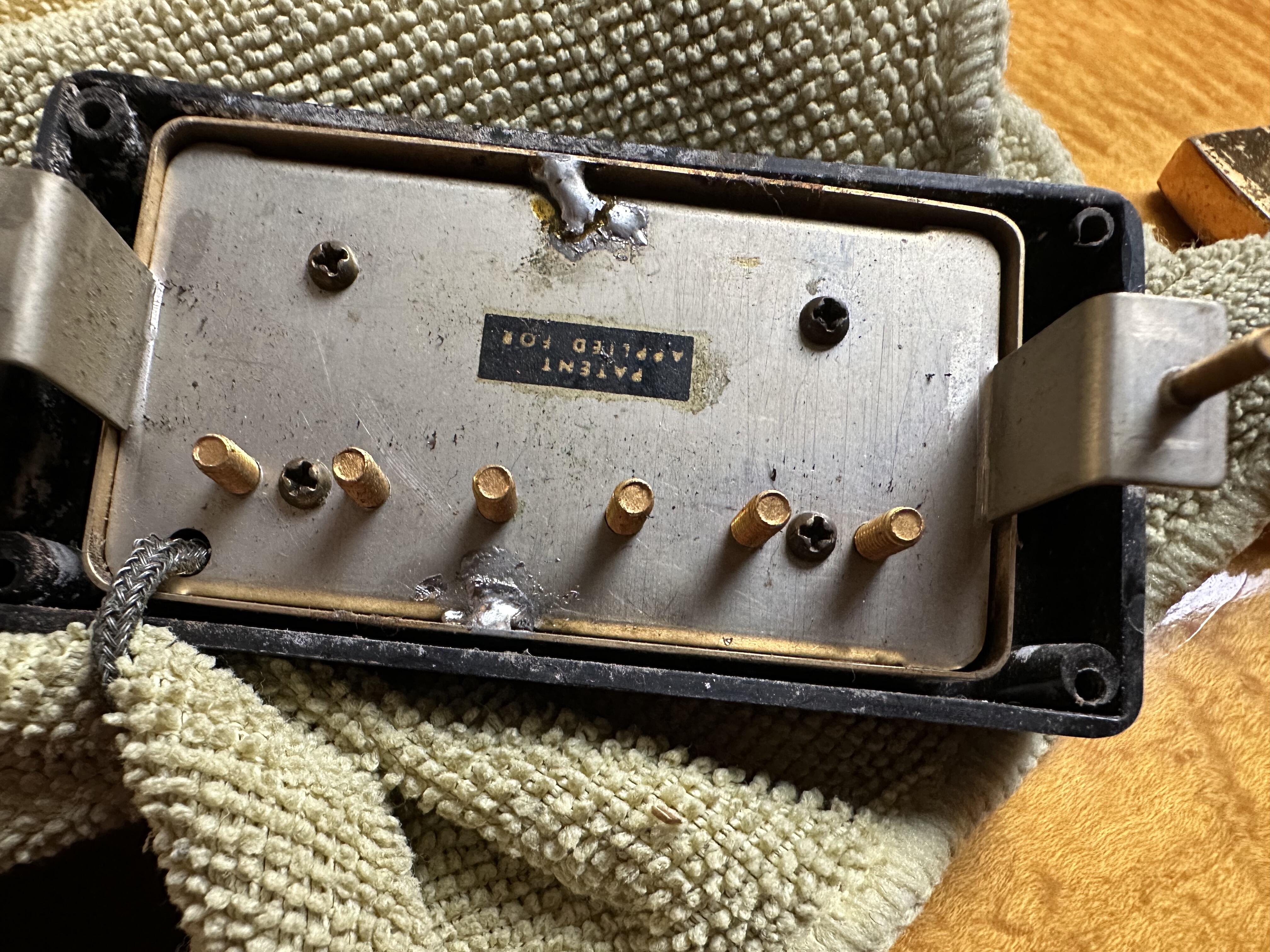 This example is clean and original having been well looked after throughout it's life. Besides two small extra holes under the tailpiece bracket and some extra holes for a different truss rod cover (custom engraved covers were fairly popular back then) the guitar is all original with the all important PAF pickups remaining.