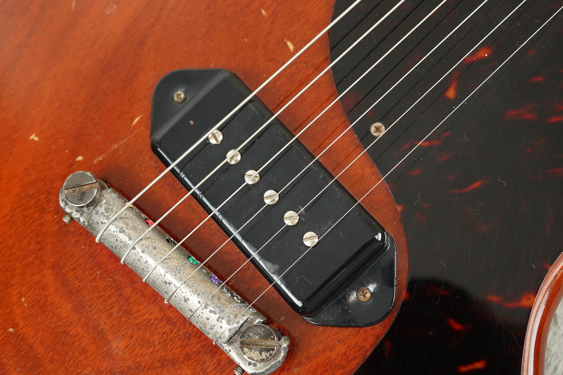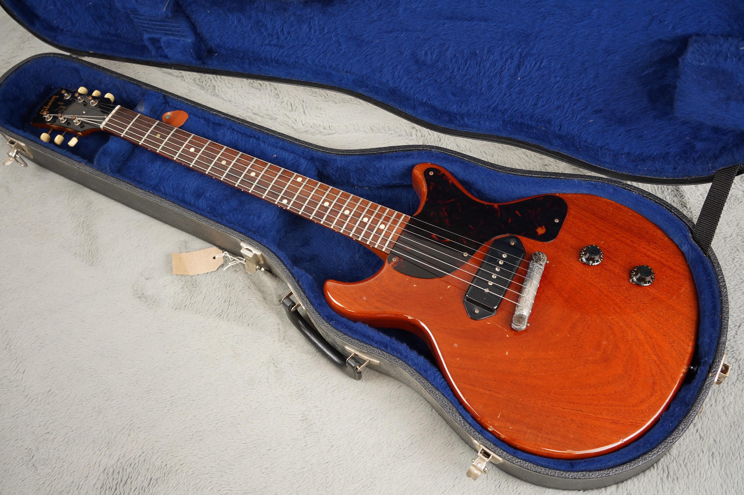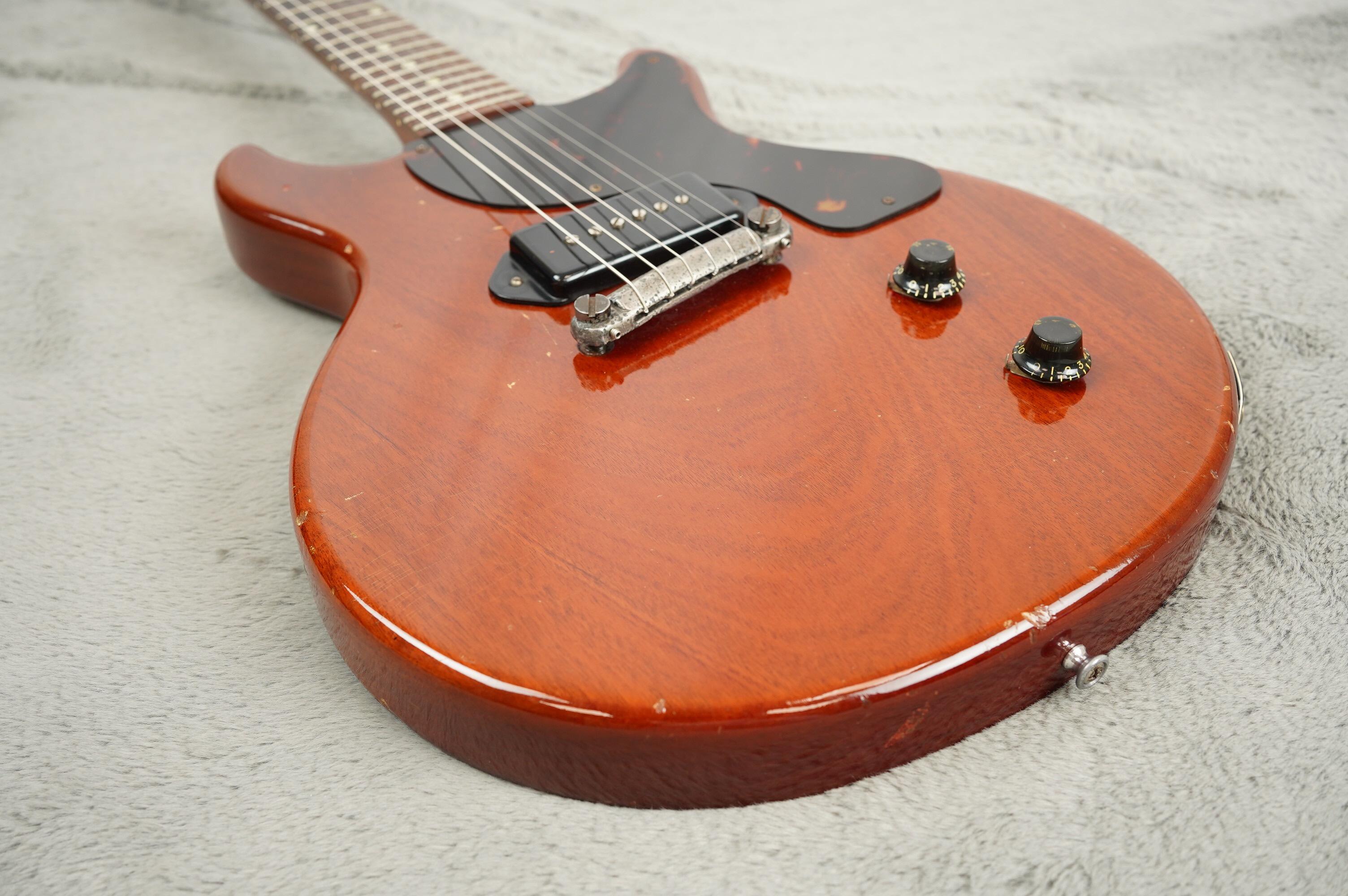 A nice example of a golden-era double-cut Junior. The single piece Honduran mahogany body shows a really attractive grain pattern beneath its faded Cherry finish, with wear that gives the guitar an attractive patina and a nice overall feel. Lightweight and resonant it's everything you'd want from this model.