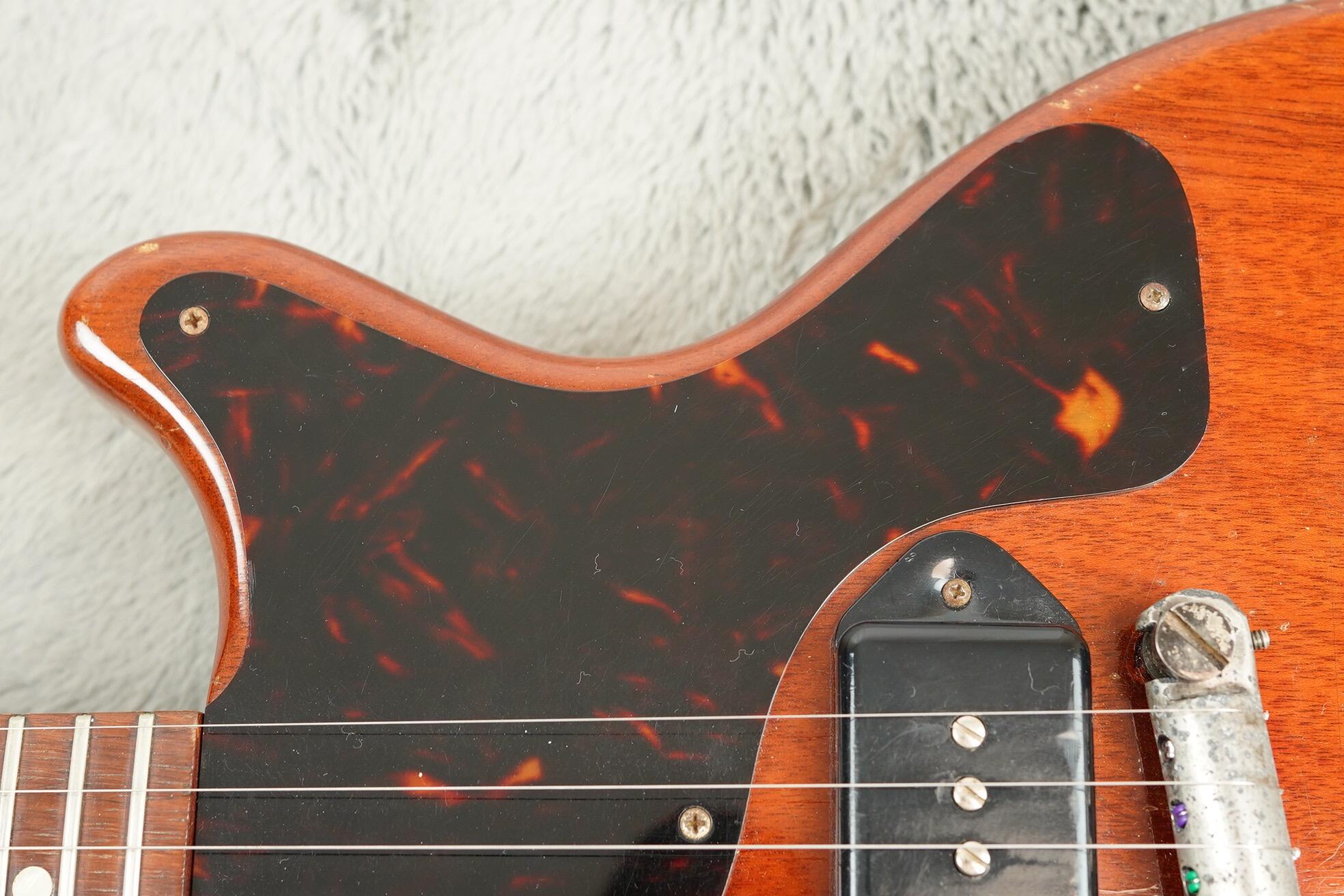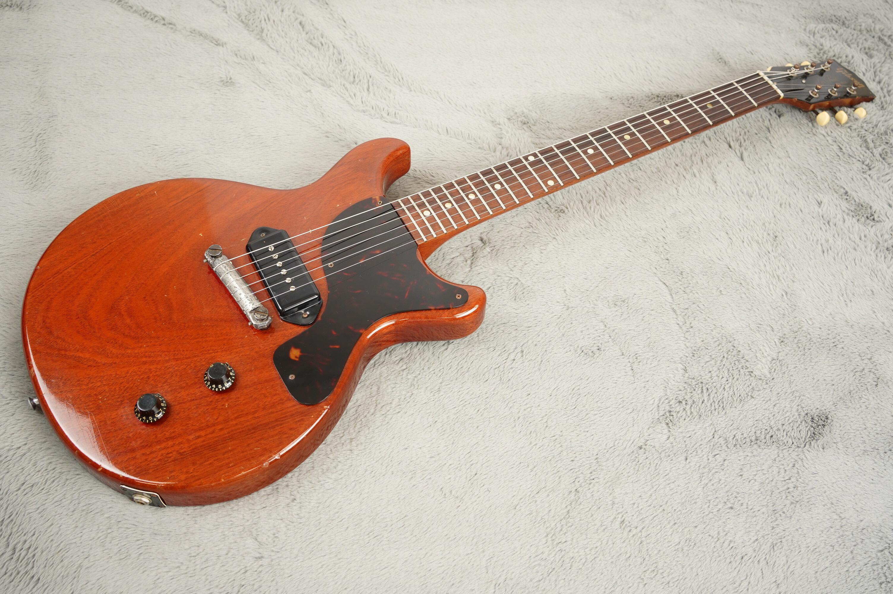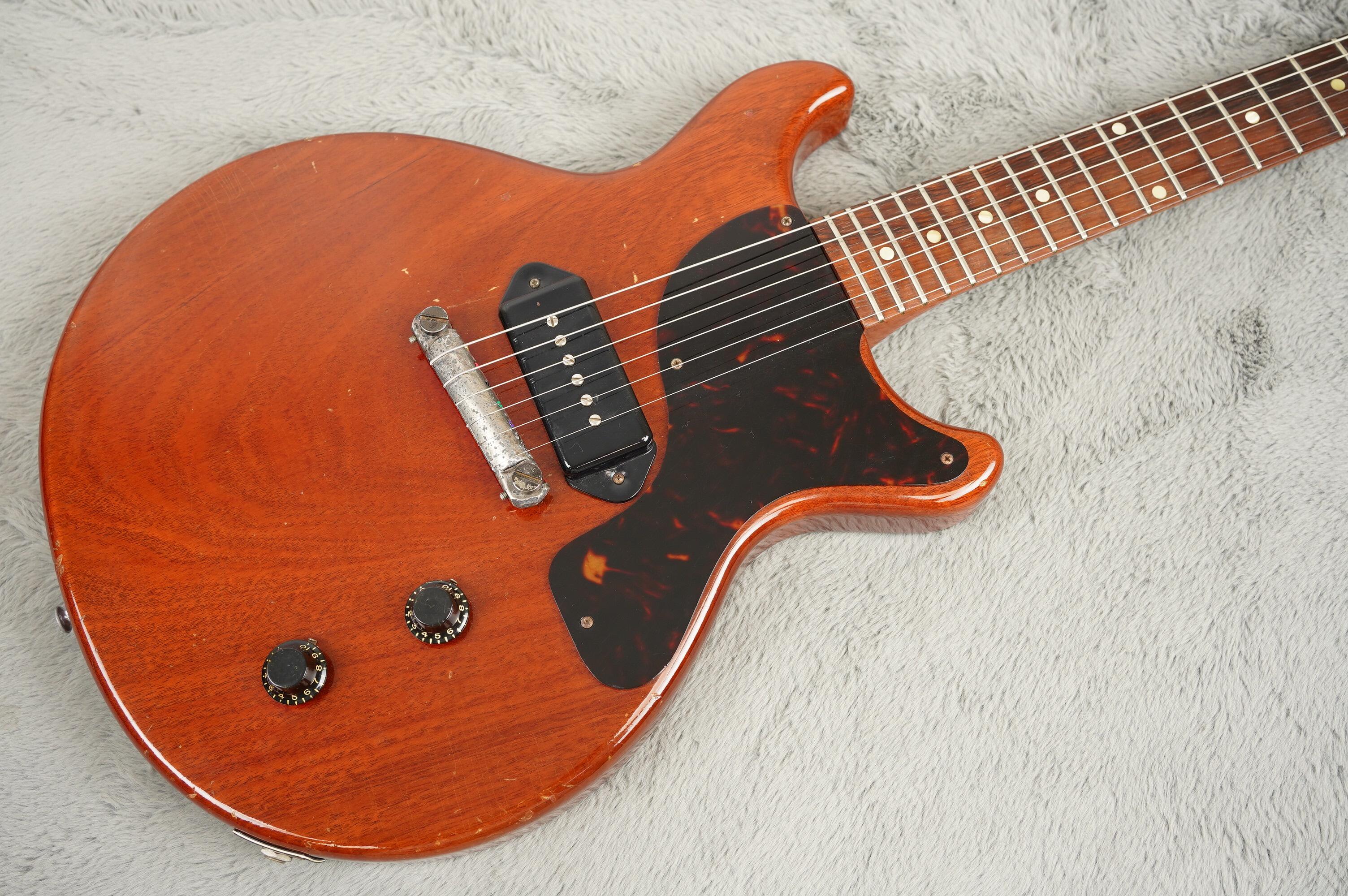A nice example of a golden-era double-cut Junior. The single piece Honduran mahogany body shows a really attractive grain pattern beneath its faded Cherry finish, with wear that gives the guitar an attractive patina and a nice overall feel. Lightweight and resonant it's everything you'd want from this model.