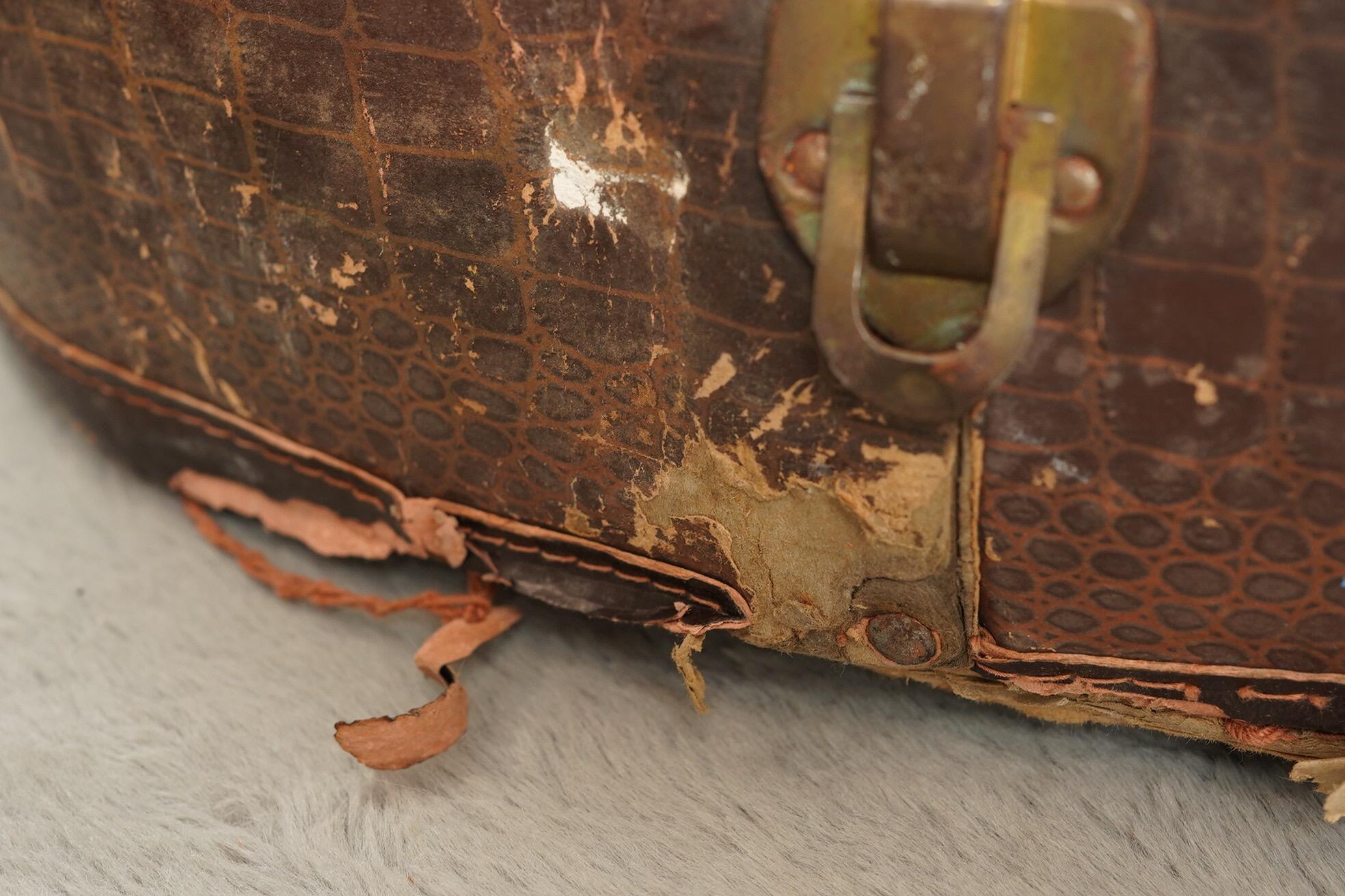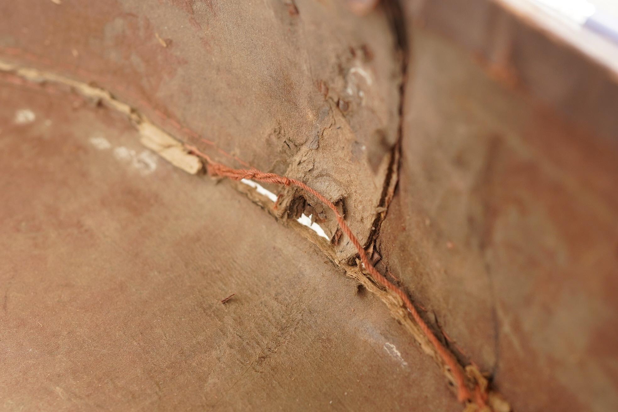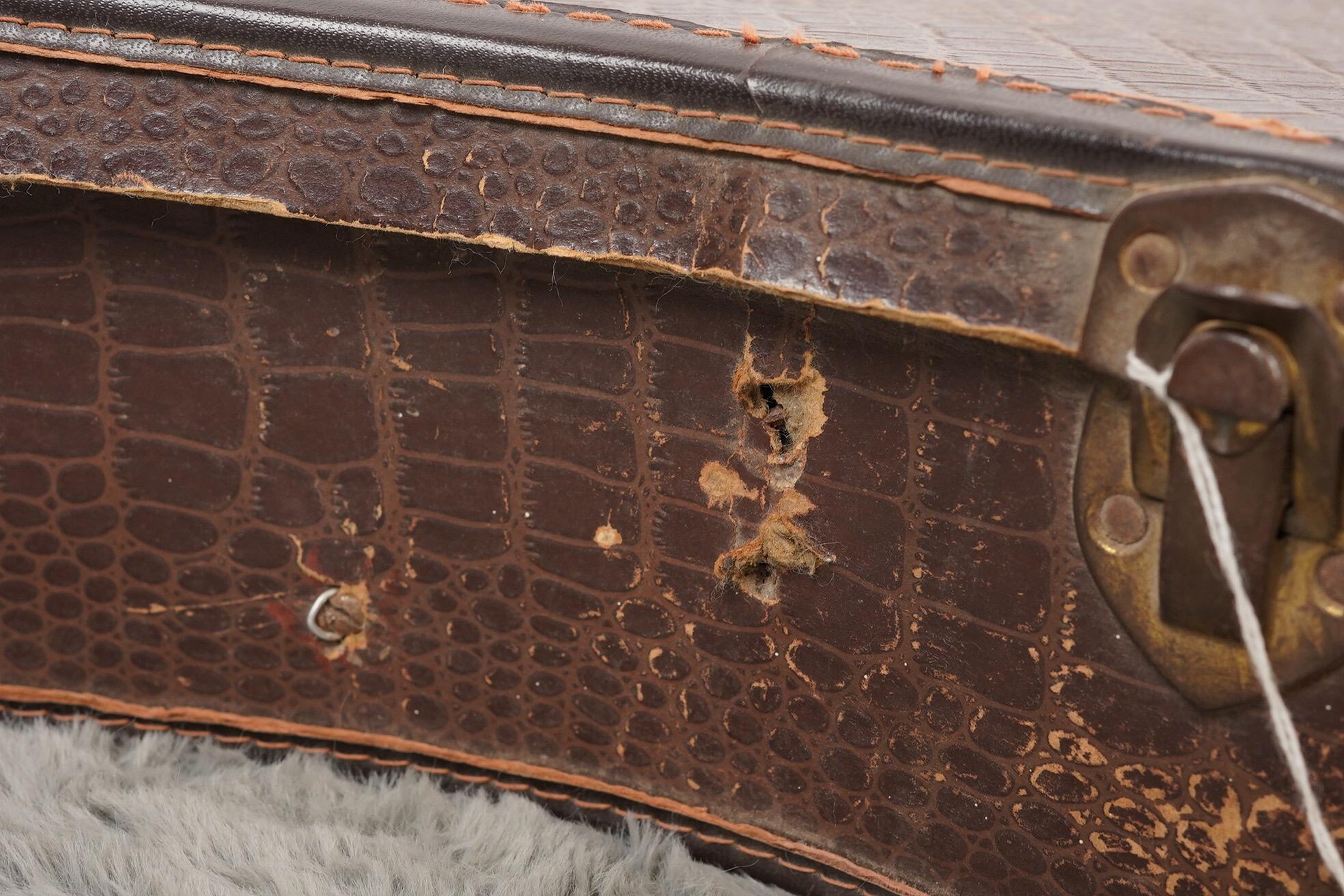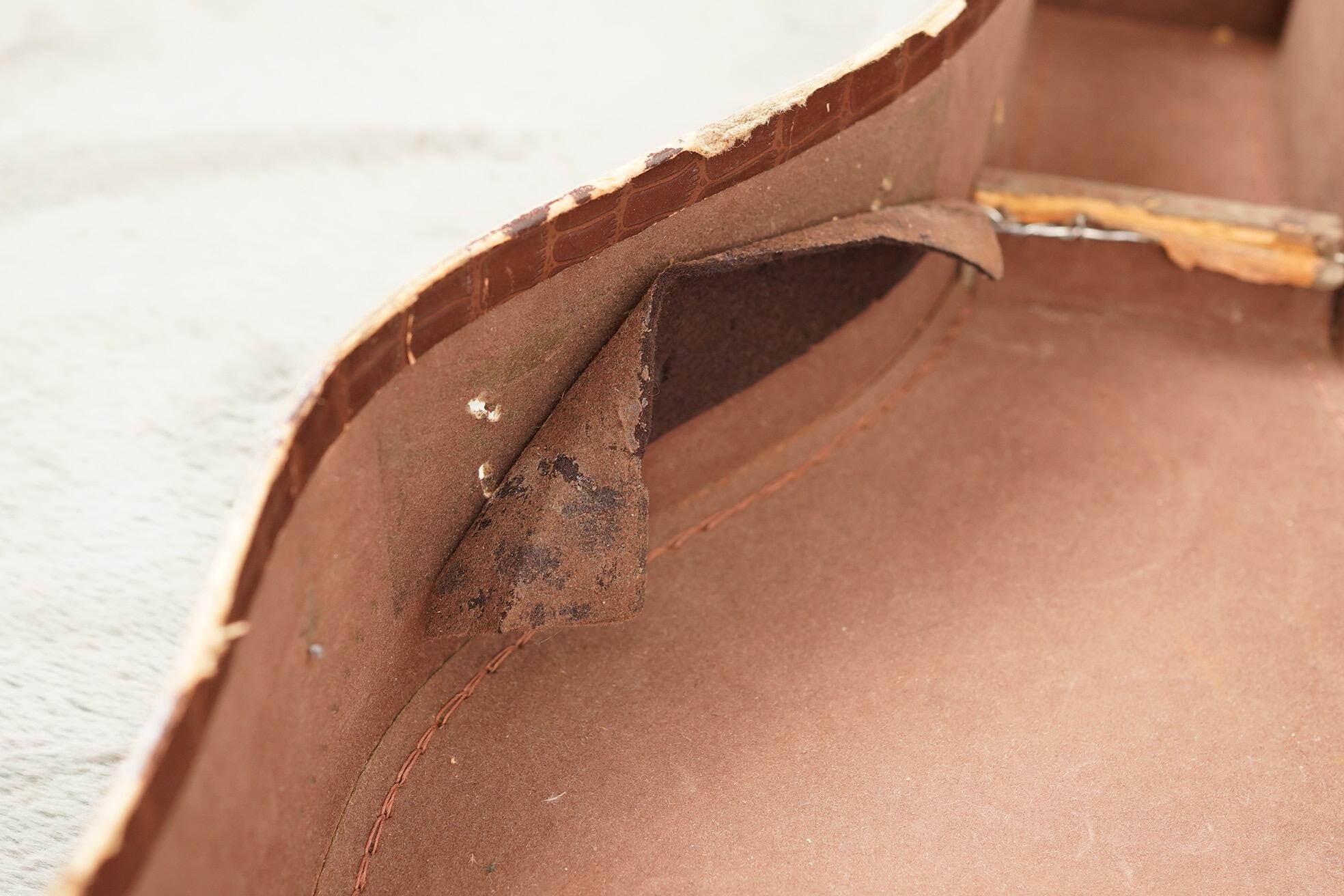 The nickel-plated wraparound bridge shows tarnishing and wear as do the posts, the tortoiseshell guard remains original and intact and there are two small filled holes on the top of the body. Otherwise there are no breaks or repairs.