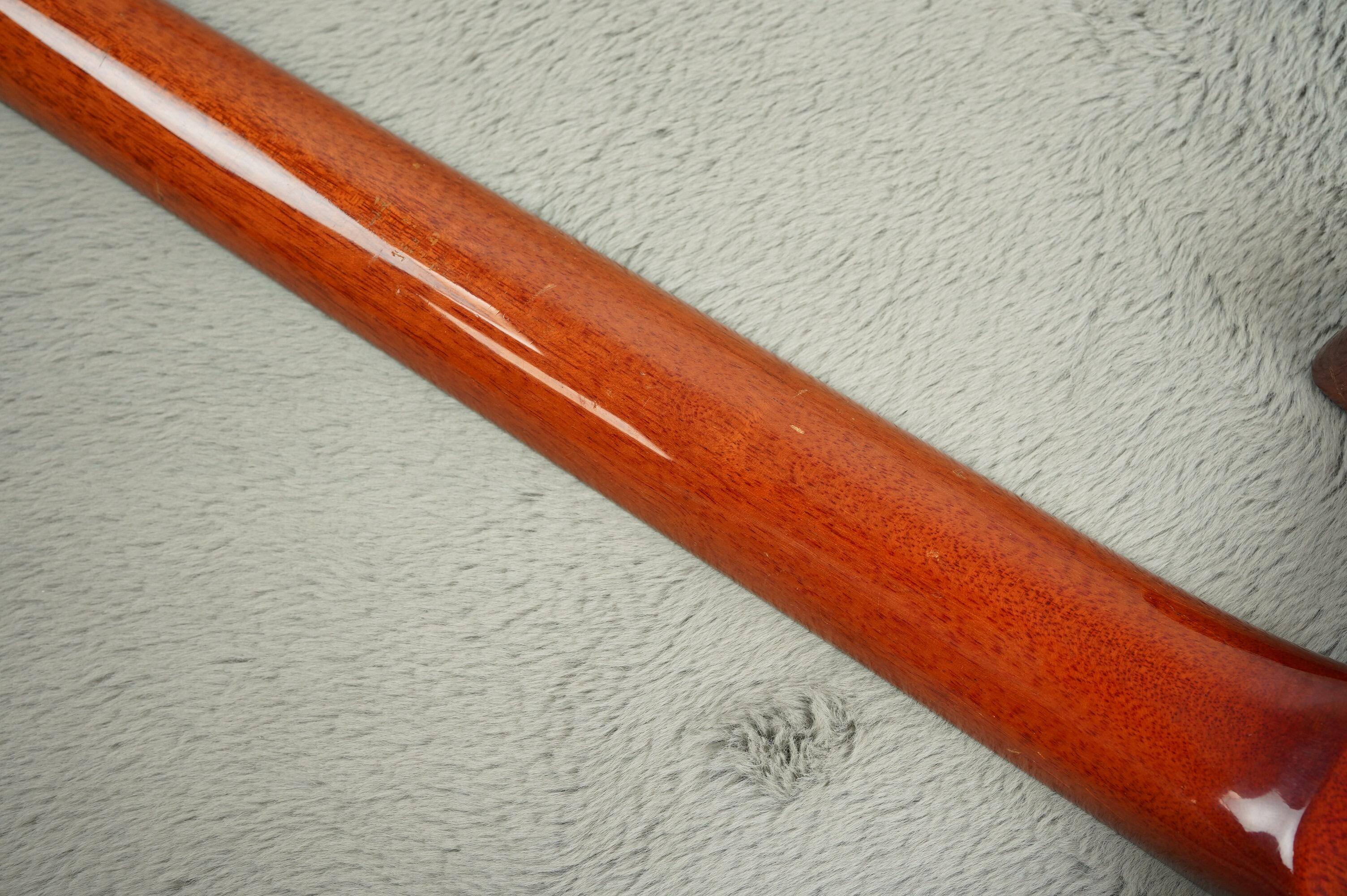 Electronics and hardware remain original and appear untampered. The single dog-ear P-90 in its original black cover delivers the raw, open voice that defines this model, with volume and tone controls offering a surprising level of versatility for such a simple setup. A roll off of volume cleans up a driven amp nicely with the tone control offering everything from full-on dark woolliness to a slight taming of the top end.
