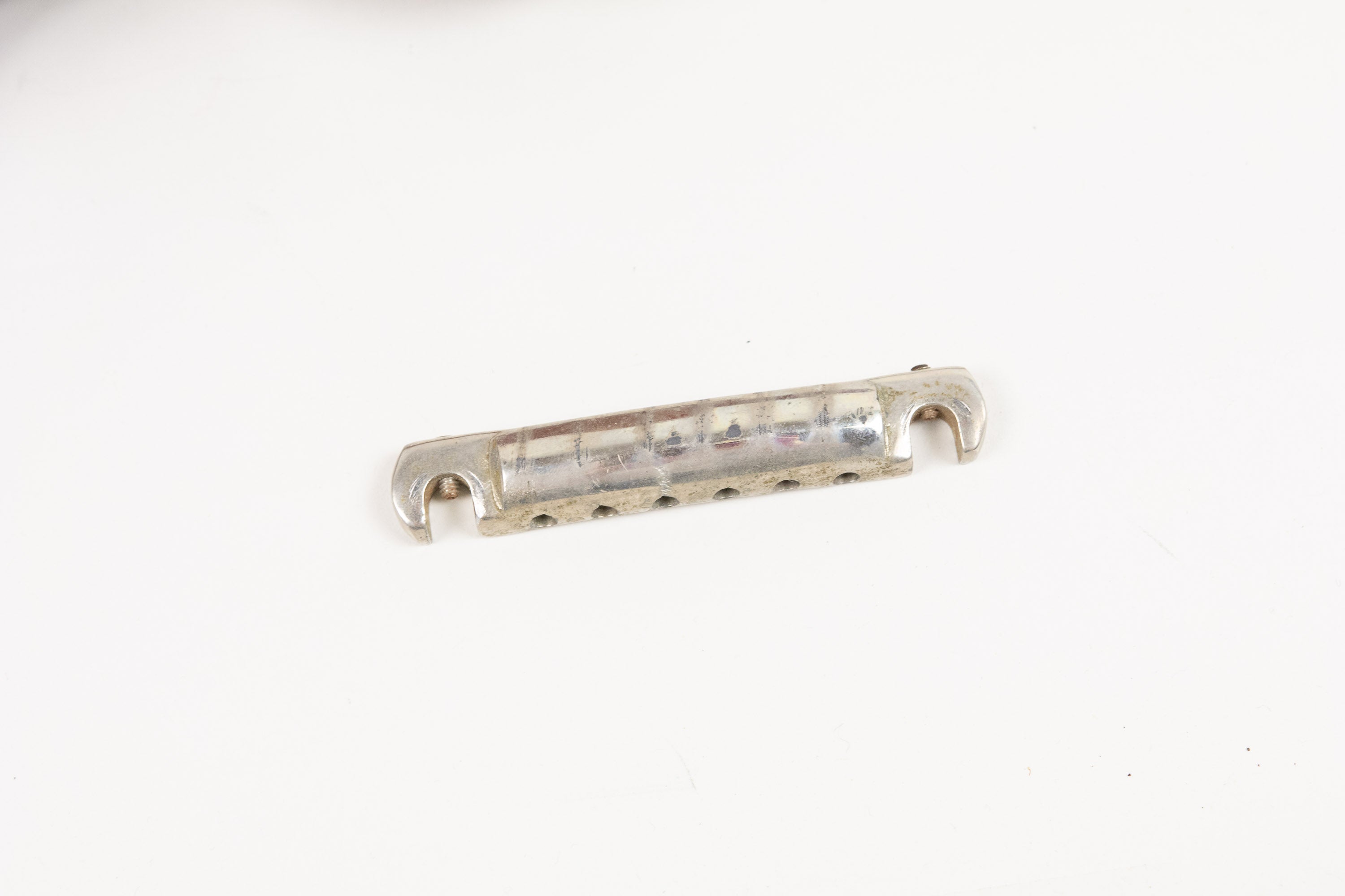 A MojoAxe compensating bridge is currently fitted, improving intonation while preserving the feel and look of the original setup, and the original bridge is included in the case.