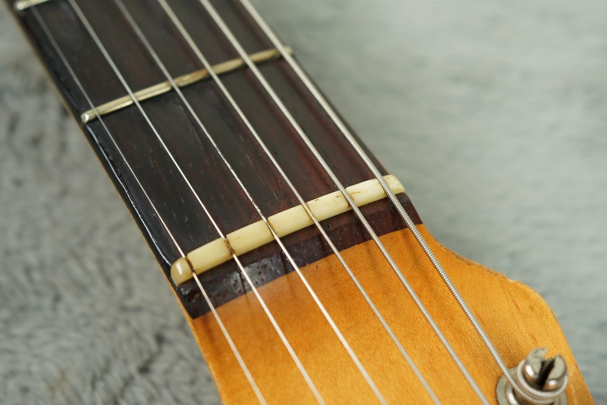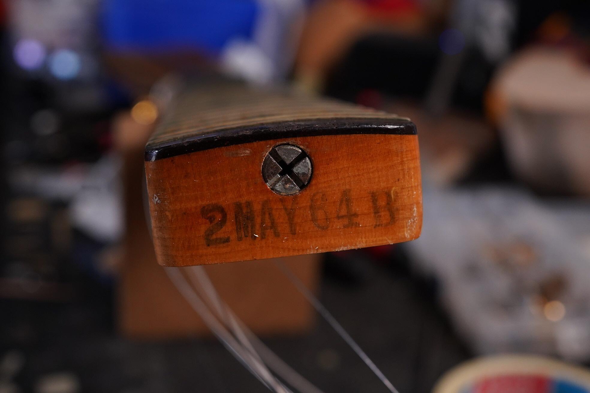 The neck, dated May 1964, is great too. There is some wear to the fretboard which you can see in the pictures. The back of the neck has worn comfortably and the original frets have some life left in them.