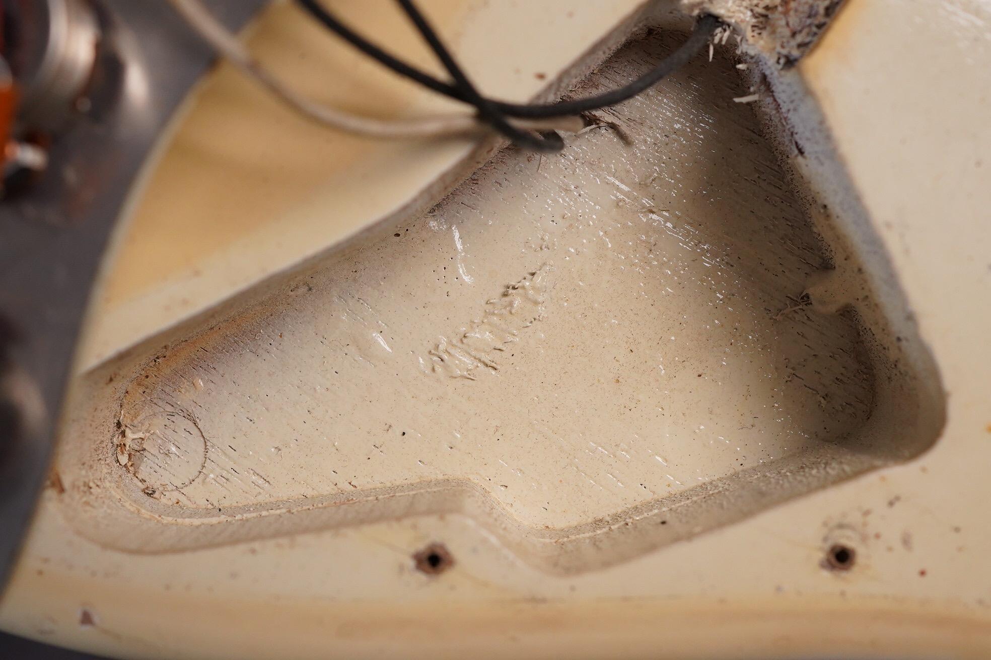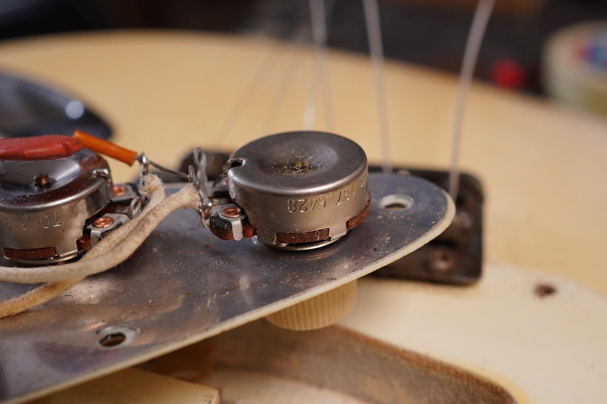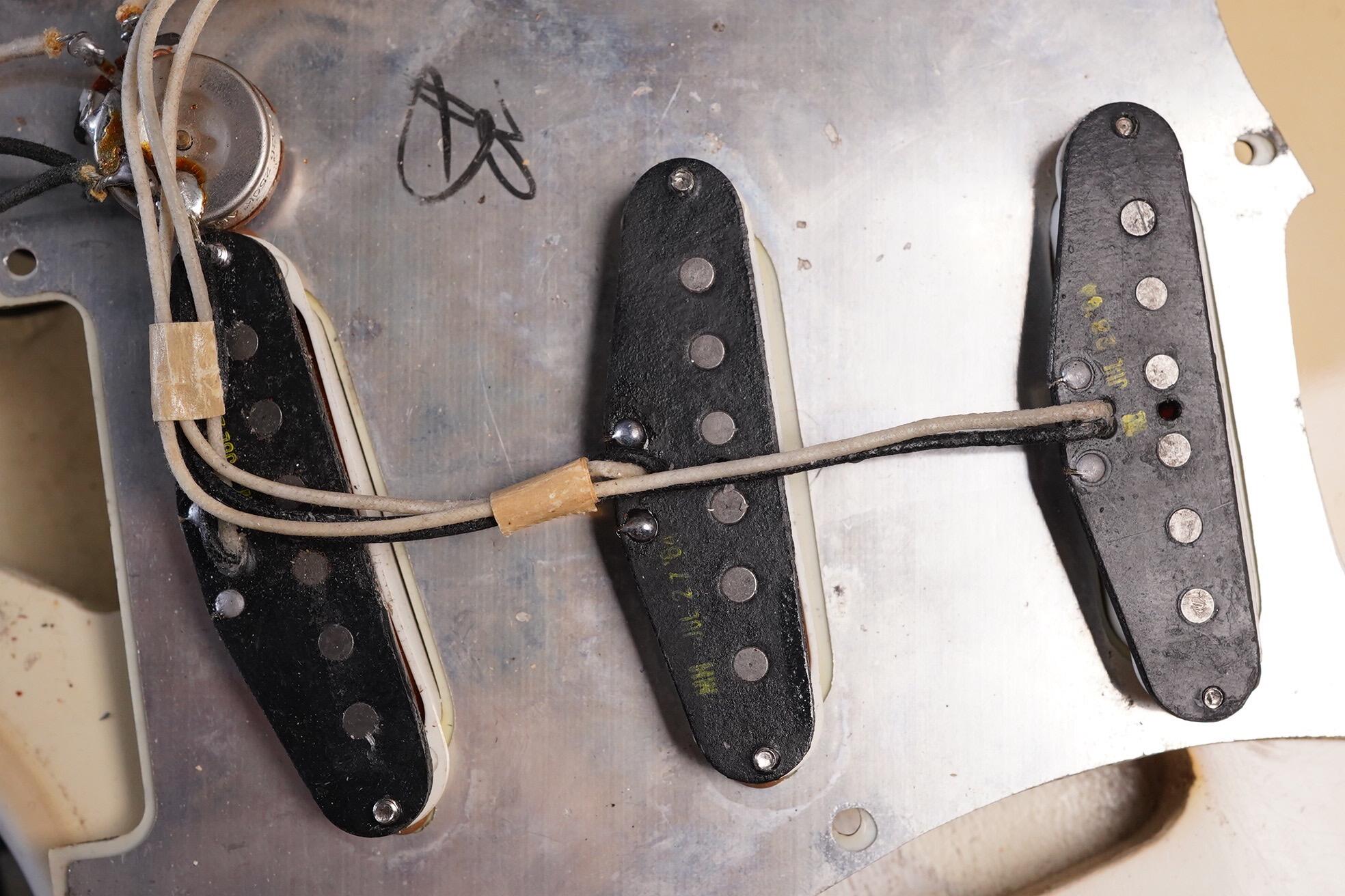 Electrically all is as you’d expect and most solder joints are undisturbed. The middle pickup has been repaired by Monty’s as it arrived to use with a fault. The other pickups are untouched.