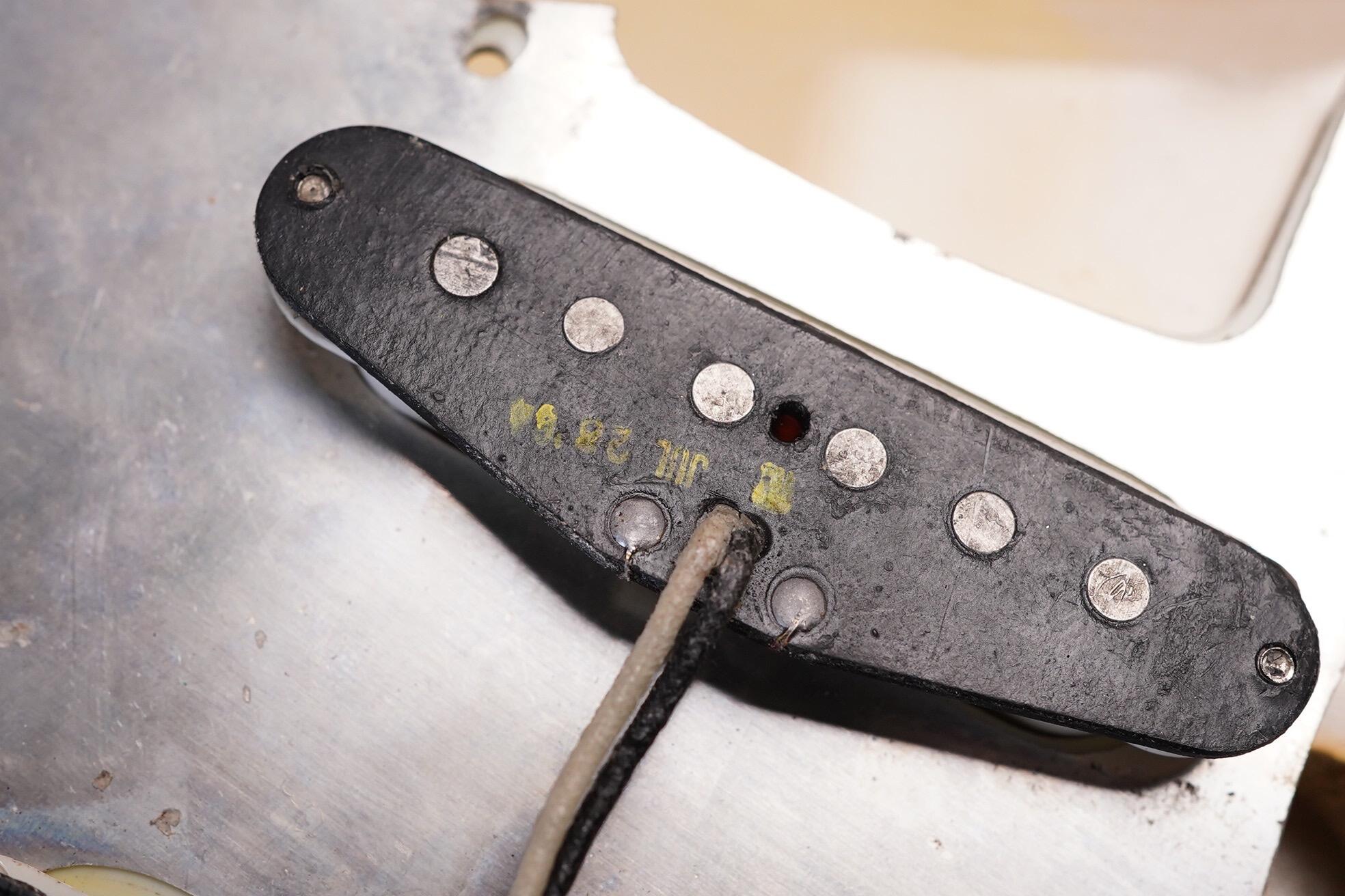 One owner, 1964 Fender Stratocaster in Olympic White with a secret under the paint…