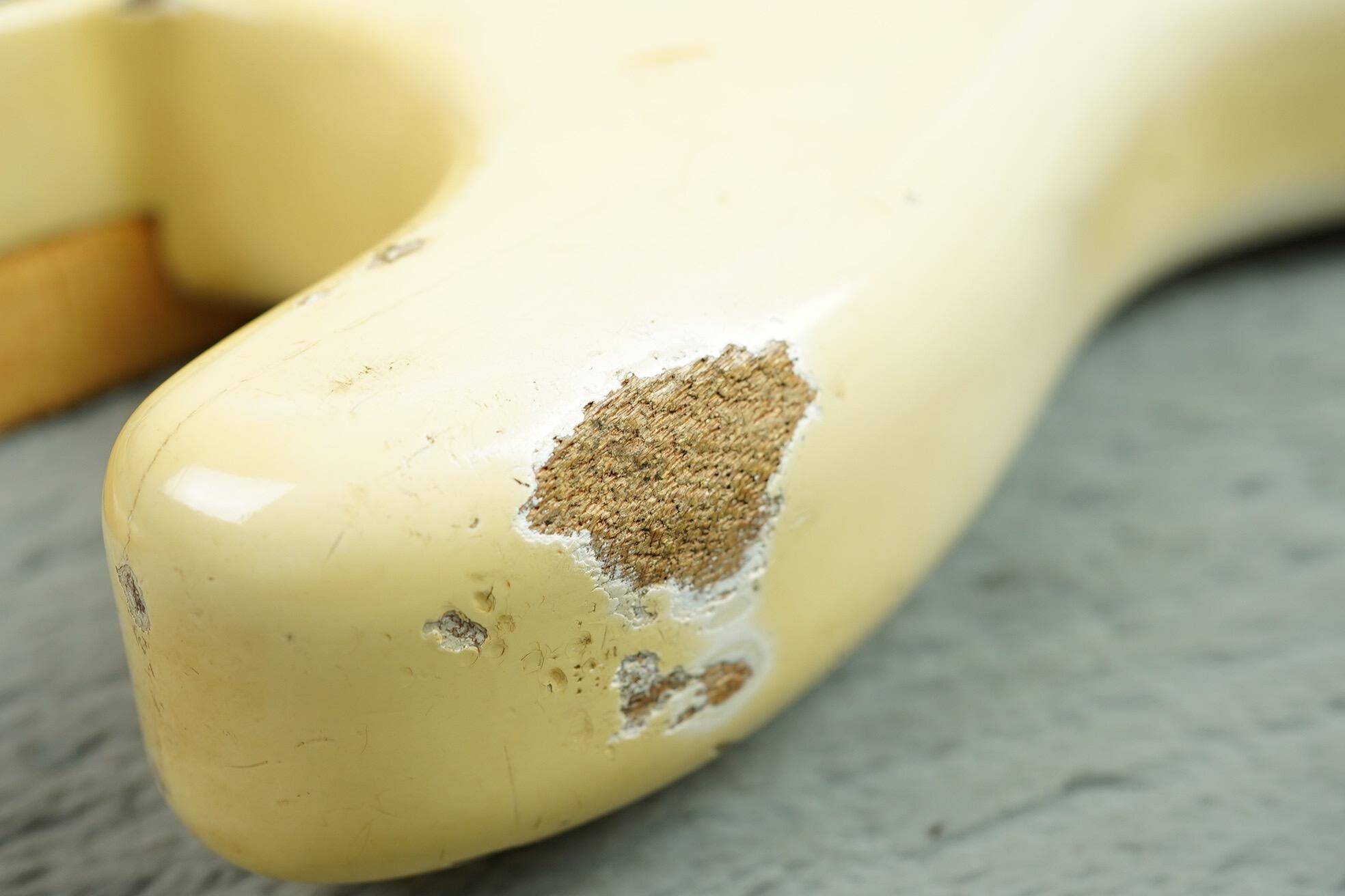 It's a fine example. The original and only owner of this amazing guitar bought it from C. Bothners & Sons Ltd, in Johannesburg SA, in 1964. He said it was not especially ordered, it was just hanging in the store and he had no idea it was one of the rare Korina examples and neither did the shop. The finish has faded and worn in places but is in otherwise great condition. You can see the grain of the korina body through where the finish has chipped and in the neck pocket.