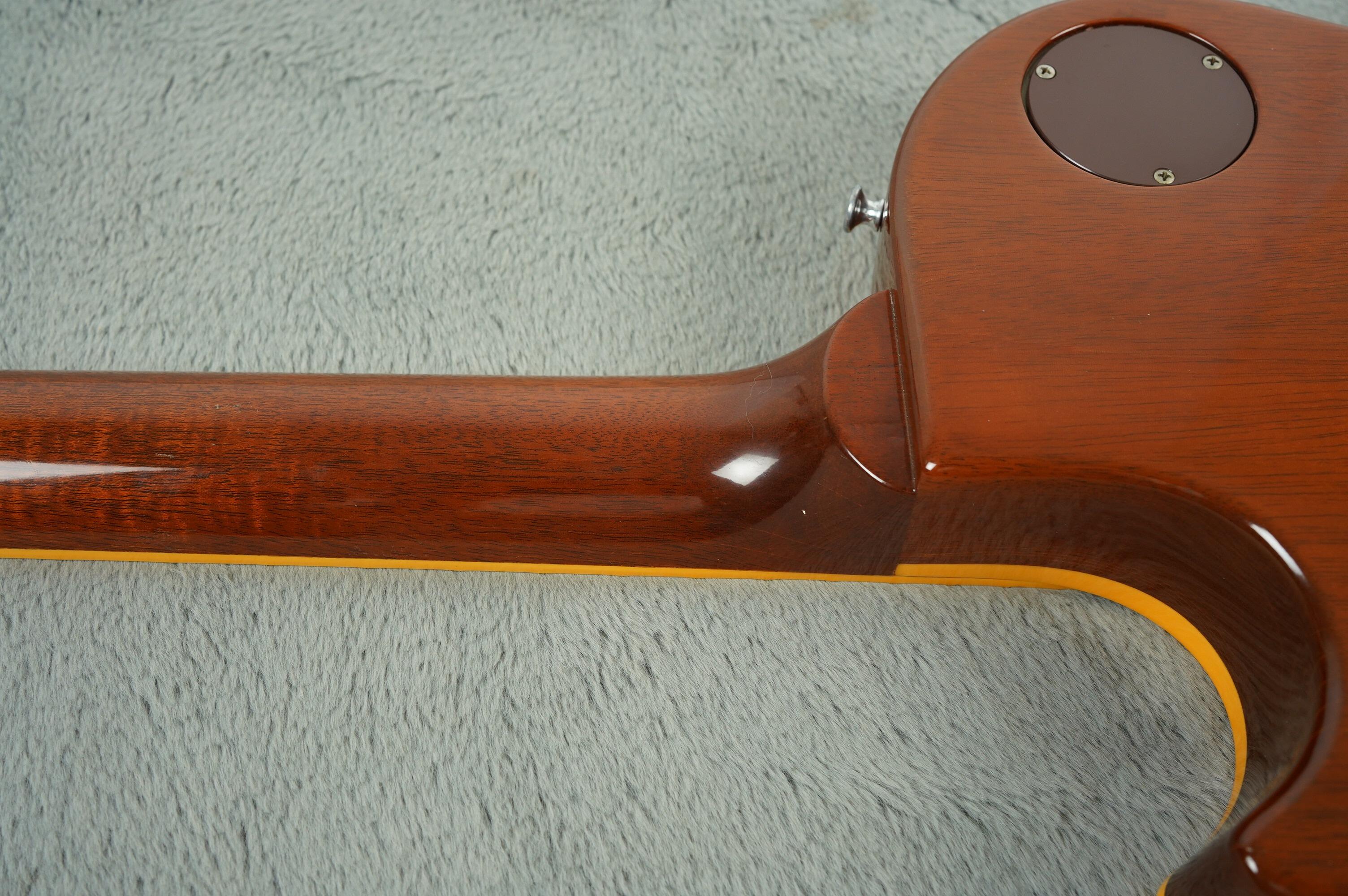 The quality of woods is apparent and testament to the high standards demanded by Japanese market. It has classic '54 specs including a single piece Mahogany neck (with a lovely figuring to it!), medium/chunky C neck profile, single piece Mahogany body with a bound Maple top, wraparound Nickel bridge, speed knobs, and the more modern and excellent sounding P-100 pickups. Compared to the single coil P-90, P-100's are stacked humbuckers that are wired in parallel, designed to reduce hum and retain the look and character of a P-90.