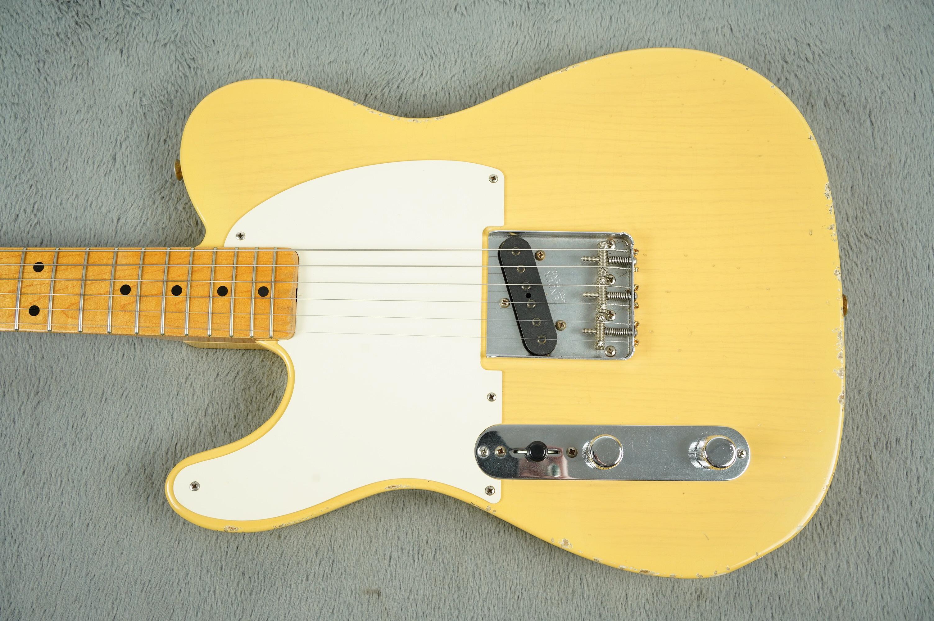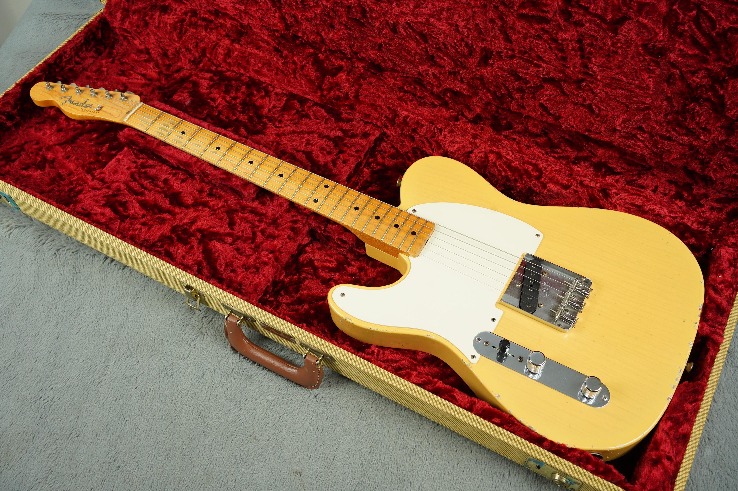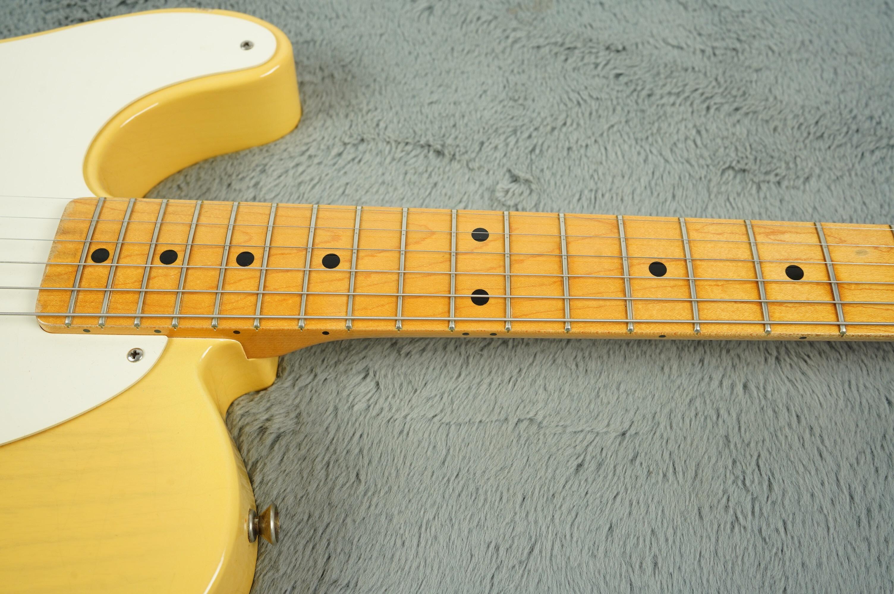 A very cool, rare, left-handed Custom Shop Relic '59 Esquire with just the right amount of ageing giving that desirable vintage look and feel without being over the top. This is a great looking guitar. The ageing to the butterscotch blonde finish is tastefully done, the neck has a nice worn-in feel without being overly stripped of it's lacquer, and the fingerboard wear is more subtle and tasteful than on some other.