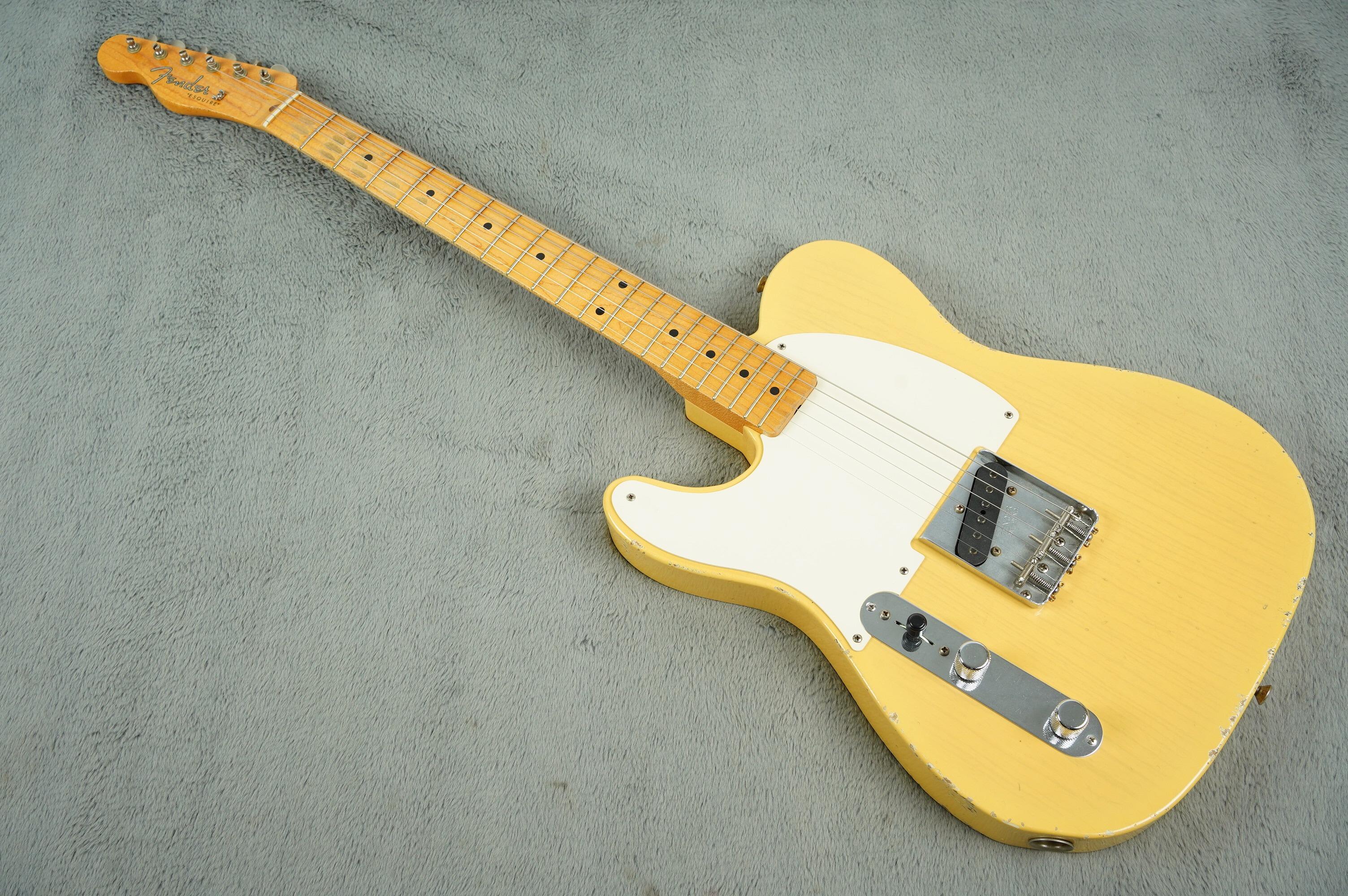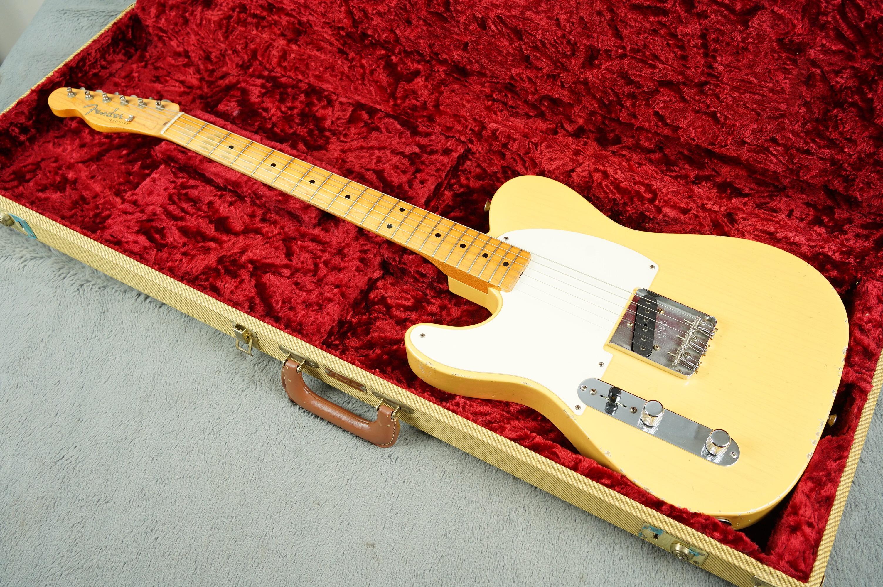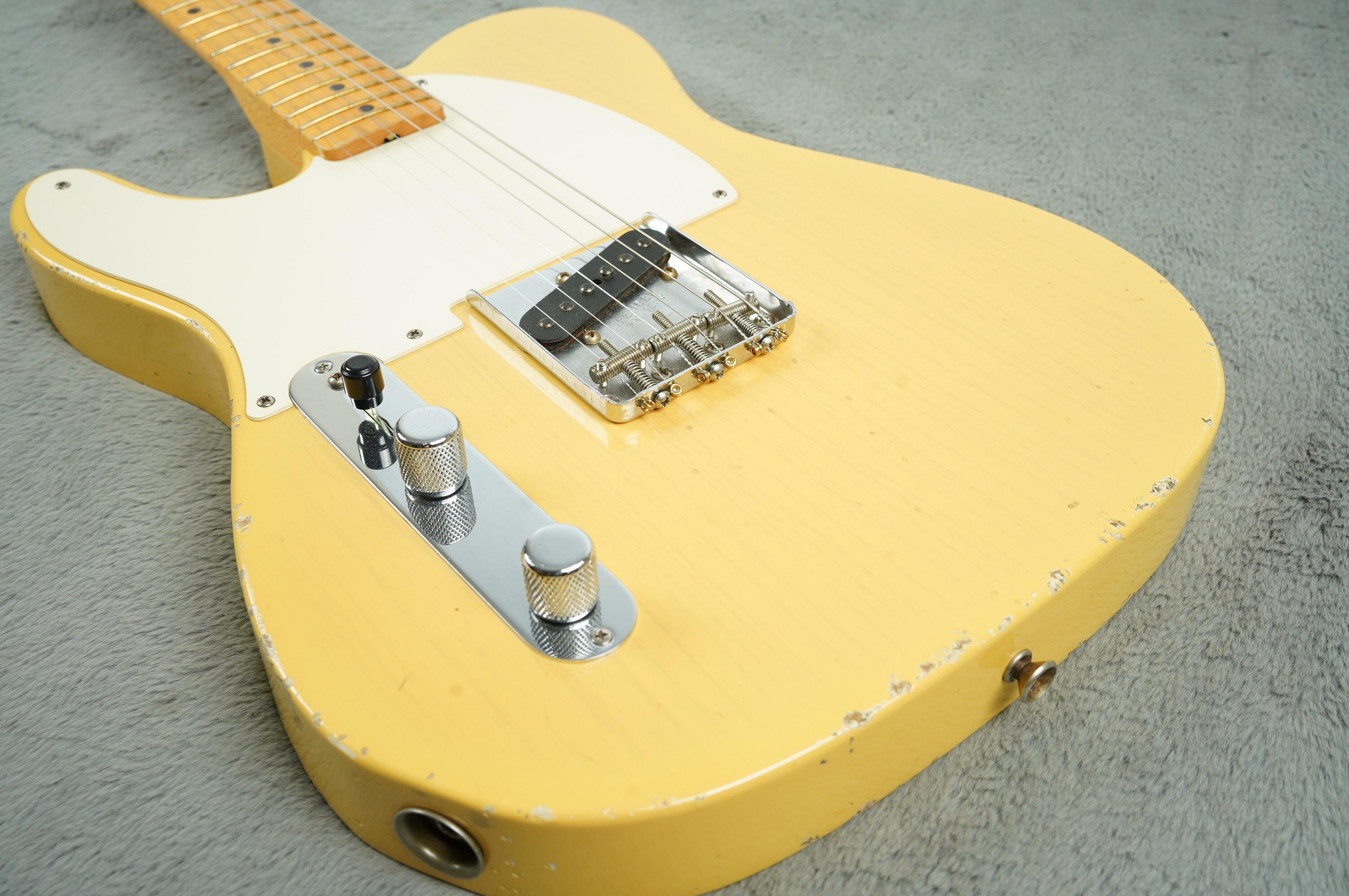 A very cool, rare, left-handed Custom Shop Relic '59 Esquire with just the right amount of ageing giving that desirable vintage look and feel without being over the top. This is a great looking guitar. The ageing to the butterscotch blonde finish is tastefully done, the neck has a nice worn-in feel without being overly stripped of it's lacquer, and the fingerboard wear is more subtle and tasteful than on some other.