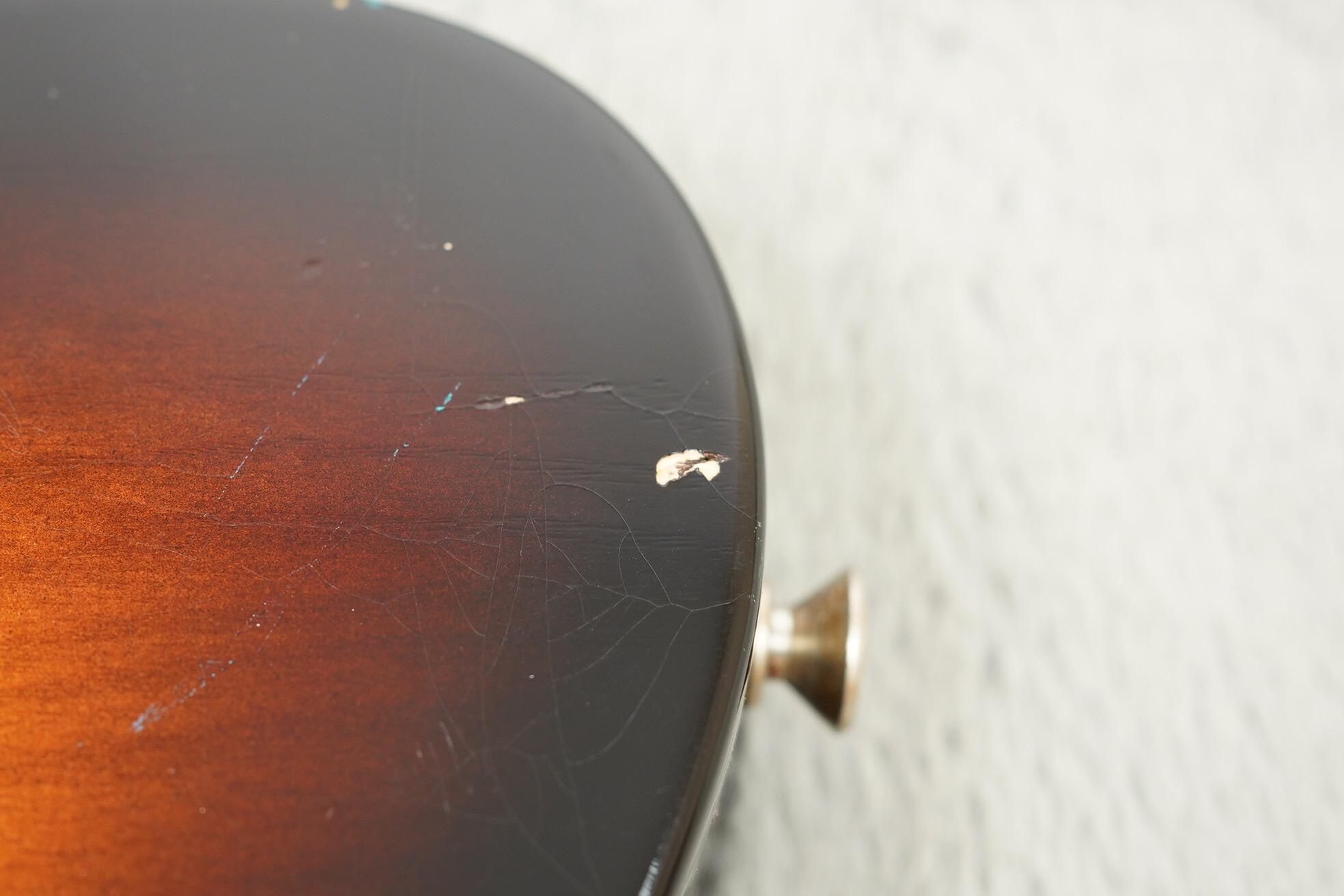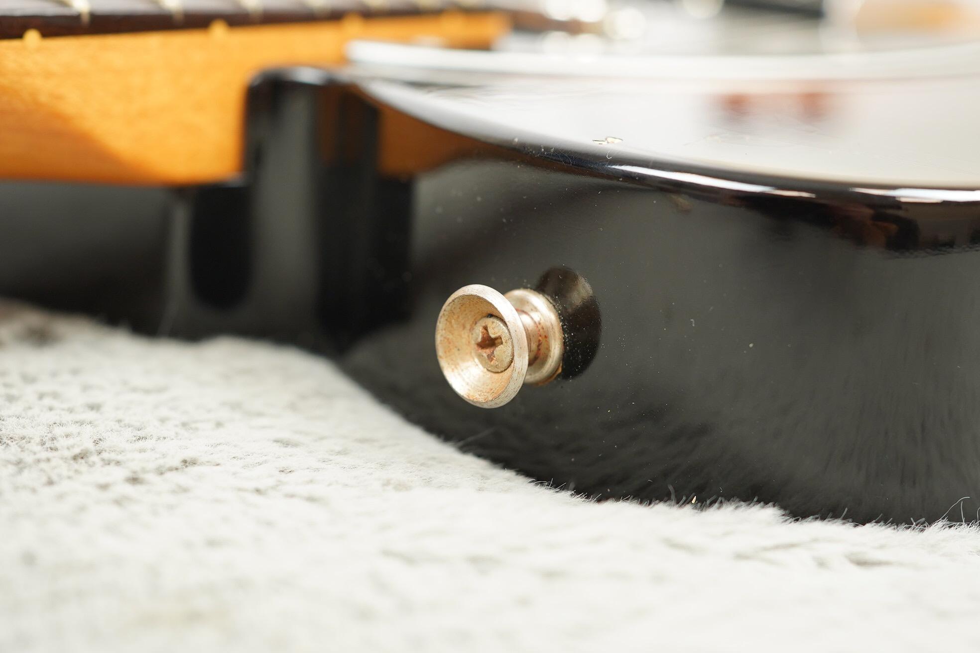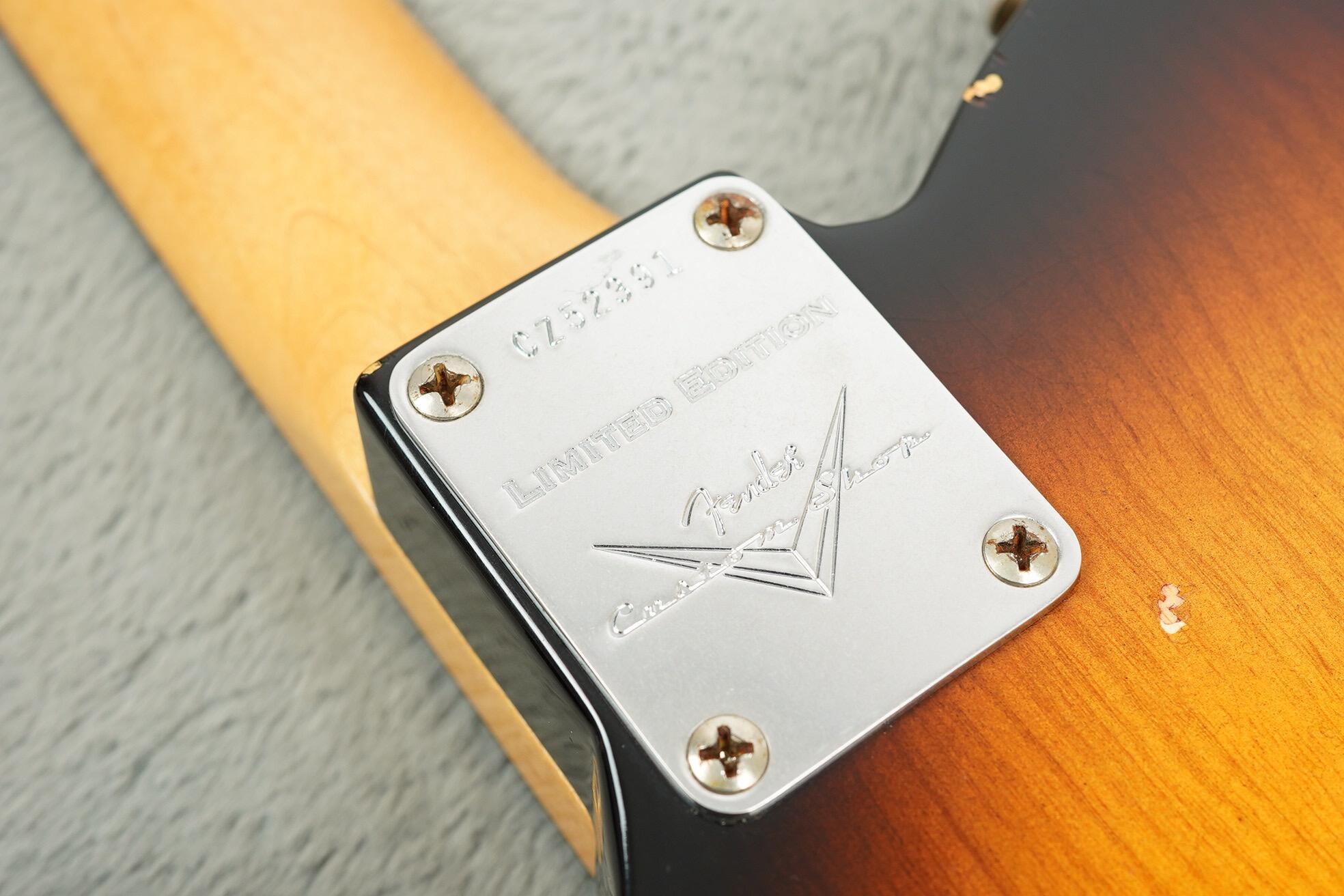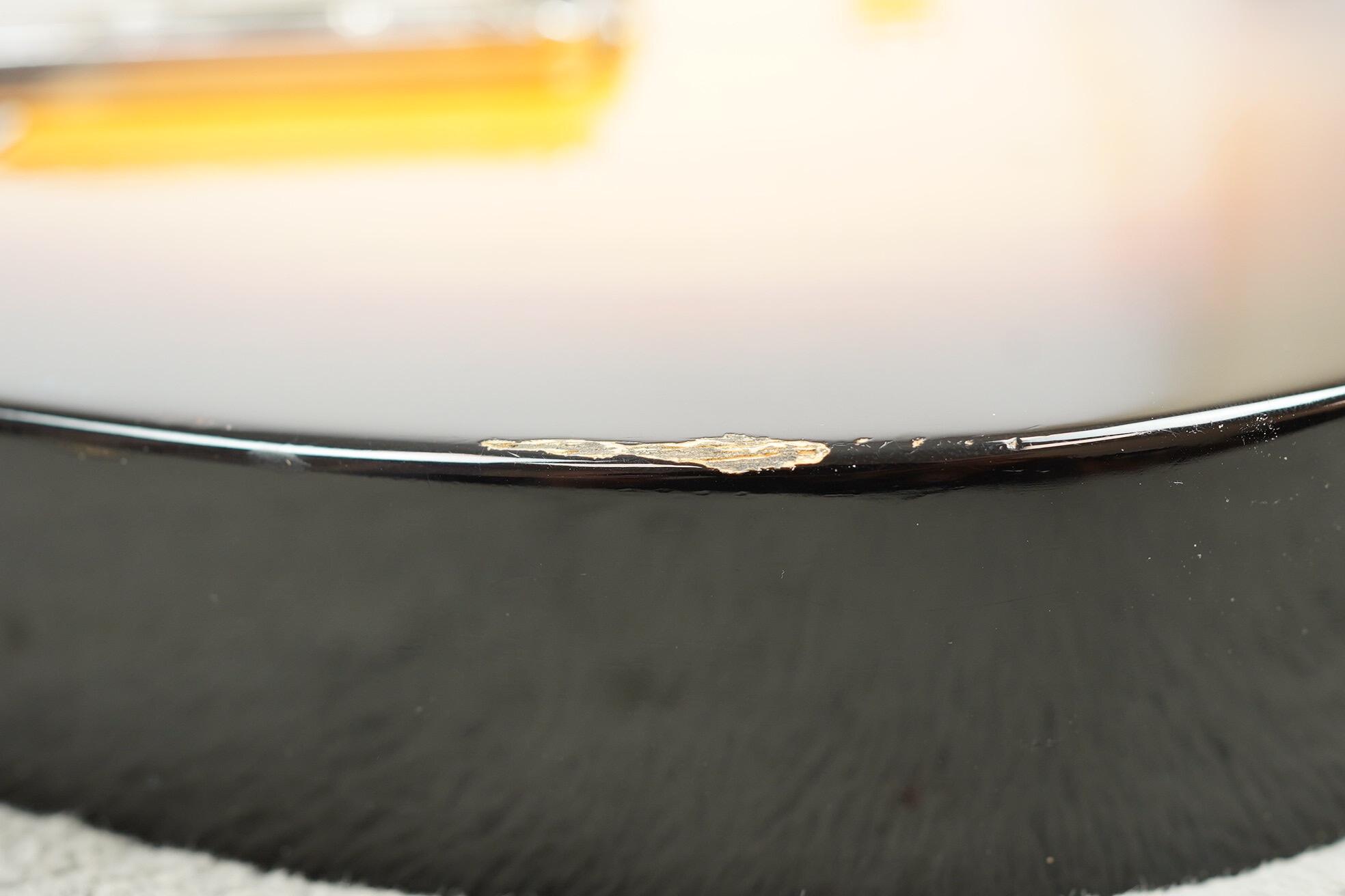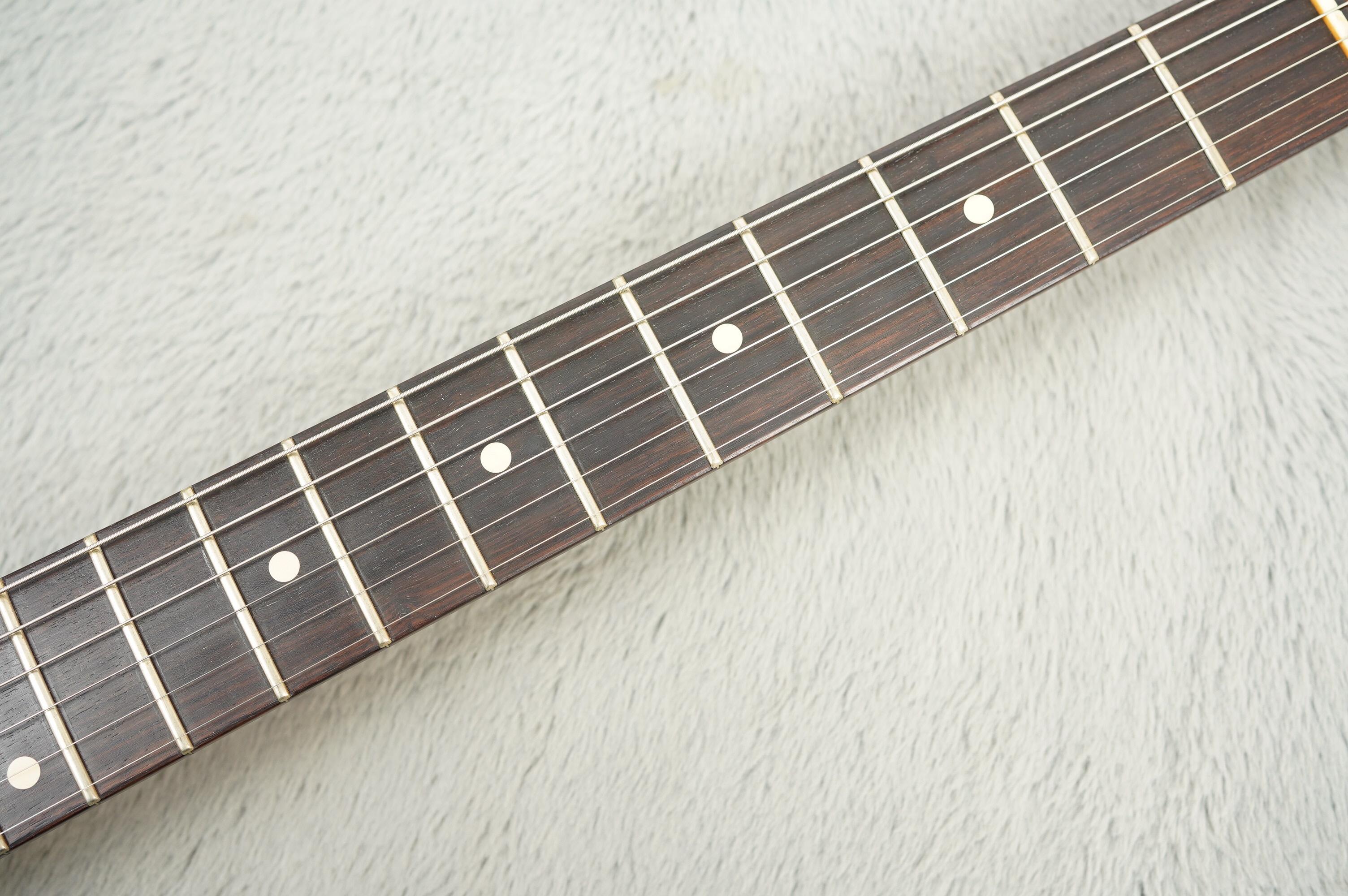 Finished in a beautifully aged 3-tone sunburst that has been subtly aged with lacquer checking, subtle arm and edge wear, and tastefully aged hardware. The 3-ply black pickguard adds a nice contrast to the sunburst finish and hints at the model’s custom character.