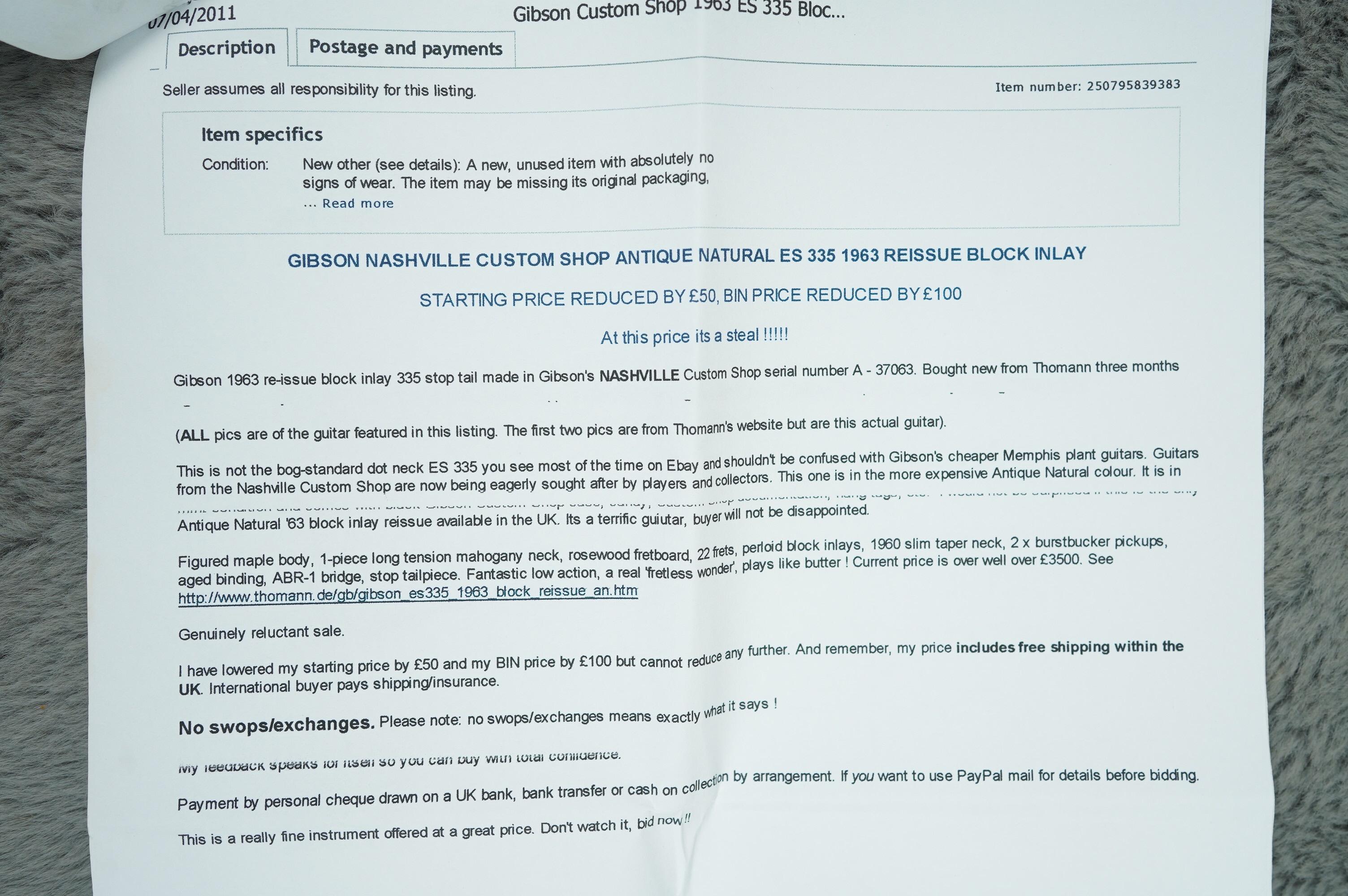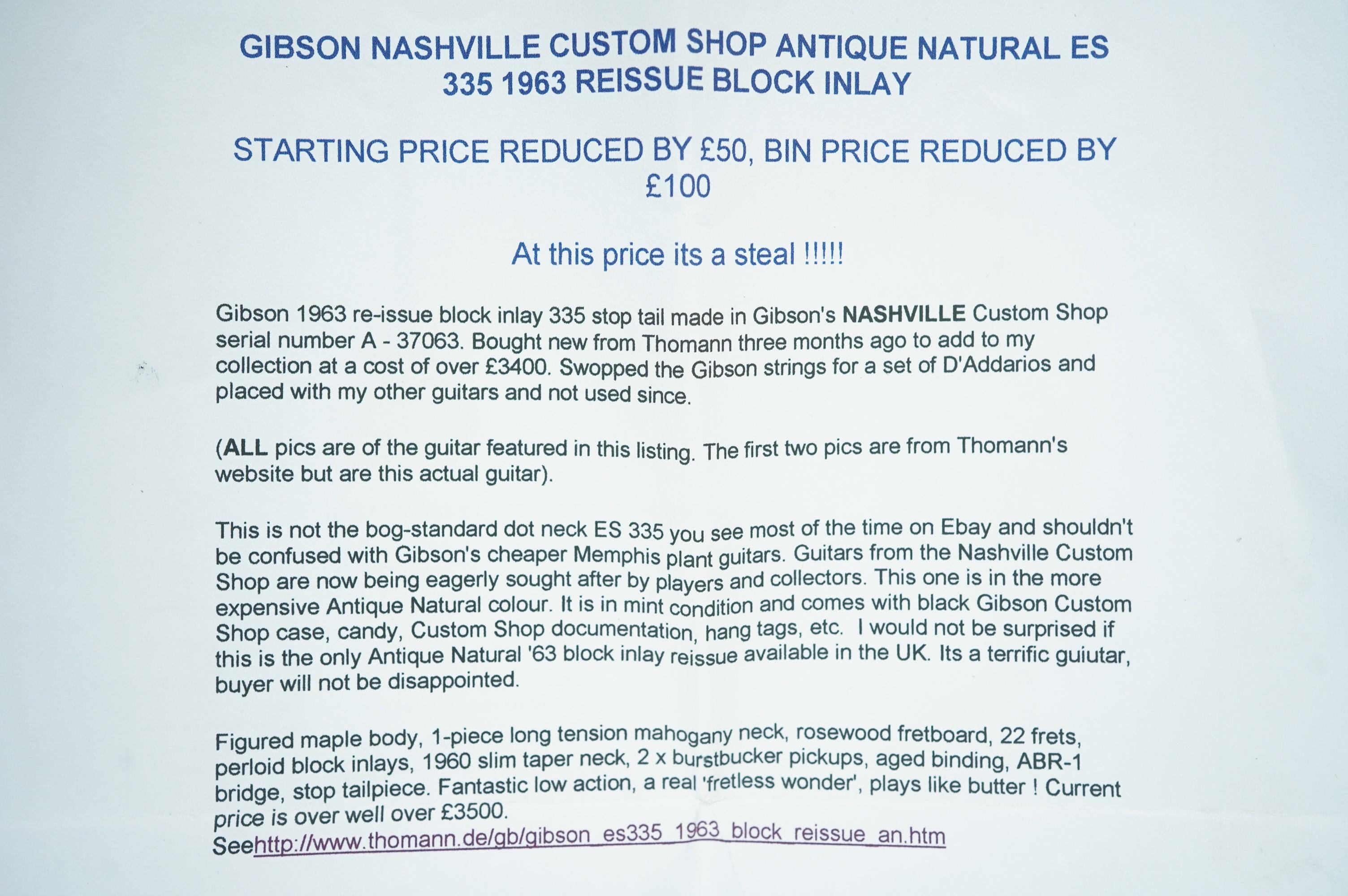 2011 Gibson ES335 ‘63 Nashville Custom Shop Reissue
