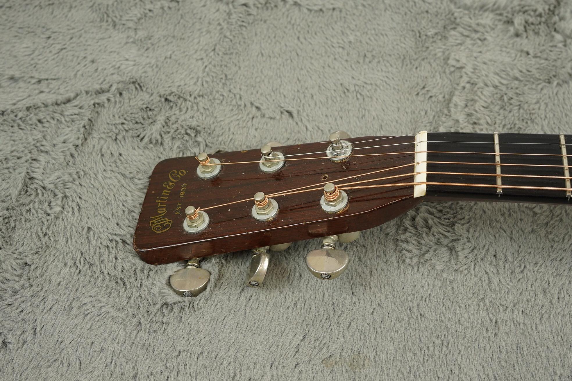 The tone is rich, warm, dry, woody and very well balanced. The Rosewood ensures a very well rounded, warm lower end, the highs are sparkly, distinct and balanced, and the mids are slightly scooped whilst retaining some punch. There's a fair amount of headroom, and the projection is excellent. It's easy to see why this guitar has clearly been used extensively throughout it's life. In both sound and feel this is definitely one of the nicer D-28's we've had.