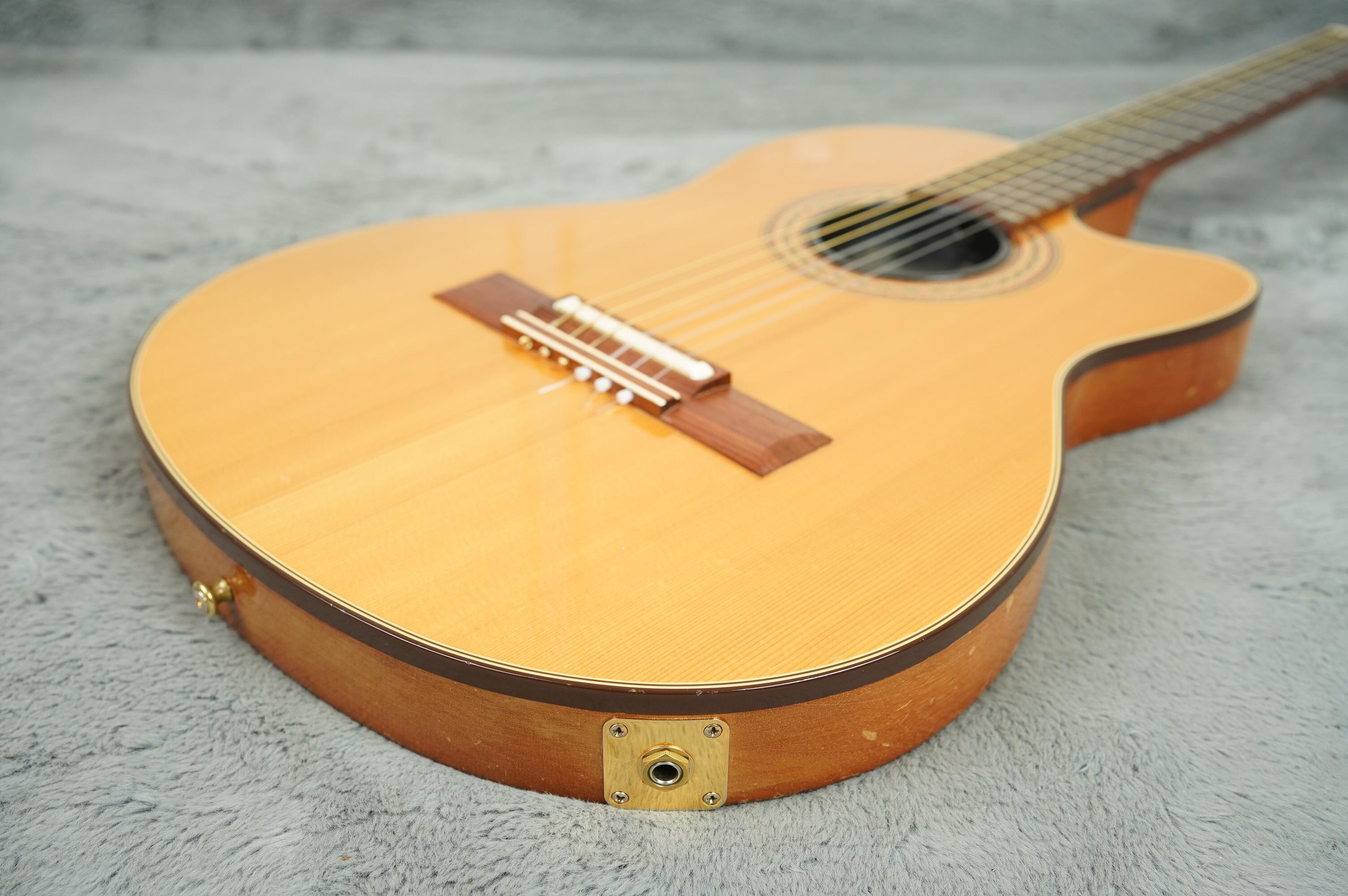 Developed by Chet Atkins and luthier Hascal Haile, Gibson released the CE (Classical Electric) in 1982. 25” scale length, solid mahogany chambered body with Cedar or spruce top, it soon became popular amongst pop and rock musicians such as Sting and Mark Knopfler.