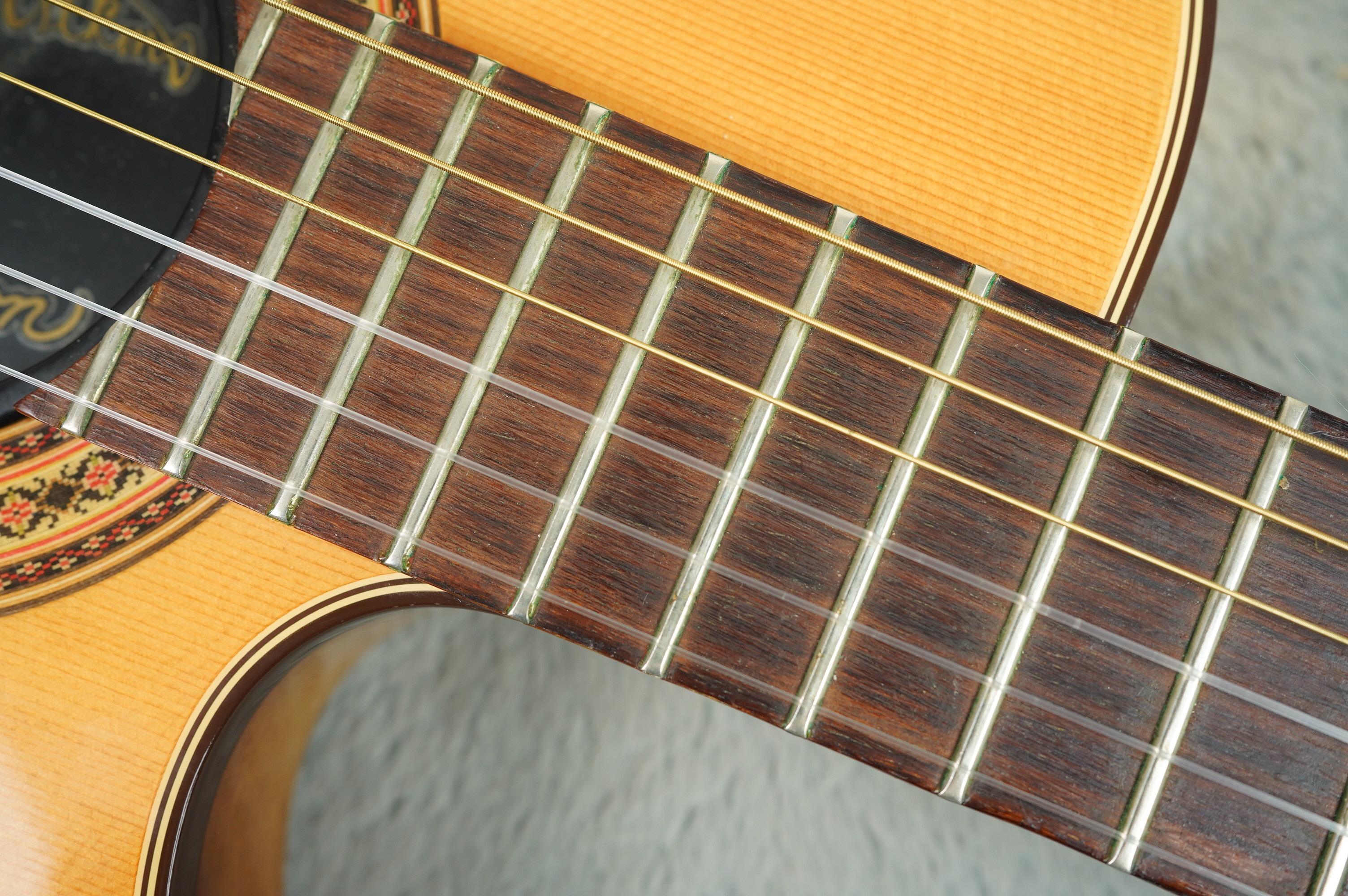 The neck too is in great condition. The rosewood fretboard is free of any wear and there is plenty of life left in the original frets. The CE has a 1 ⅞” wide nut as opposed to the 2” width which is standard for classical guitars.