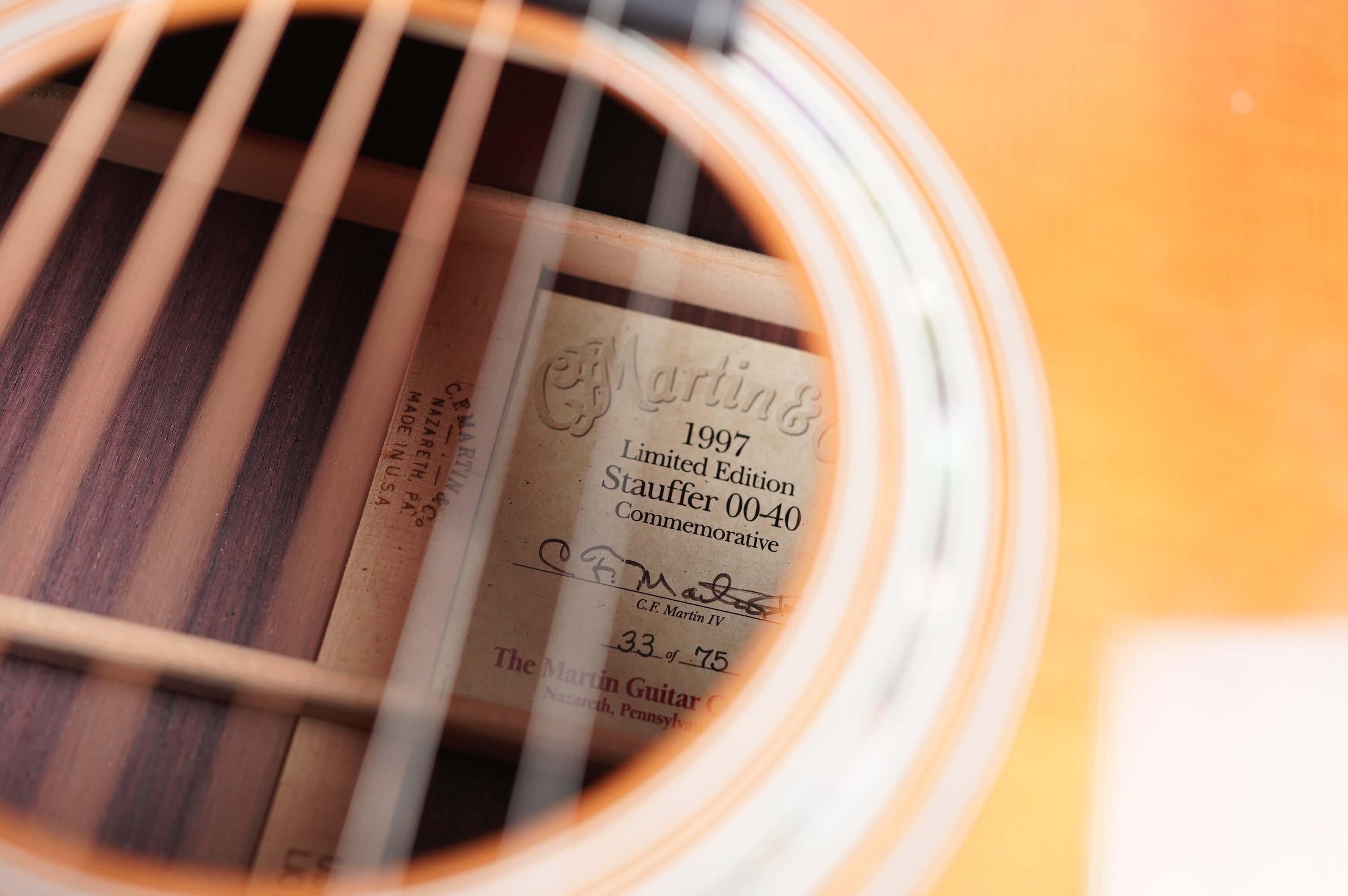 This rare 1997 Martin Stauffer 00-40 is an elegant limited-edition model, built as part of a planned run of 75 instruments. Ours is stamped #33, though it’s widely believed that Martin never actually completed the full run, making these one of the hardest modern Martin editions to track down. Presented here in excellent condition and complete with its original hard case, it’s a fine example of this elusive model.