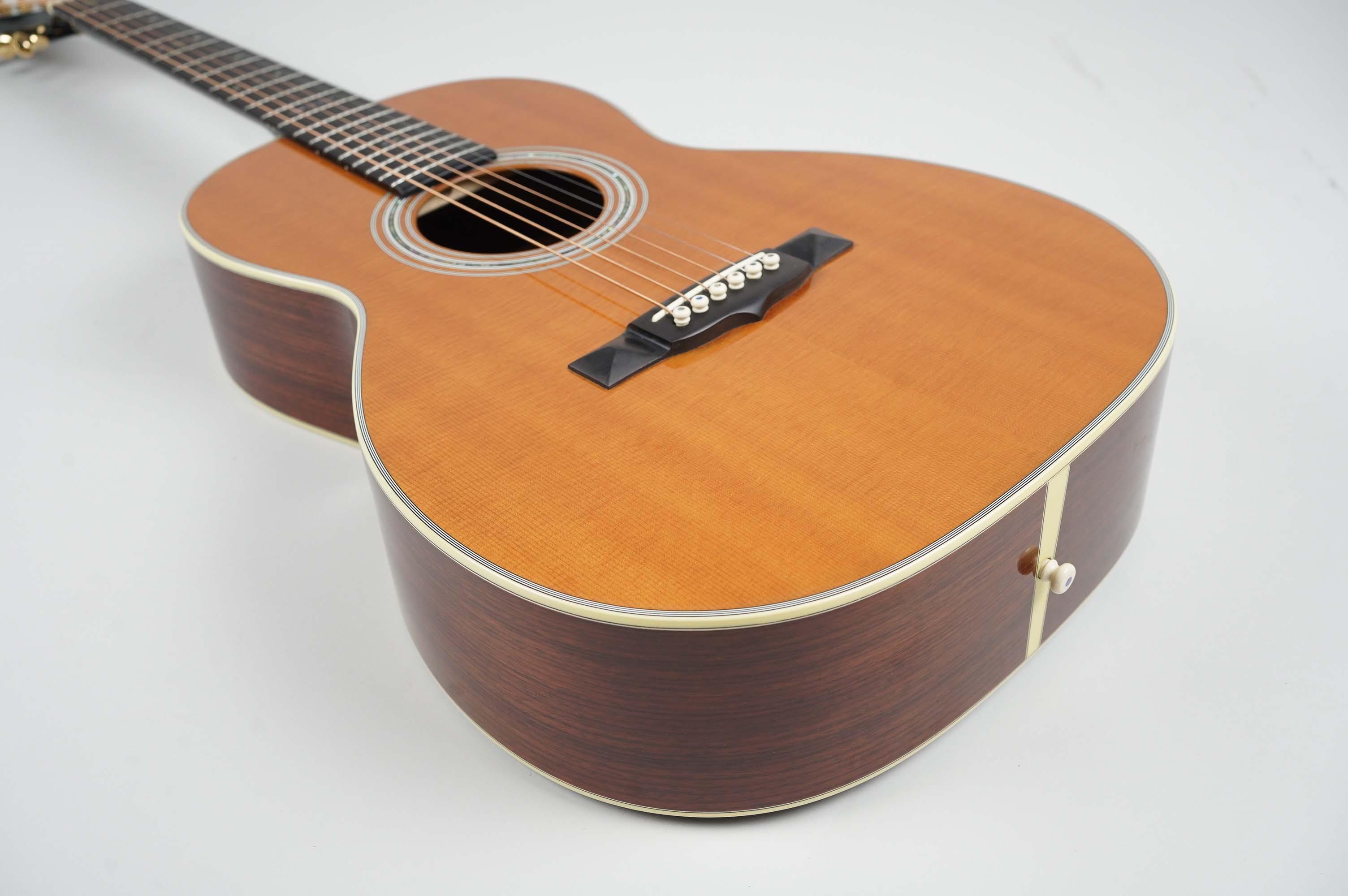 Playability is excellent thanks to the comfortable 12-fret neck and short 24.9" scale length, making it an especially inviting instrument for fingerstyle playing. Tonally it delivers exactly what you’d expect from a rosewood 00: a sweet, balanced voice with clarity across the registers and an immediacy that responds beautifully to a lighter touch.