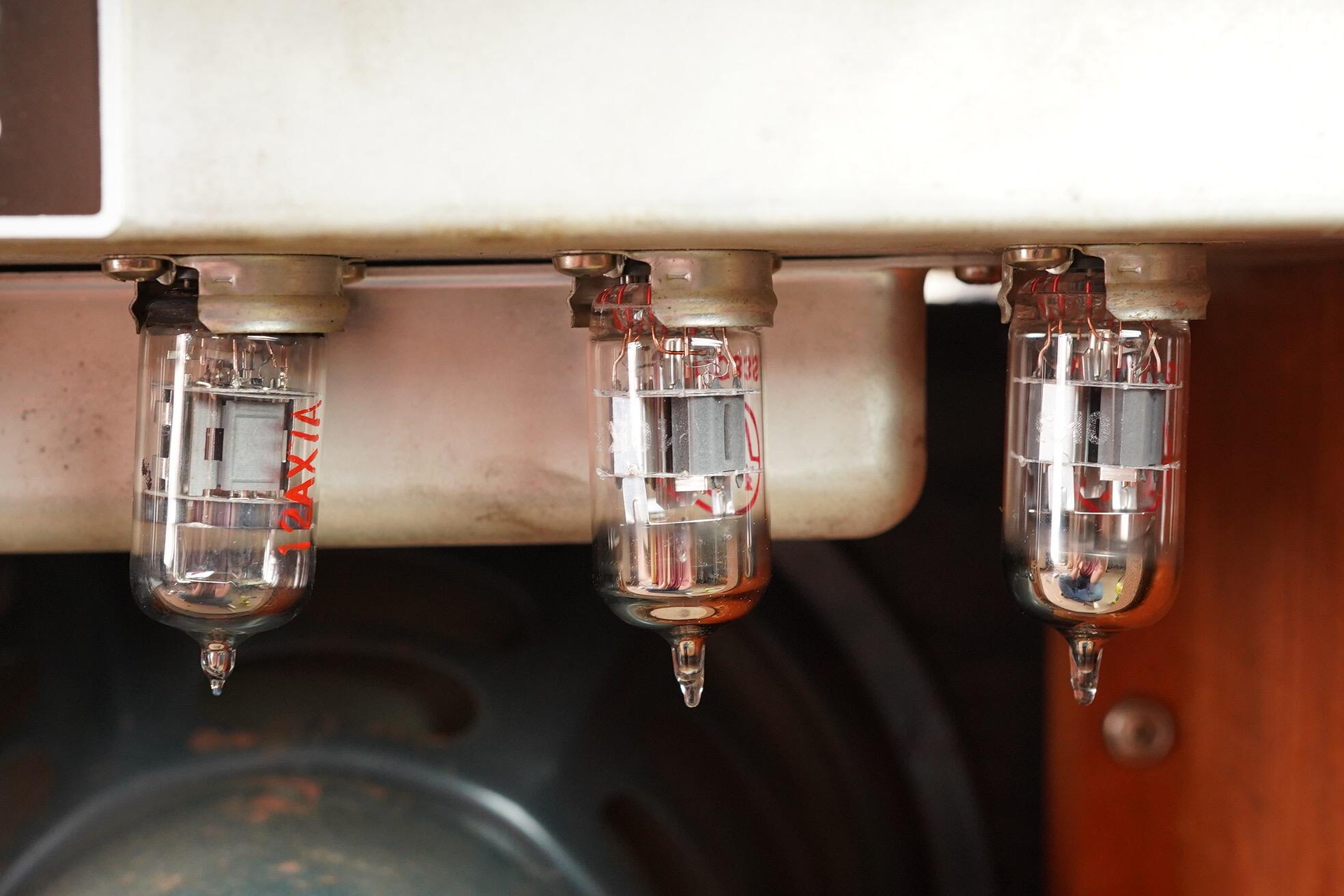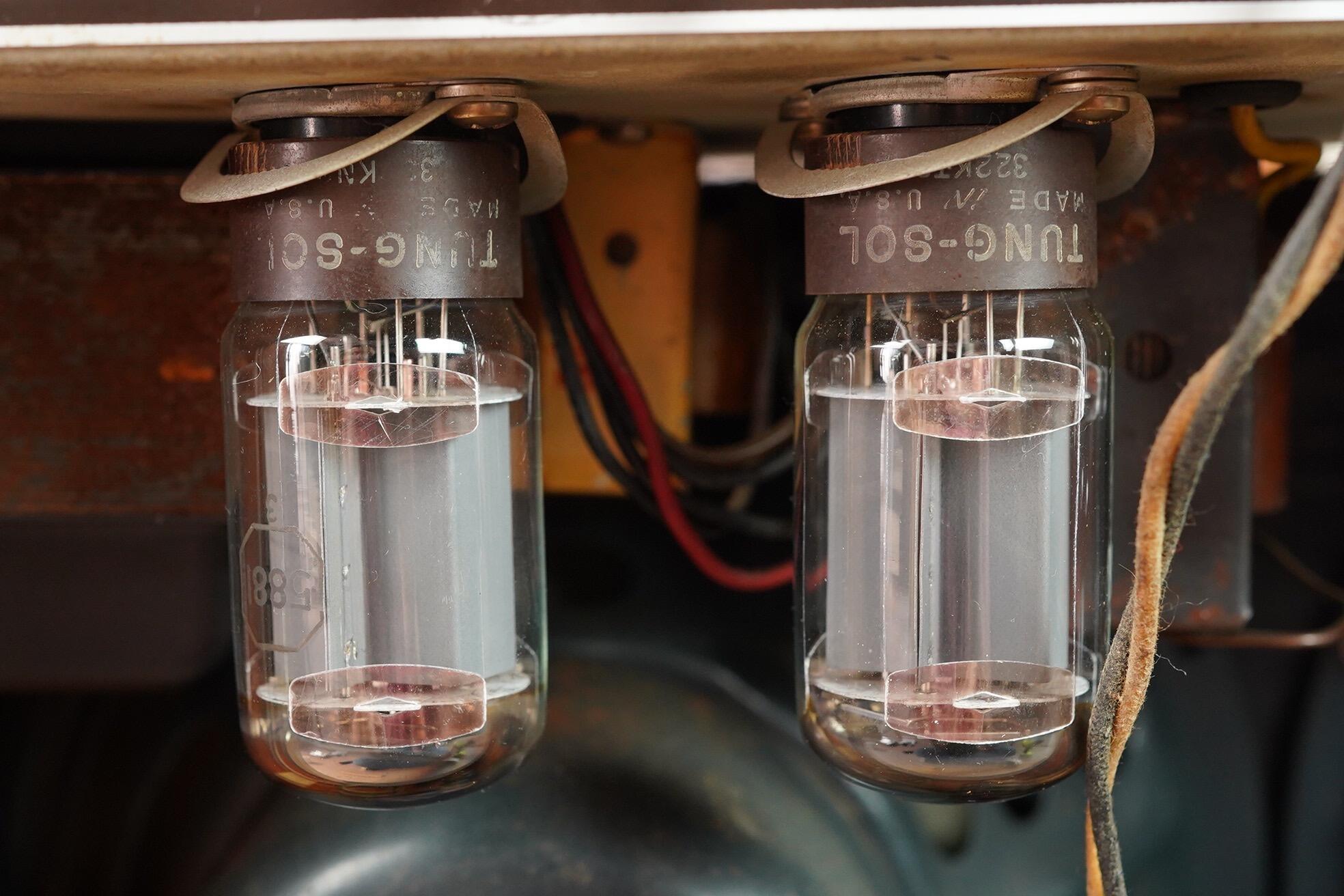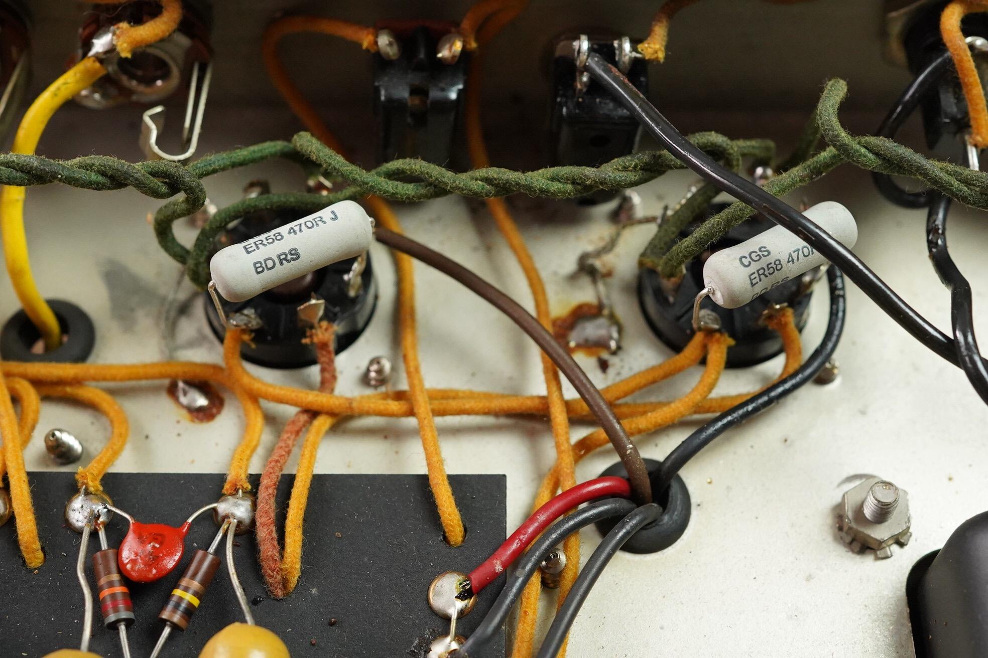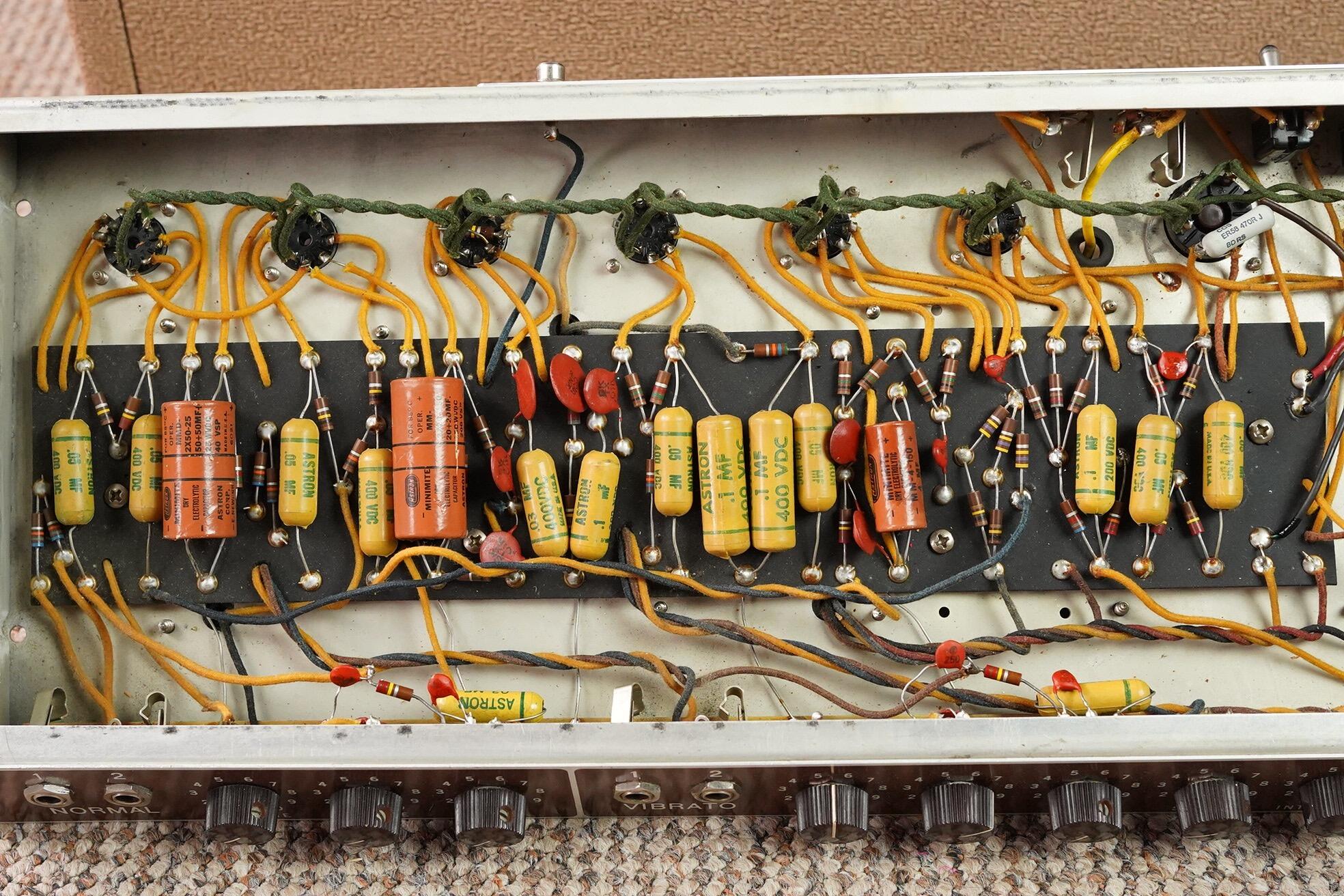 The amp has been inspected in 2016 with an extensive report written on its status and some minor repairs carried out. As you can see from this, it was recommended that a three prong plug be fitted. This hasn’t been done unfortunately but we would recommend this work be carried out. Elsewhere it seems that one filter cap has been changed but nothing else has been changed or modified.