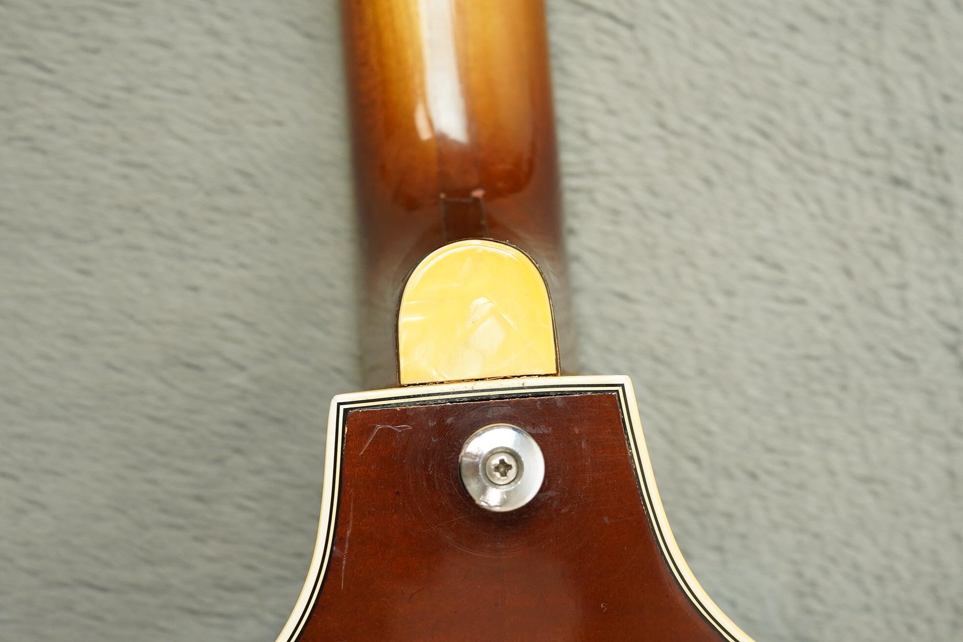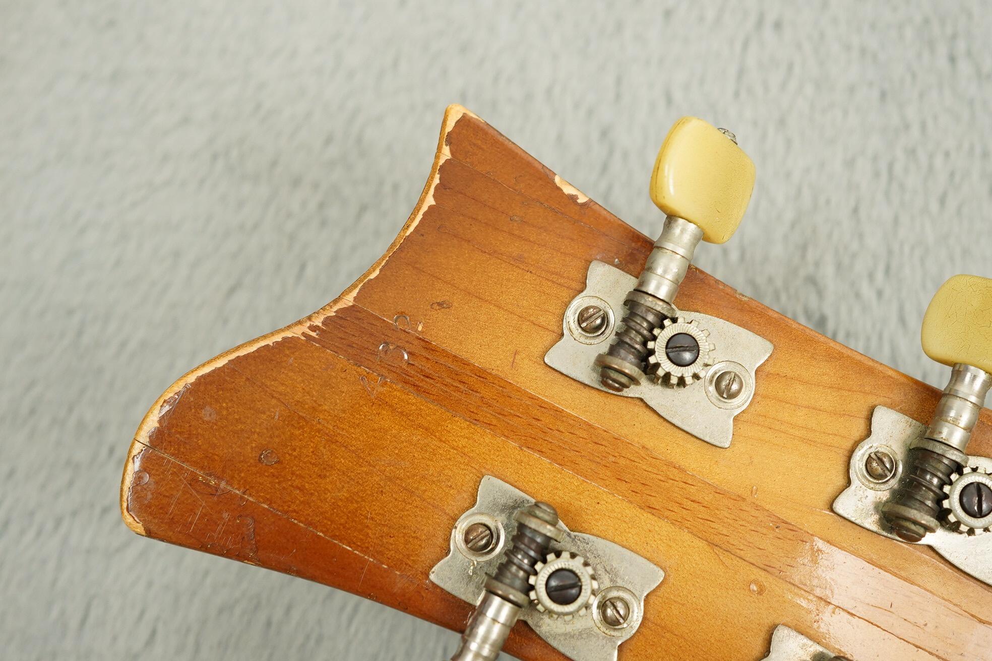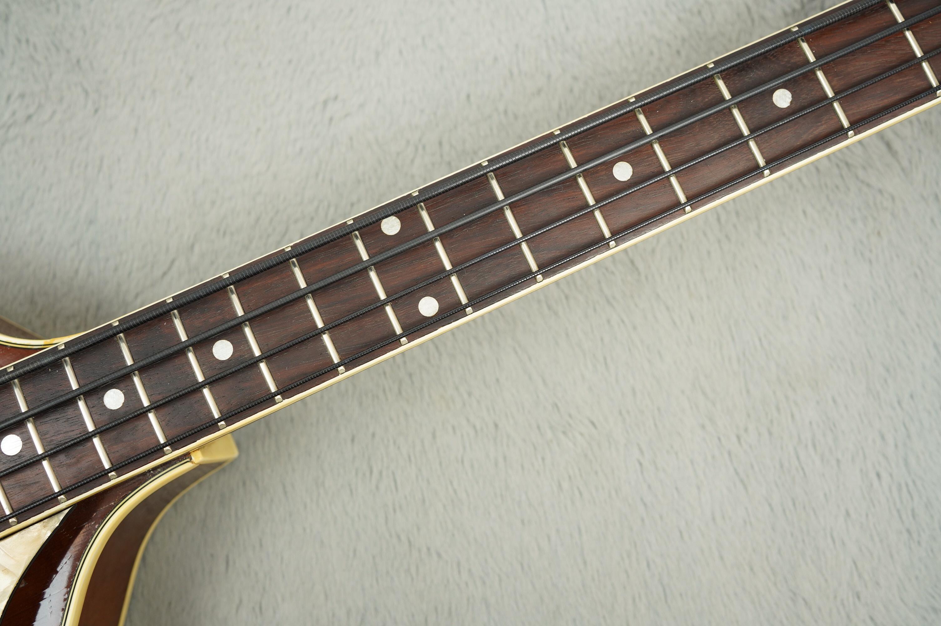 The laminated Maple body and set maple neck contribute to the bass’s strong acoustic presence and low-end bloom, while the rosewood fingerboard adds smoothness and warmth to the touch. This example plays cleanly, with a comfortable worn-in feel that only comes with time. The original control panel with volume and tone sliders remains intact and in working order