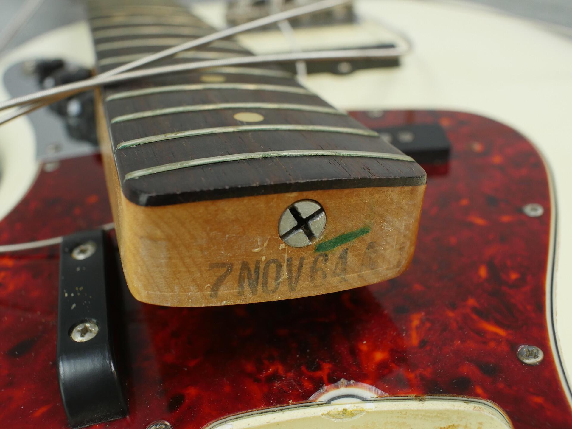 Correct hardware and electrics with undisturbed solder joints. Neck date of November 1964, serial number is late 64 and pots date to 1964 week 40.