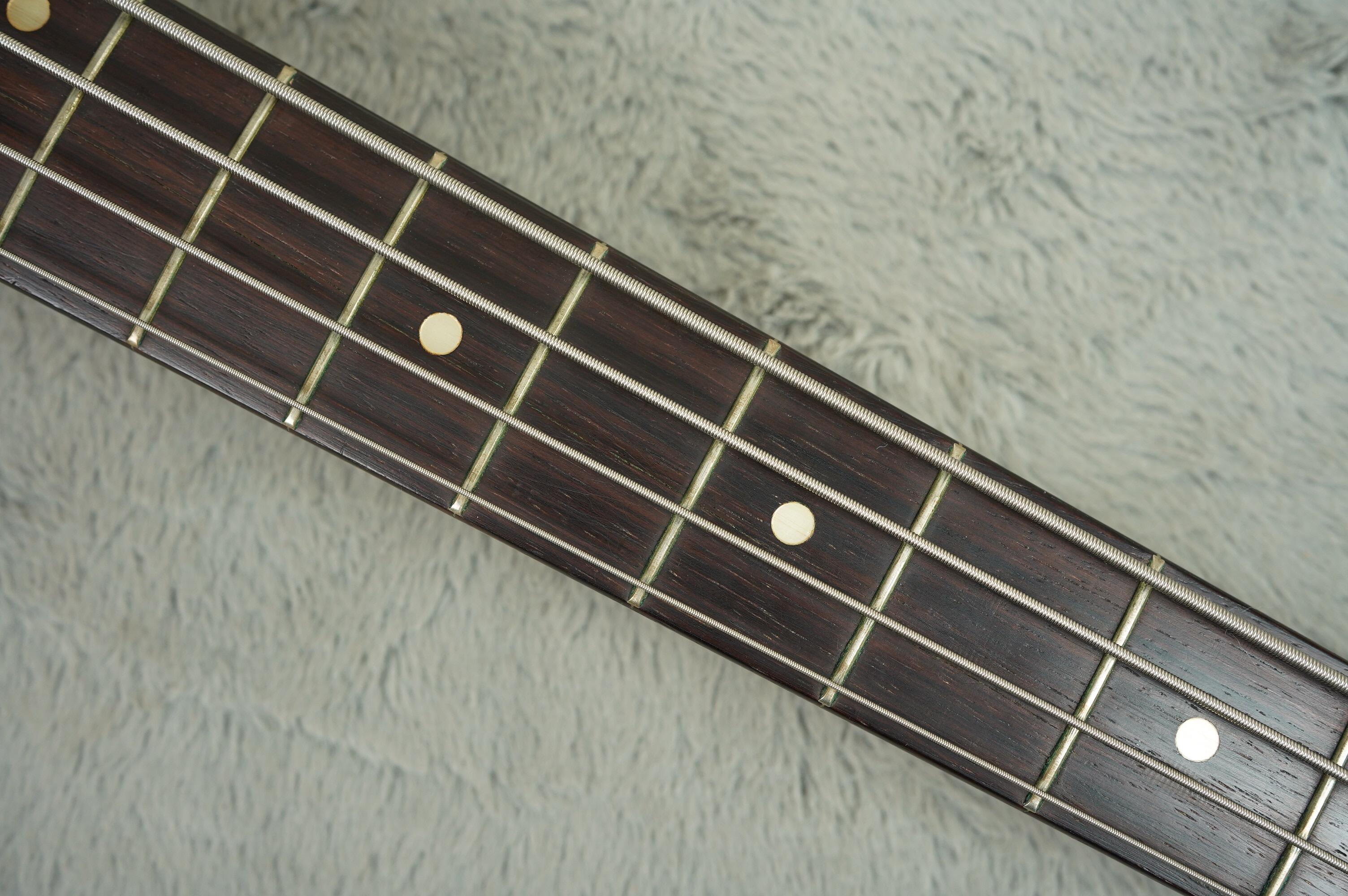 Both pickups work really nicely together and are evenly balanced with all the cool varieties of tone that you expect to get from a great, vintage Jazz bass. It has a nice action, plays real well with zero wear on the original frets and zero wear on the lovely rosewood fingerboard. We fail to see how anyone would be disappointed with this bass.