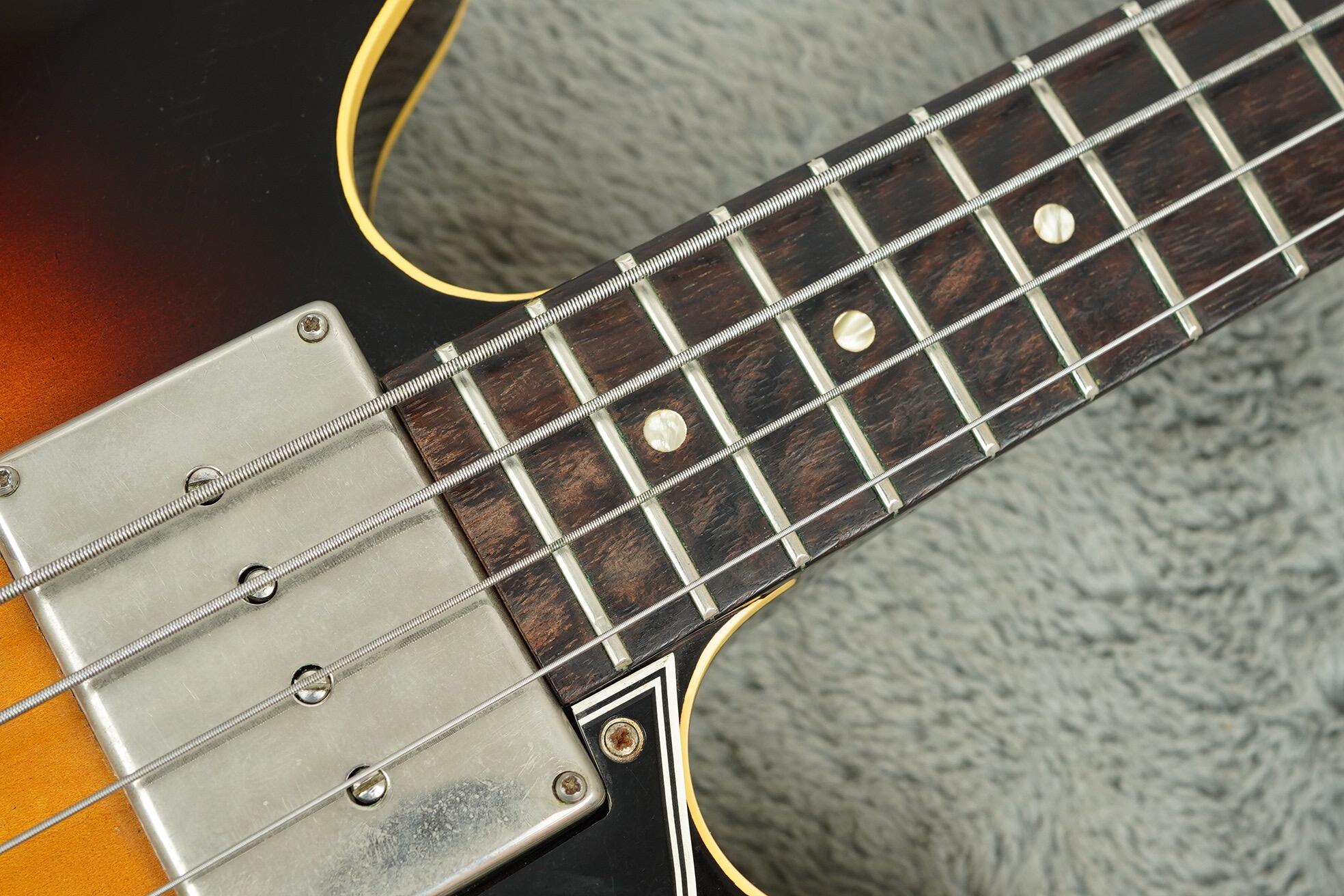 Introduced alongside the ES-335 in 1959, the EB-2 was touted as "Gibson's biggest bass invention" and stayed in the catalogue until 1972 with a brief hiatus in 1963.