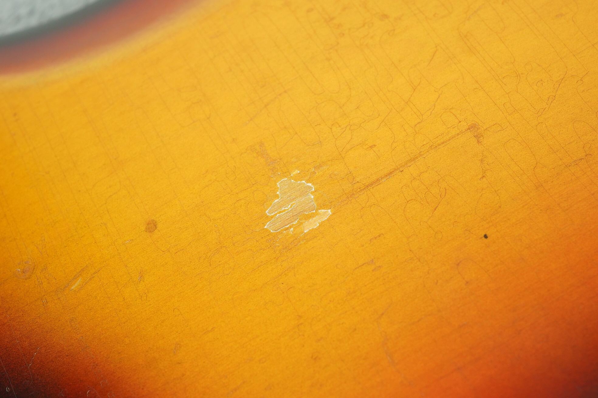This is a late L-series, pearl dot neck, un-bound fingerboard version - post clay dot but pre the transition to bound necks and block inlays. The neck is a comfortable medium C, the frets show wear but are original, as is the nut. Tuners are the correct double-line Klusons. The neck is nicely worn having benefitted from years of play to give it that smooth desirable feel. The body retains its original finish which as you can see in the photos has faded leaving a nicely contrasting perimeter burst with no red left to speak of. It shows wear and there appears to have been some minor surface reaction on the side by the rear strap button, commonly seen as a result of being kept in foam padded flight cases or similar.