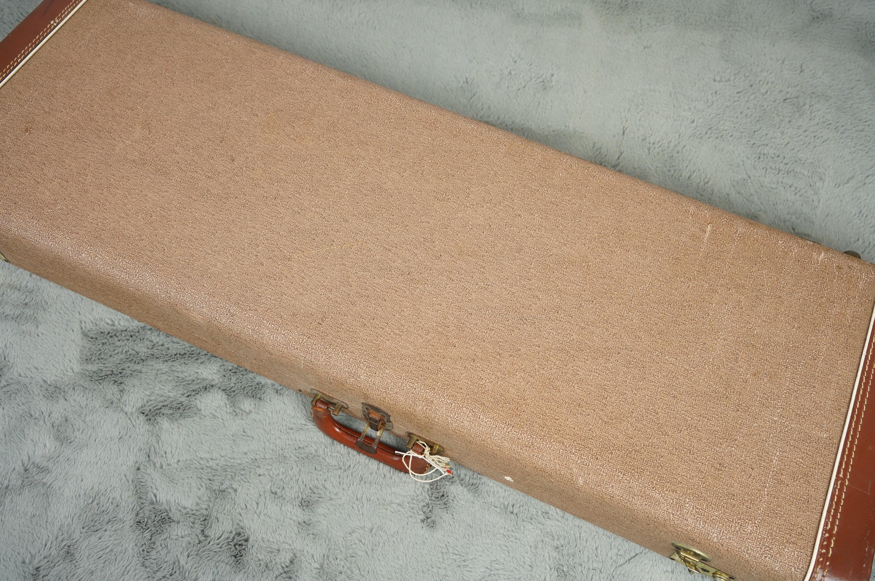 The guitar comes with a period brown tolex hardshell case for a Fender offset.