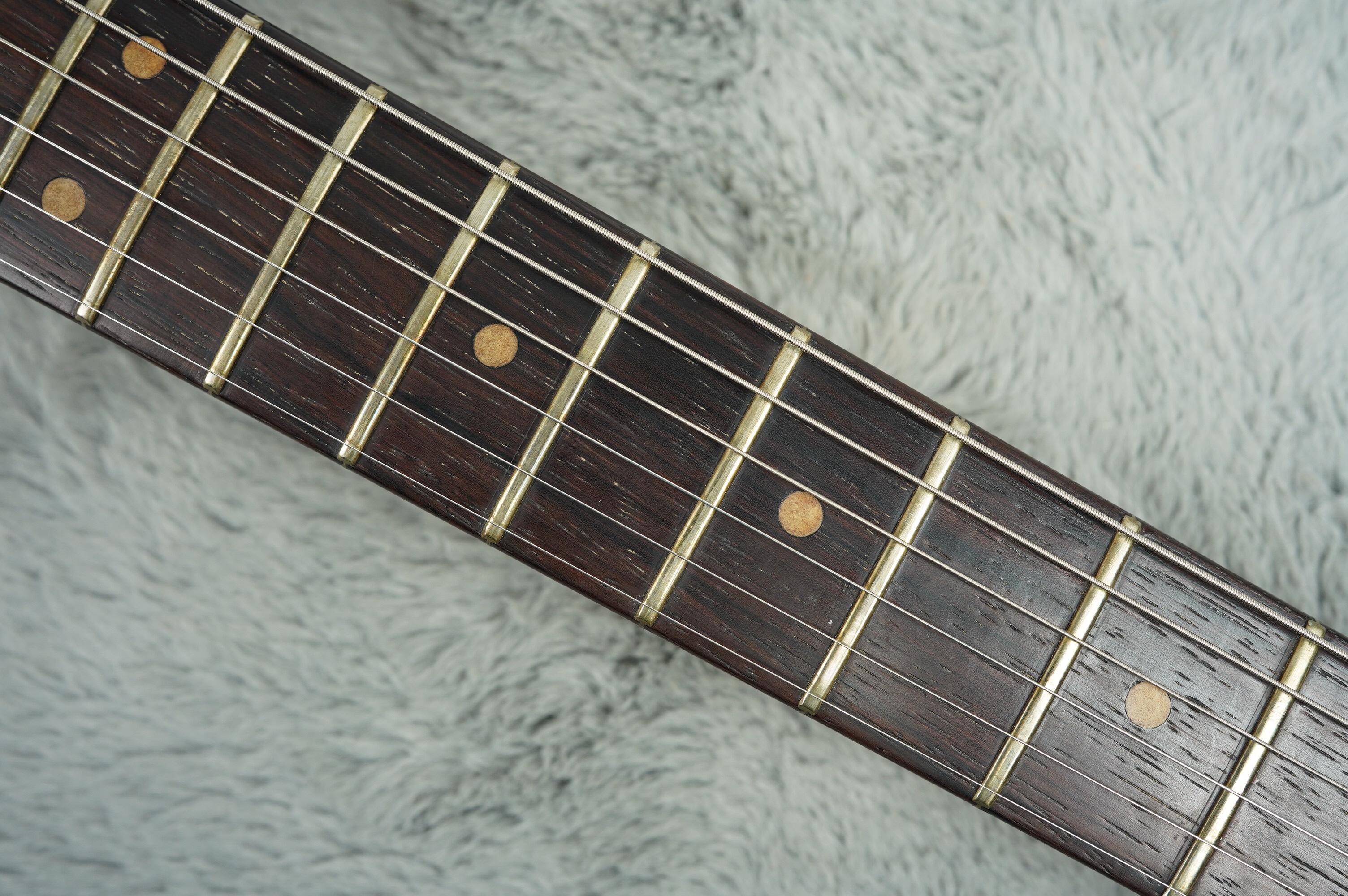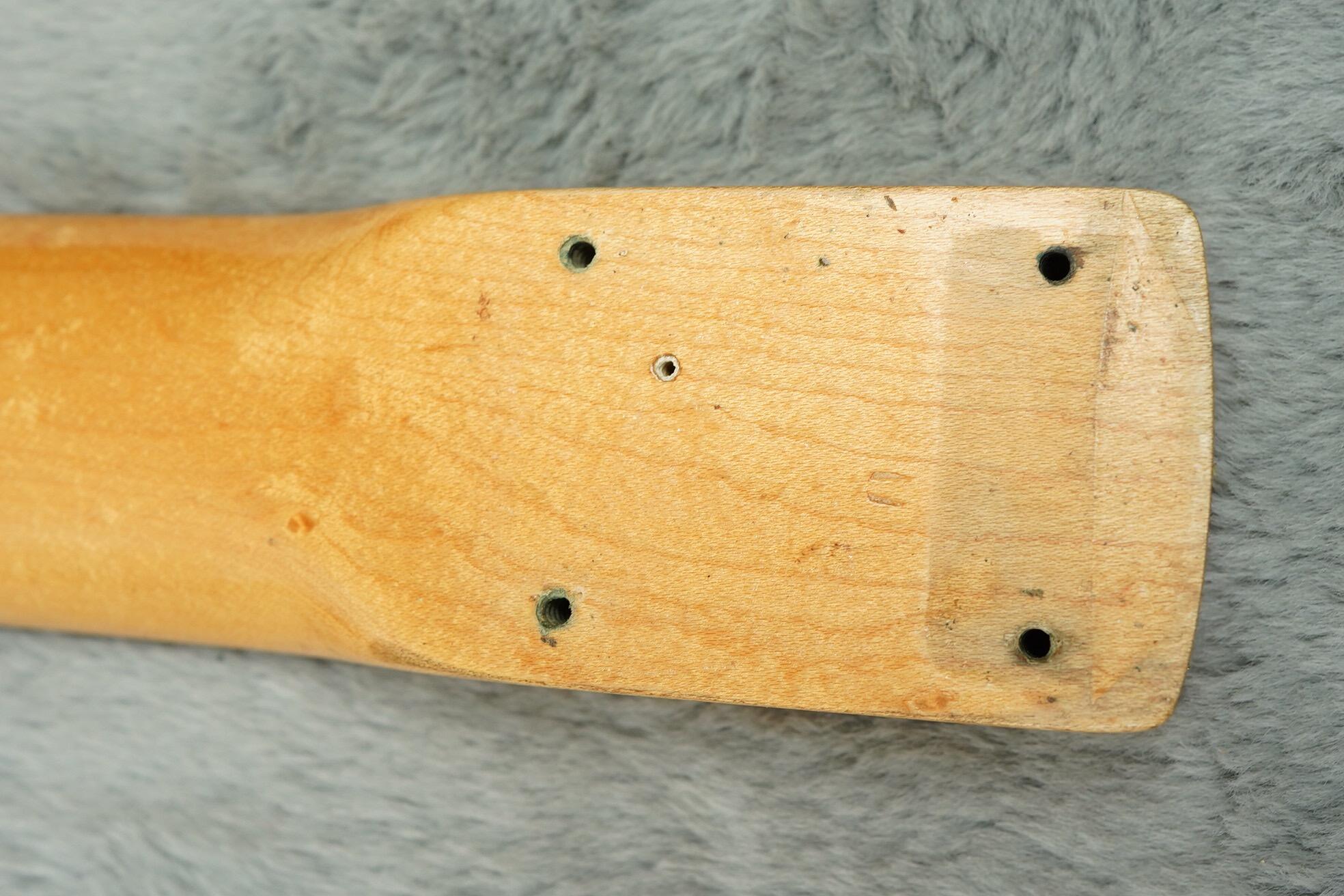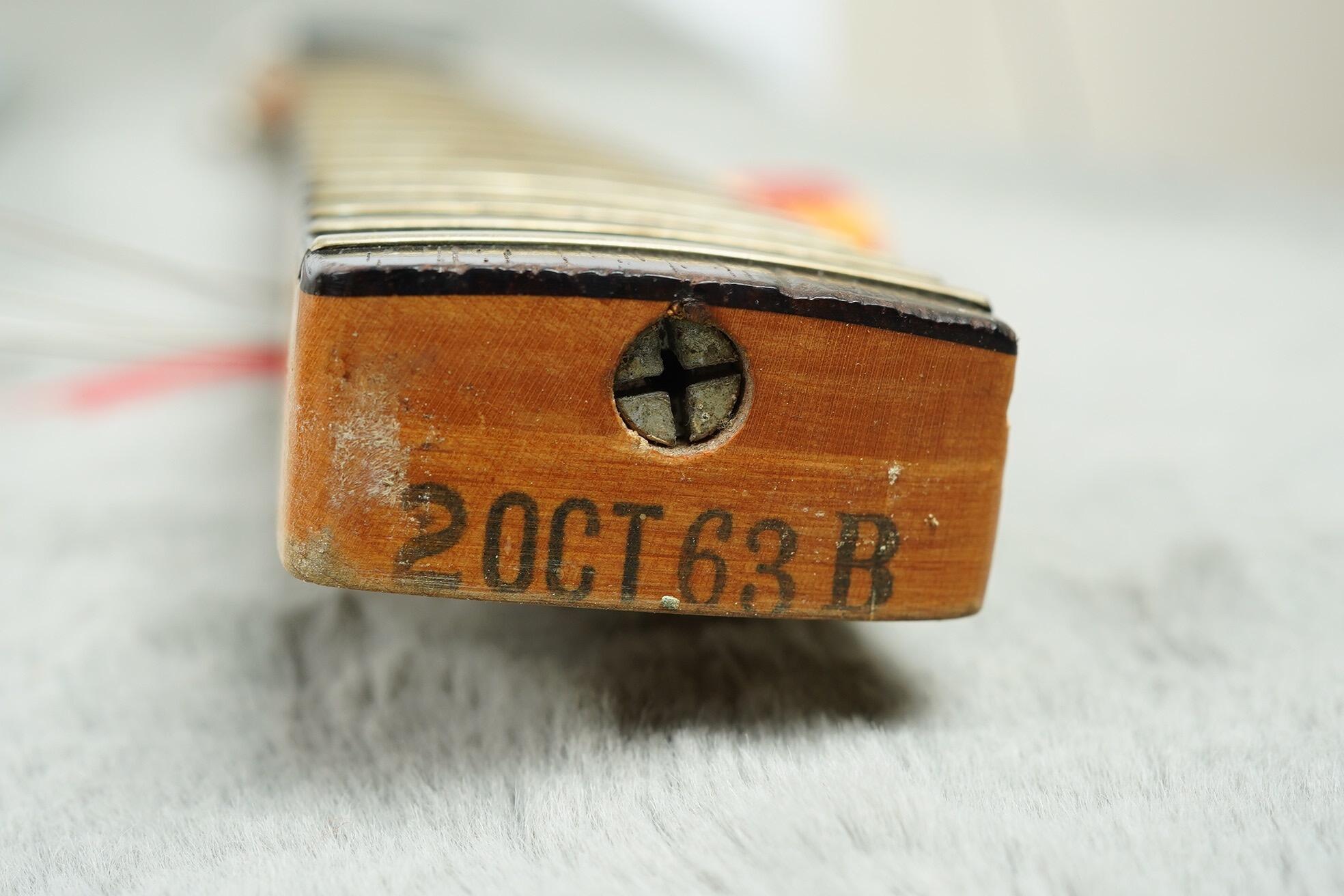 The neck too has been refinished with a new decal having been applied. Its been refretted with wider frets, these are in good condition with some wear. The neck is dated at October 1963.