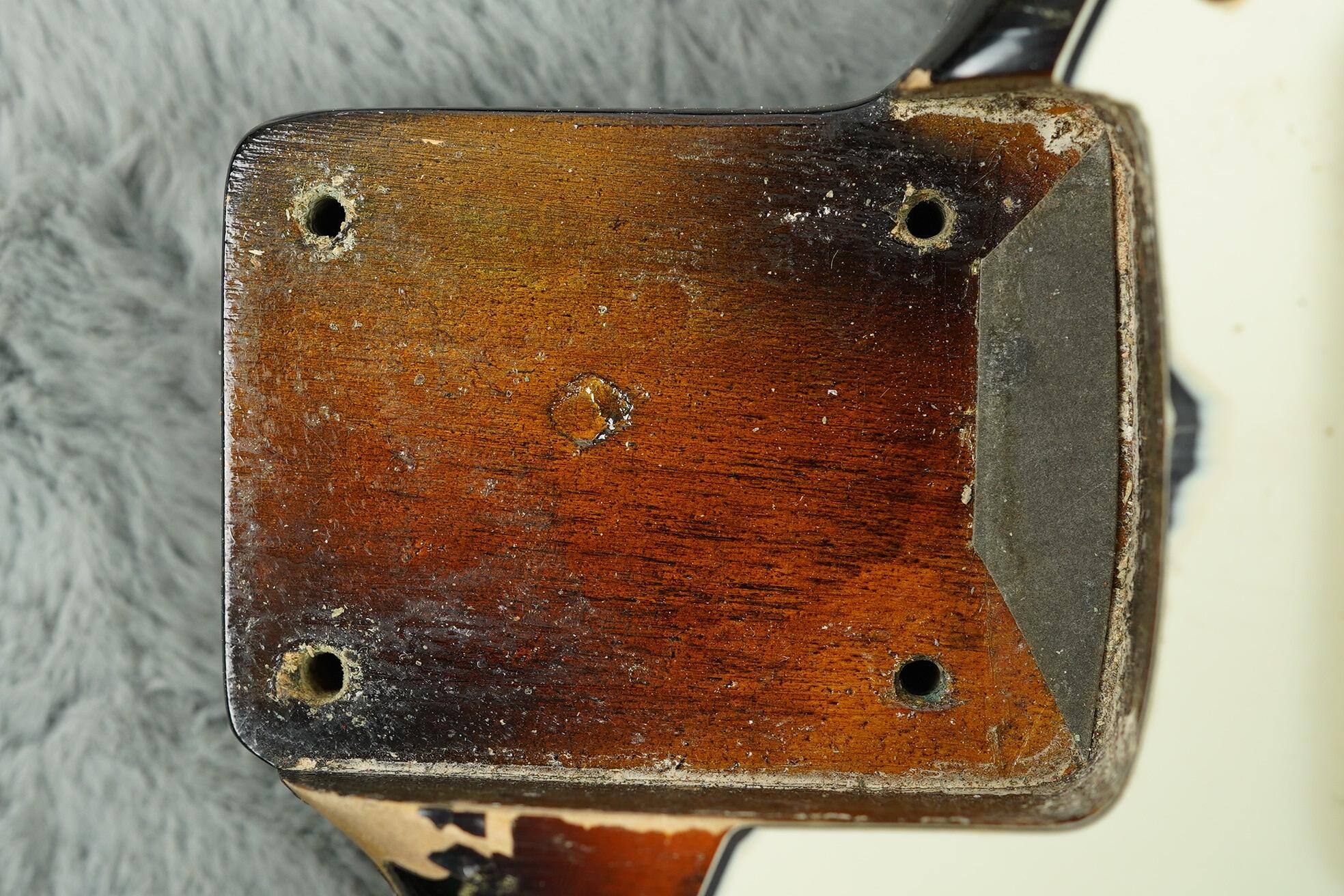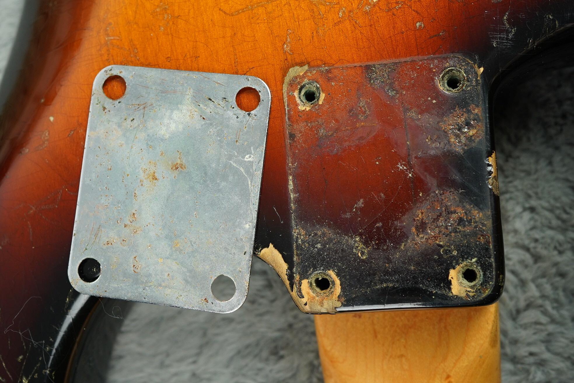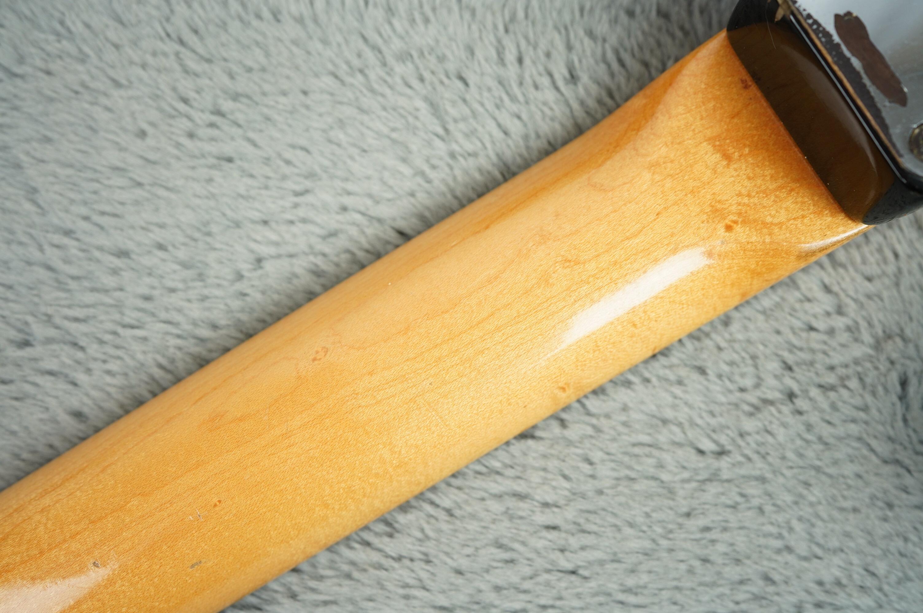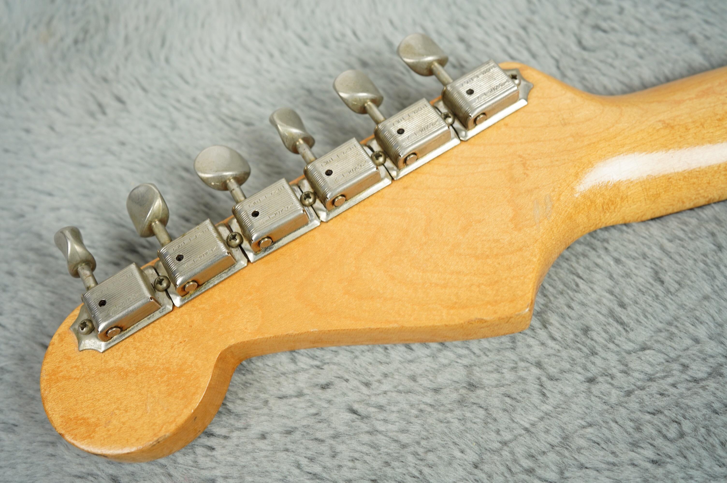 The neck too has been refinished with a new decal having been applied. Its been refretted with wider frets, these are in good condition with some wear. The neck is dated at October 1963.