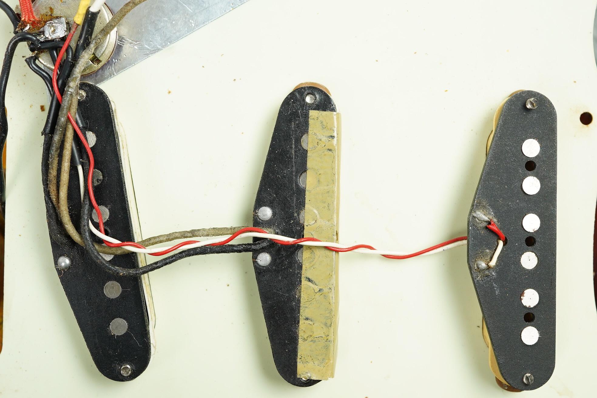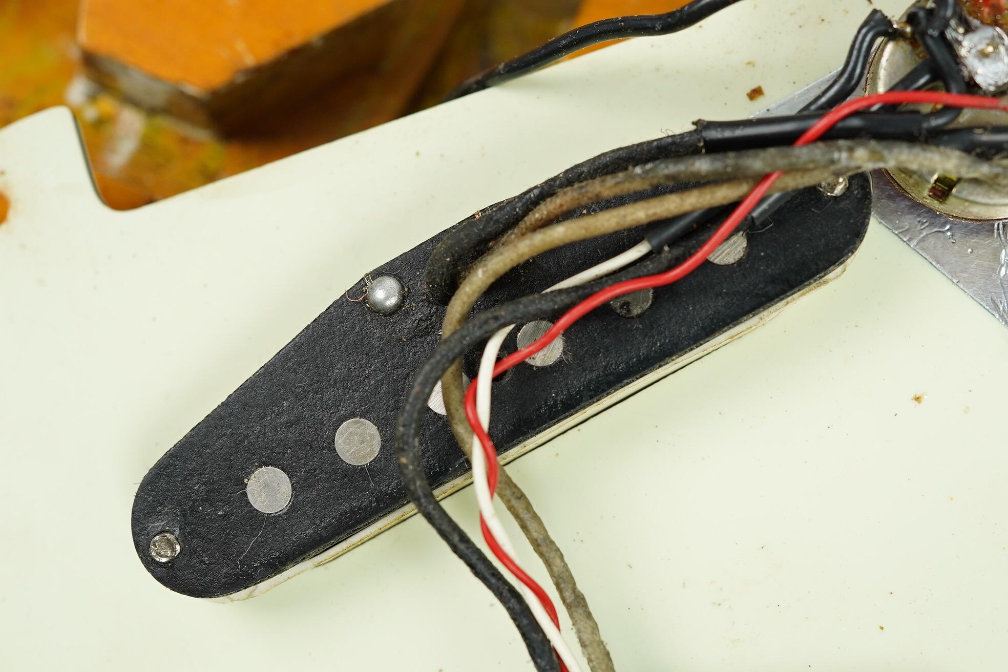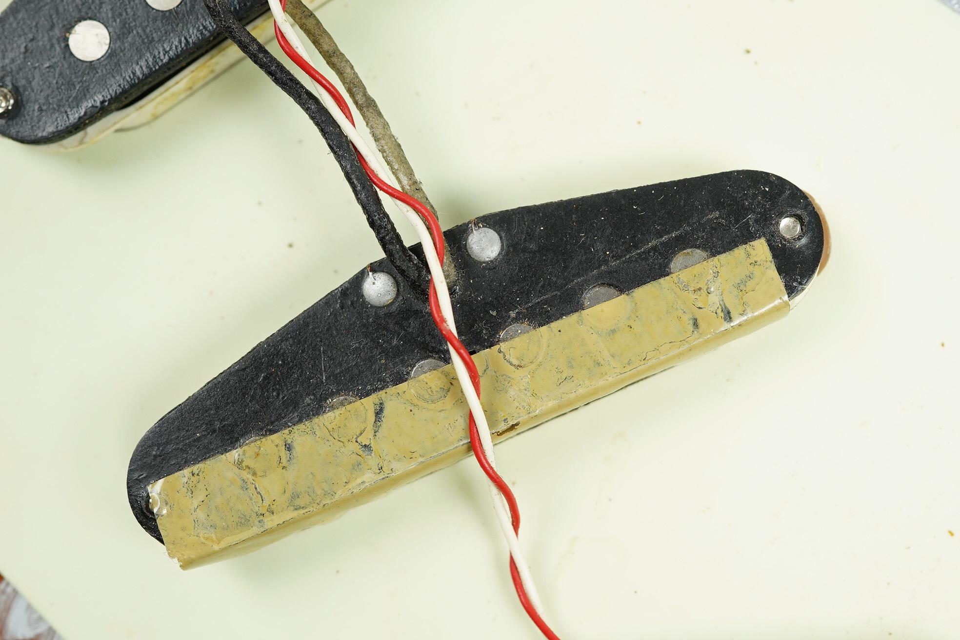 Electronically two of the pickups are correct and don’t look to have been rewound. The neck pickup is a later example and all the pots and switch have been changed.