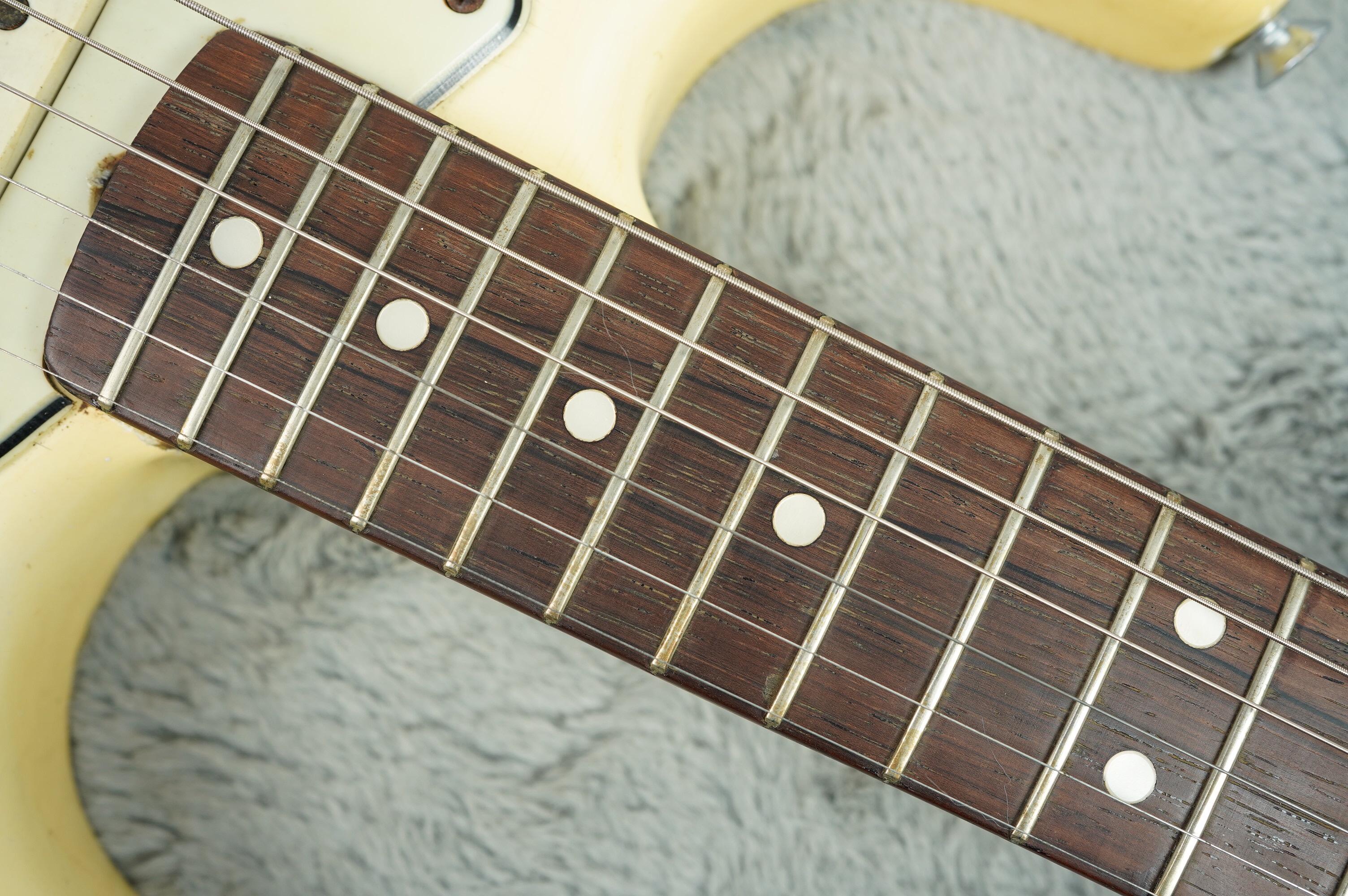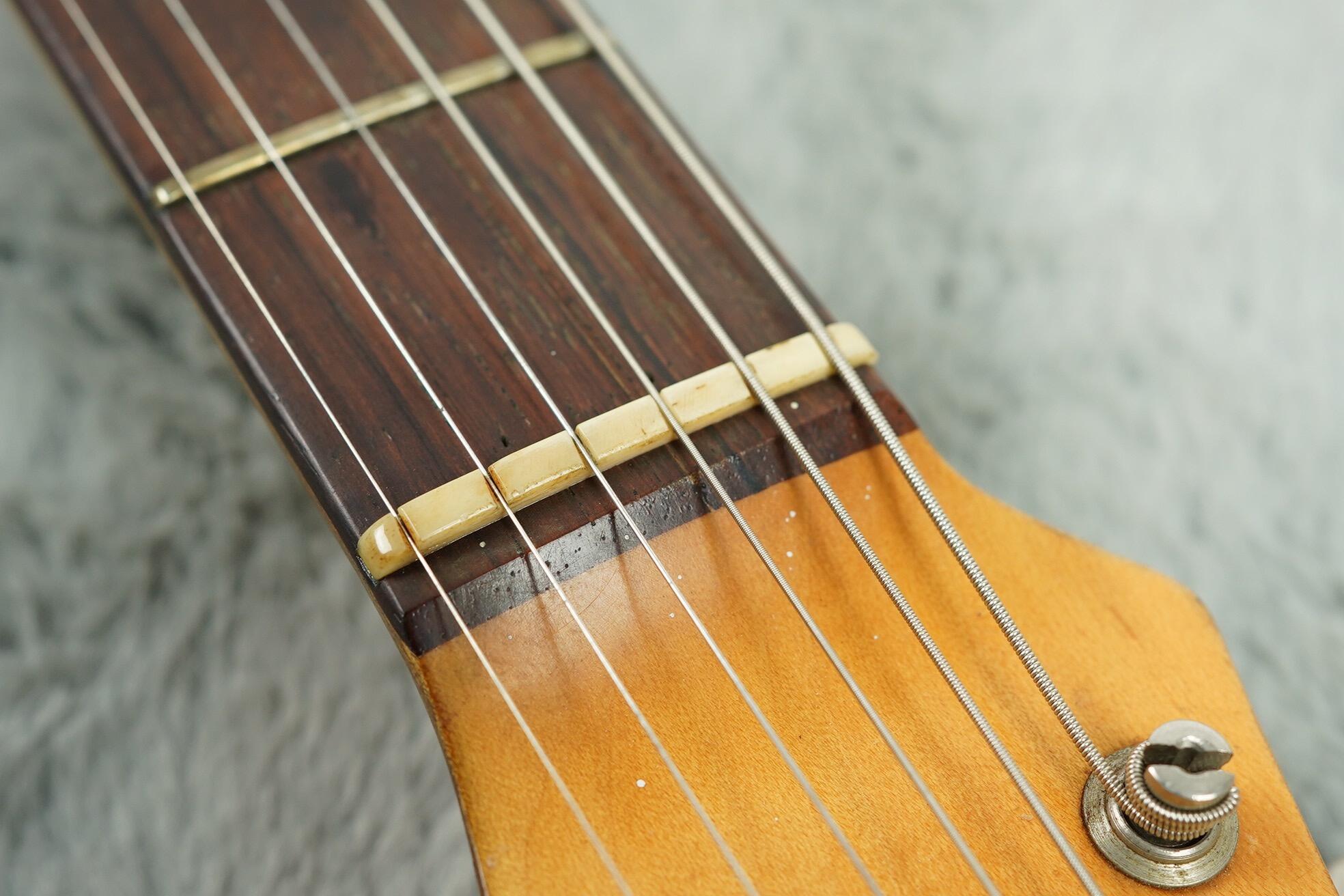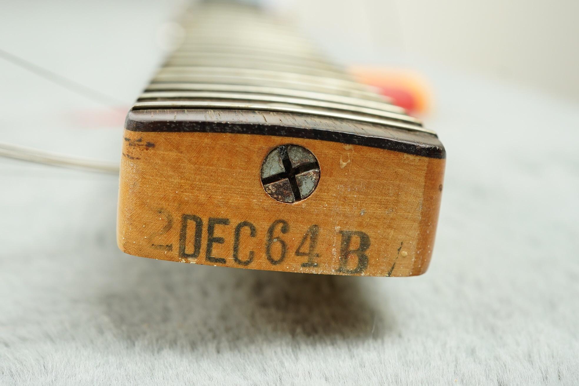 The neck too is in great shape. The finish has worn comfortably on the back and the fretboard is in great condition. The original frets have some life left in them. Neck date is December 1964.