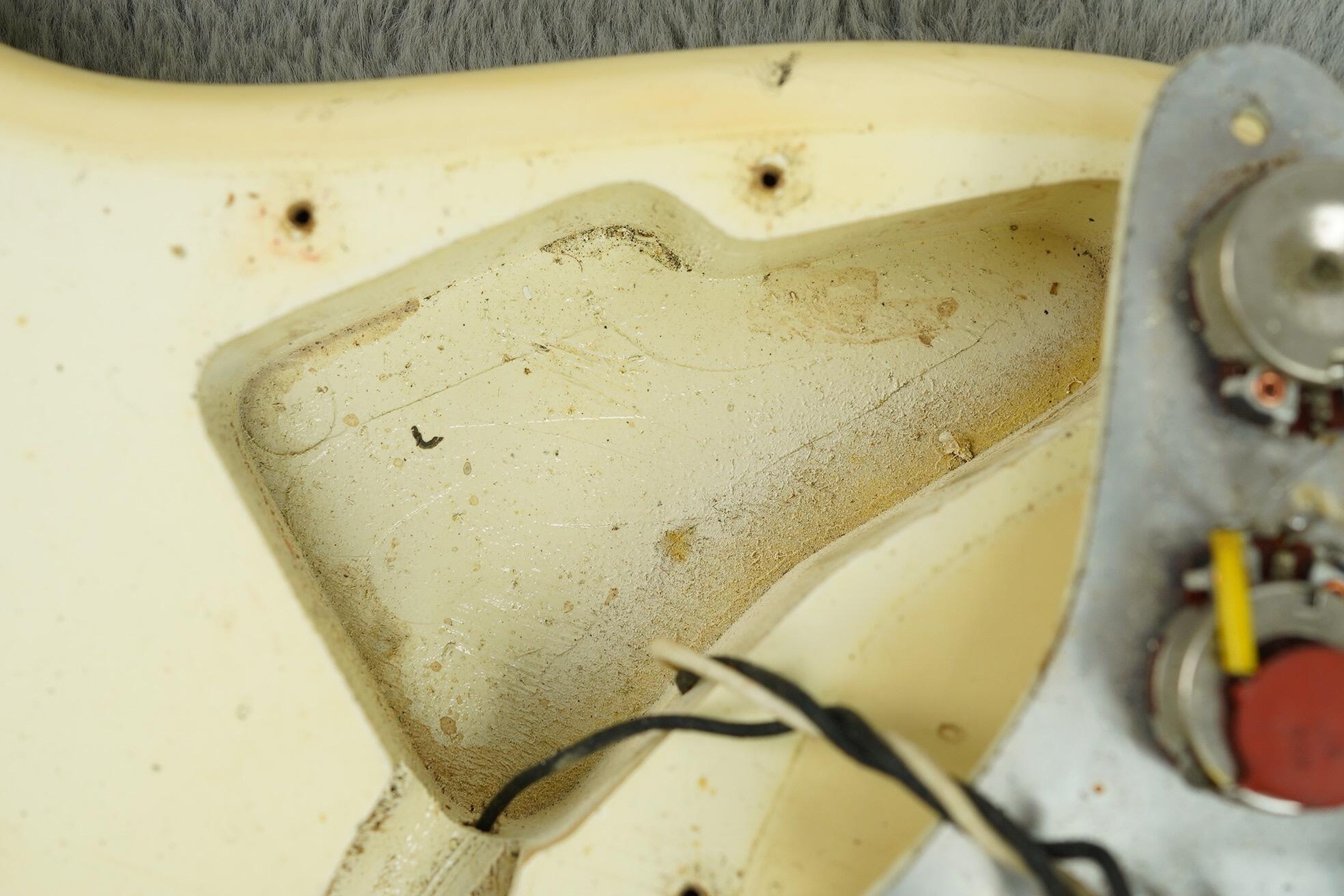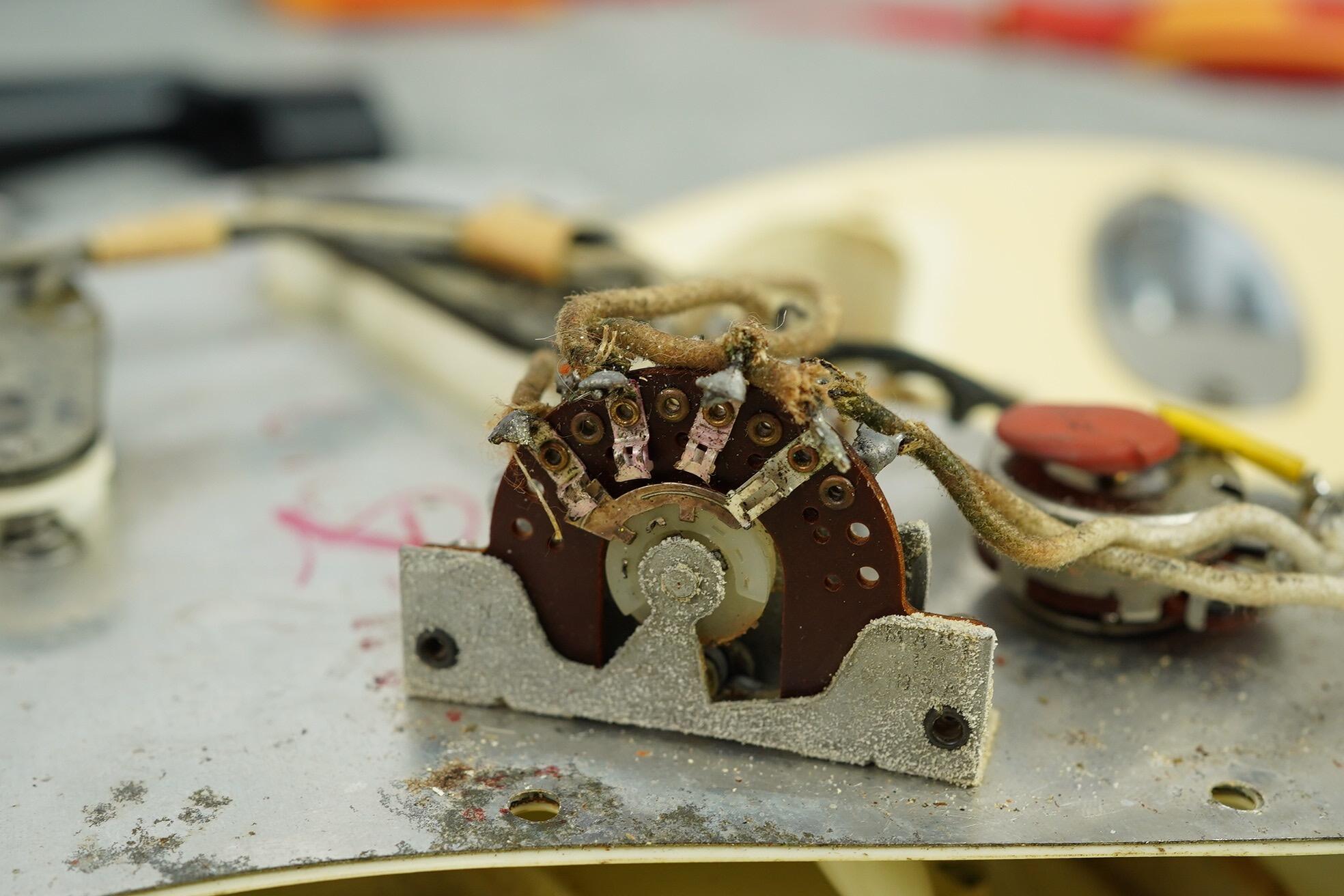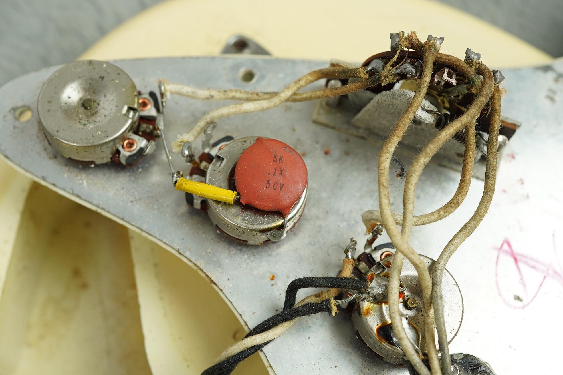 The correct grey bottom pickups (February 12th 1965) are present as are the correct pots which are dated week 1 1965. None of the solder looks to have been disturbed.