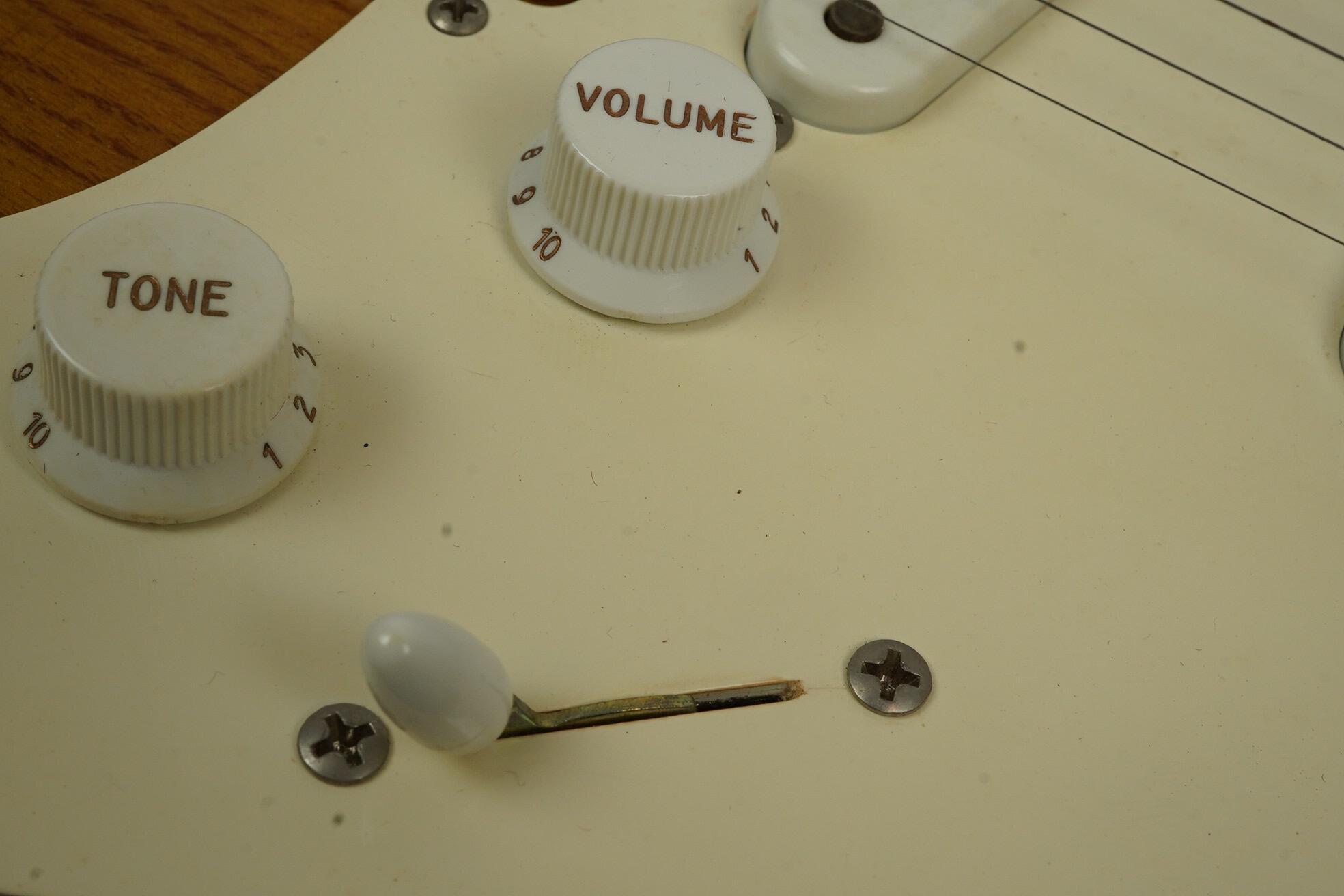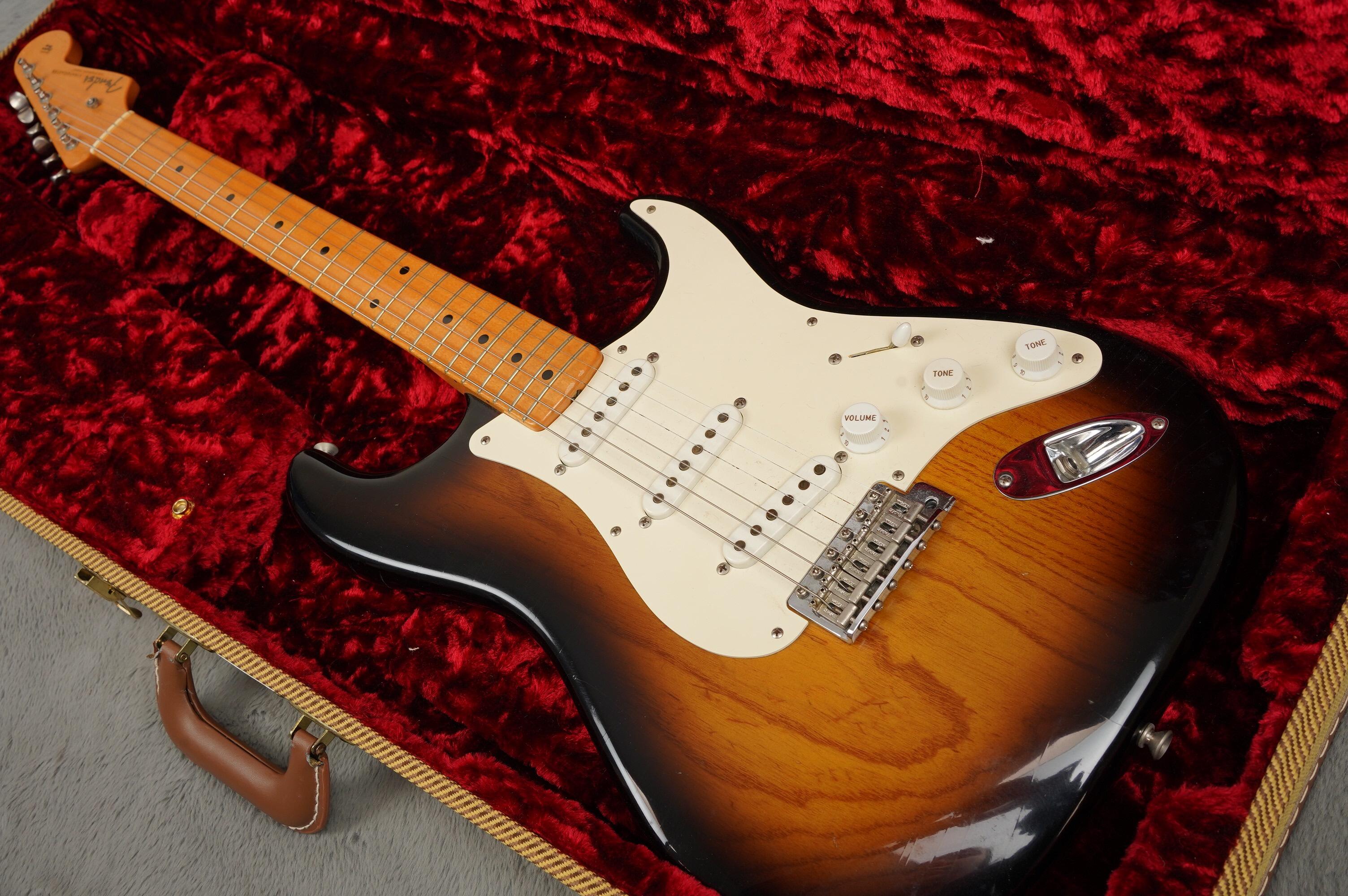 The guitar is in great condition with no changes to the original spec. The fingerboard shows little wear to the incredibly thin lacquer and the body has the odd ding or mark. The neck is a comfortable to play large U profile with a 7.25 “ radius fingerboard with vintage fret wire. The trio of Custom Shop Vintage ’54 pickups have large Alnico III magnets with FormVar coated copper wire and sound fantastic offering all of the classic Strat tones you would expect of an instrument of this caliber.