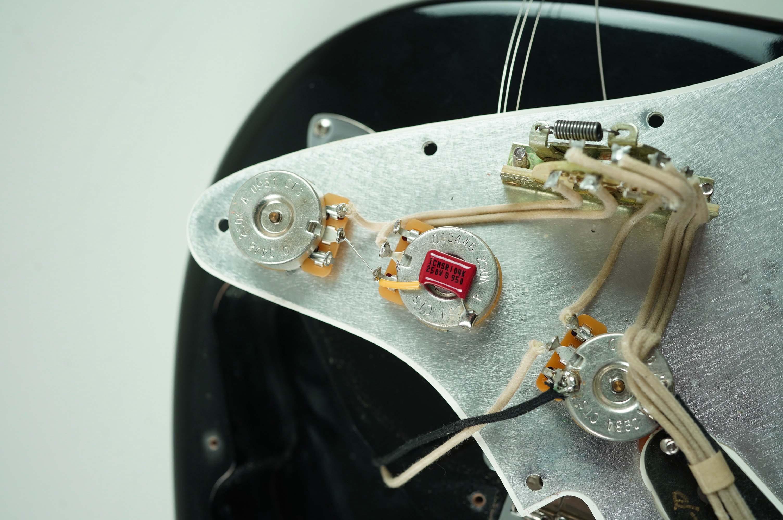 Electronics: 5-way selector, 250k pots, (white knobs and tip)
