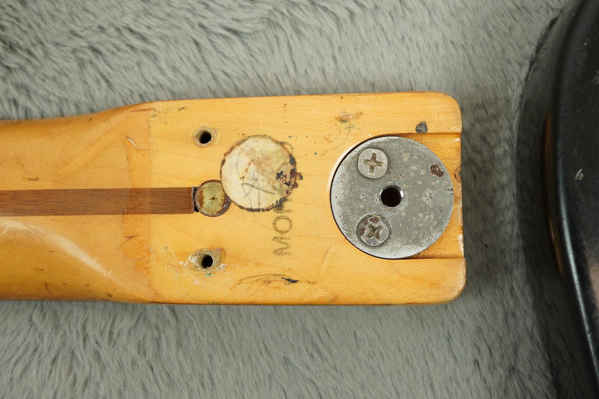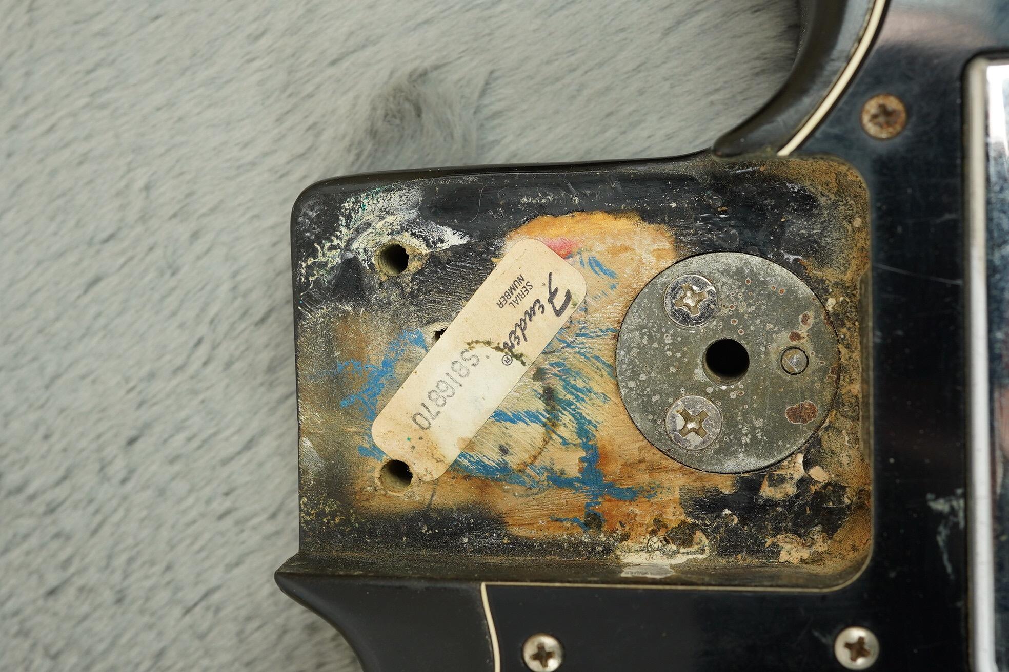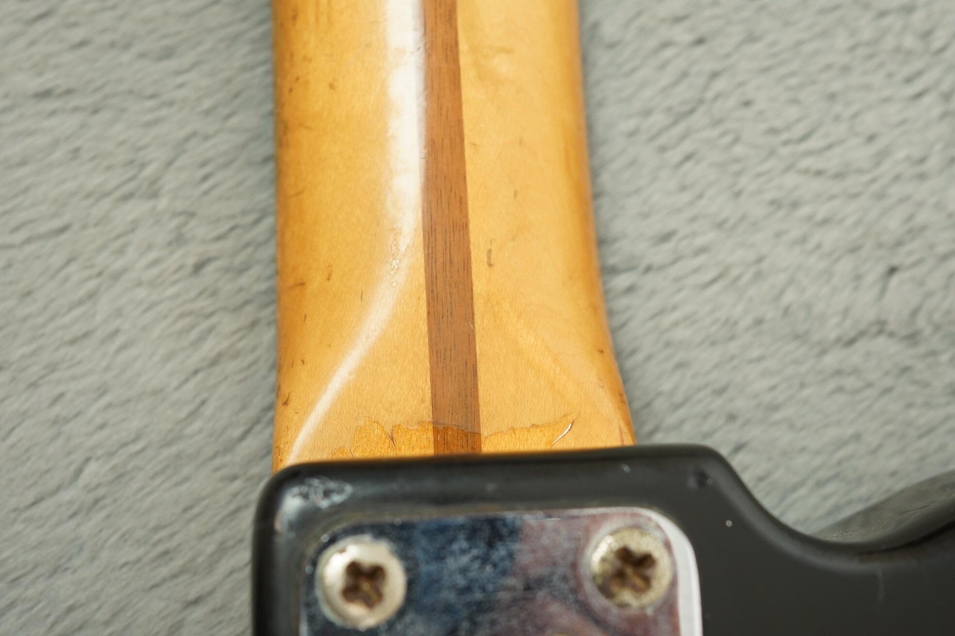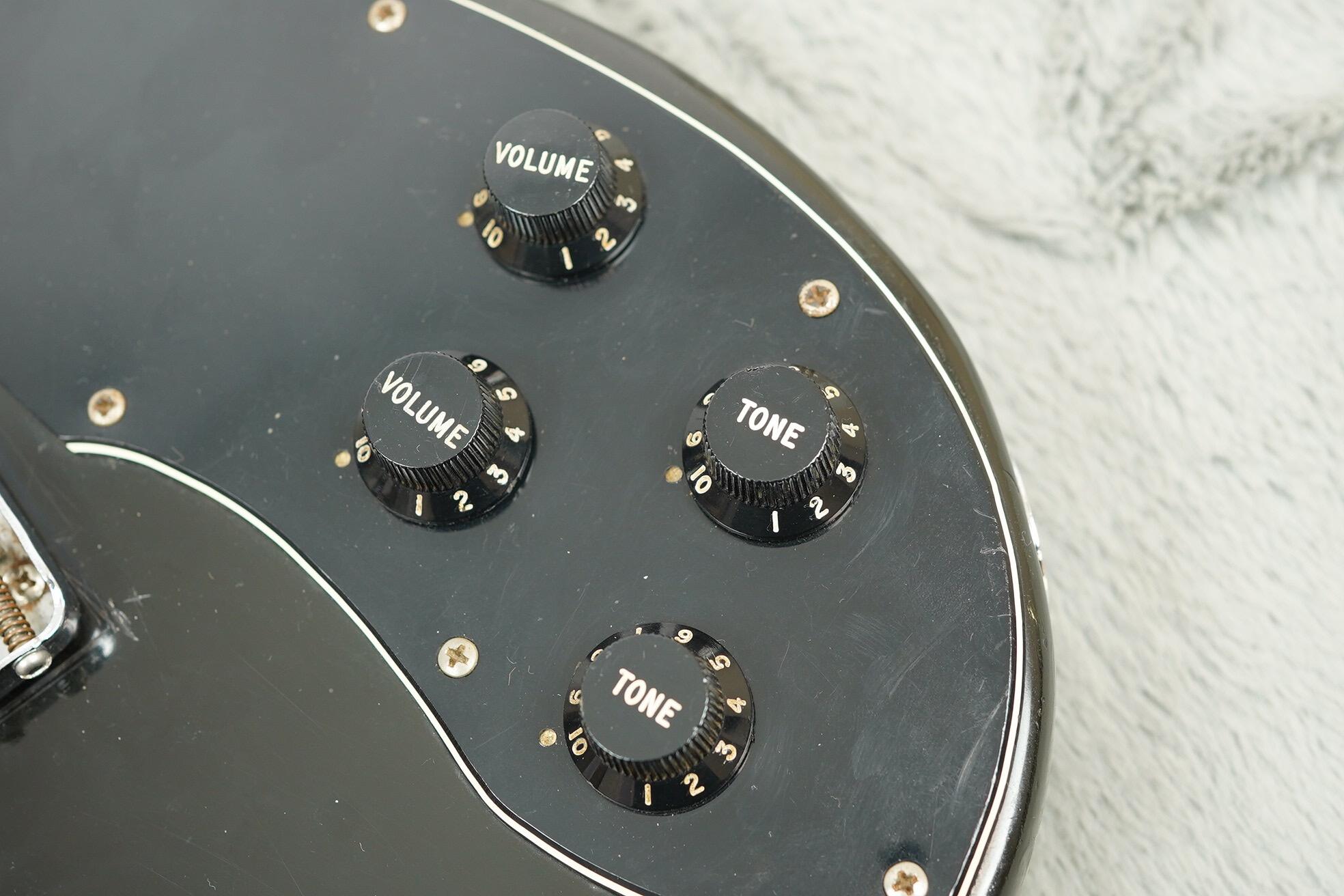 This guitar has clearly been played and enjoyed but remains in good condition overall, with honest wear, dings and light scratches that adds to its vintage vibe. The black finish has aged nicely with just the right amount of mojo, and besides a change saddle, all the right parts are present.