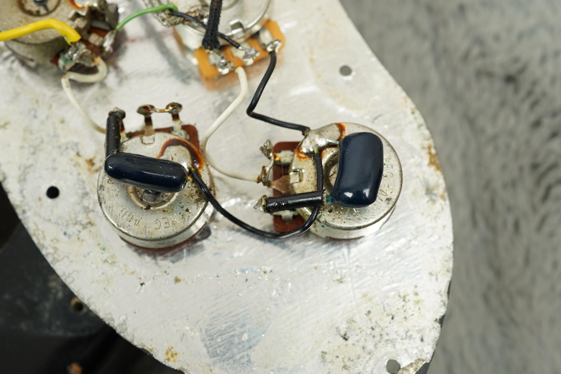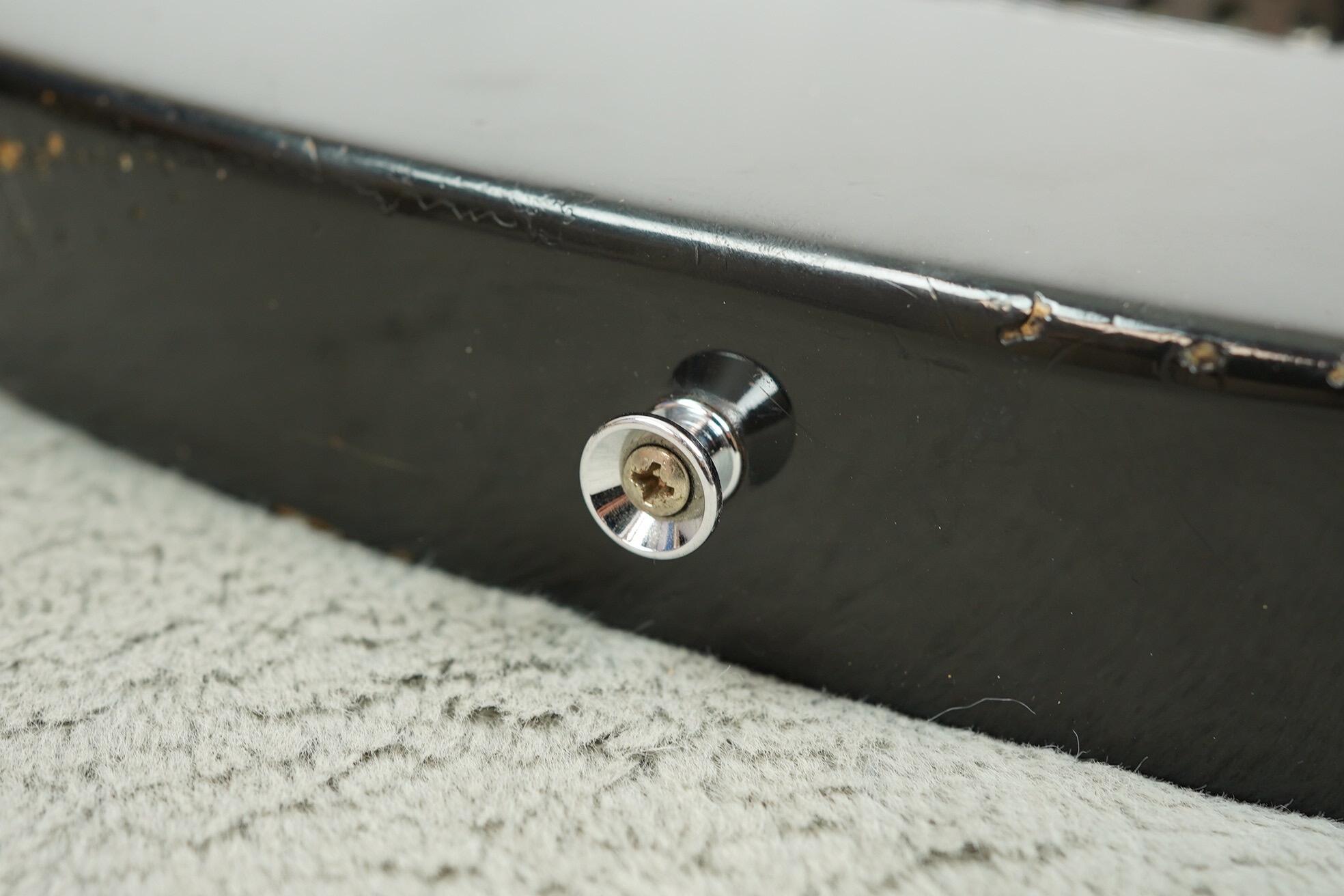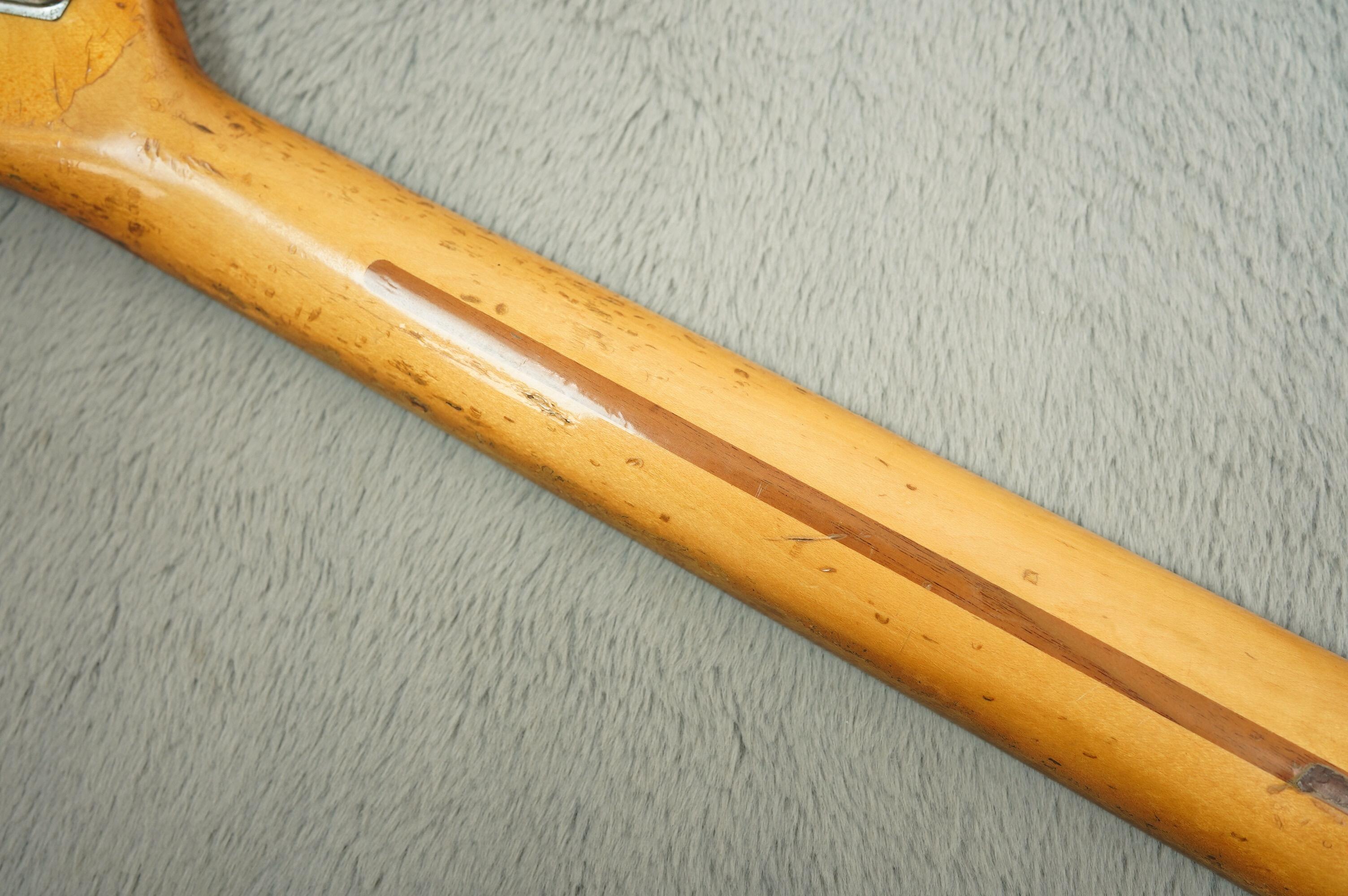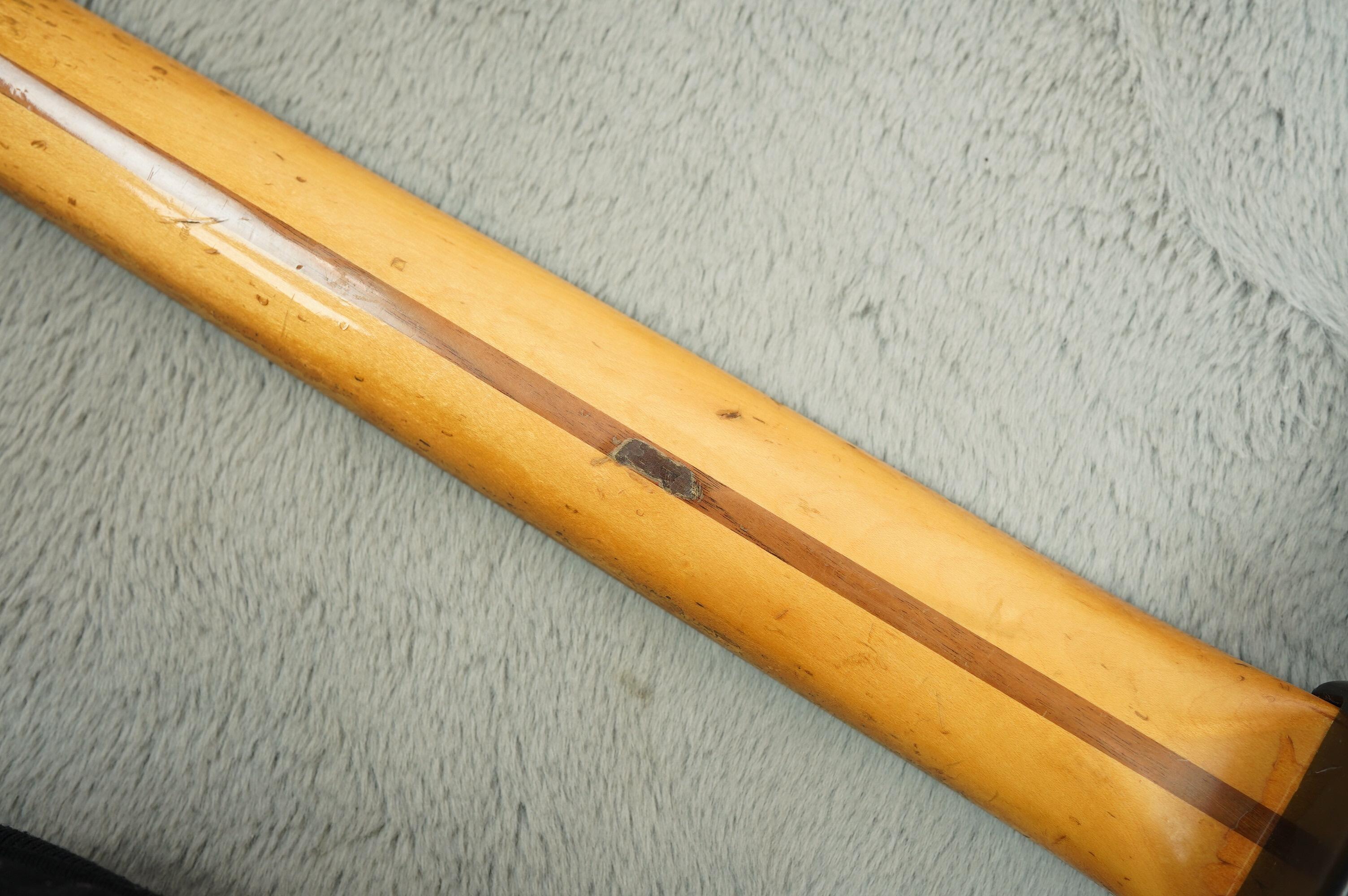 This guitar has clearly been played and enjoyed but remains in good condition overall, with honest wear, dings and light scratches that adds to its vintage vibe. The black finish has aged nicely with just the right amount of mojo, and besides a change saddle, all the right parts are present.