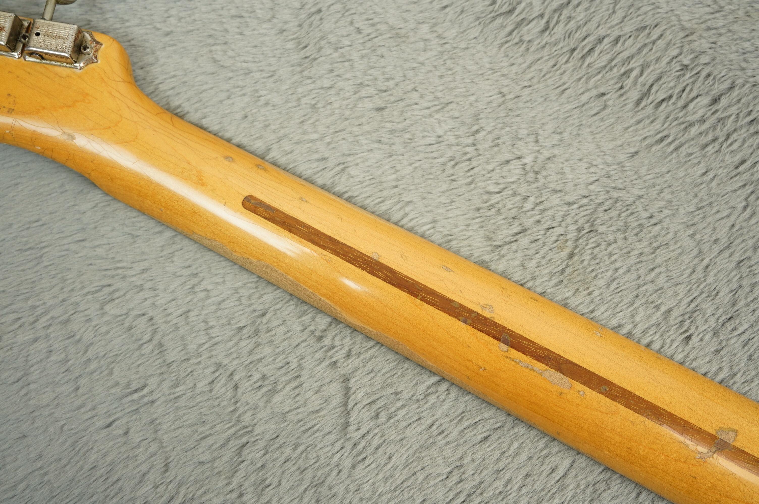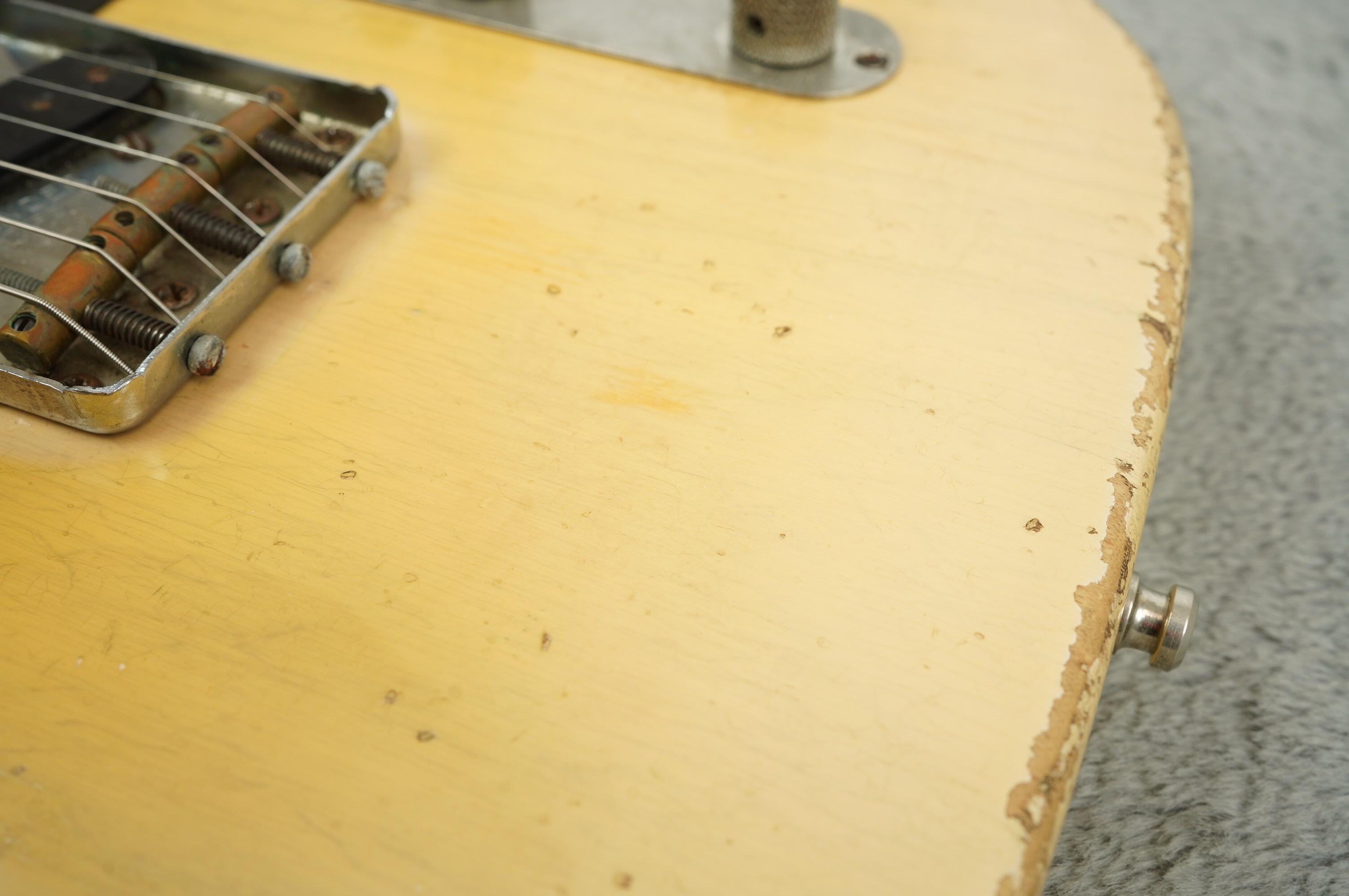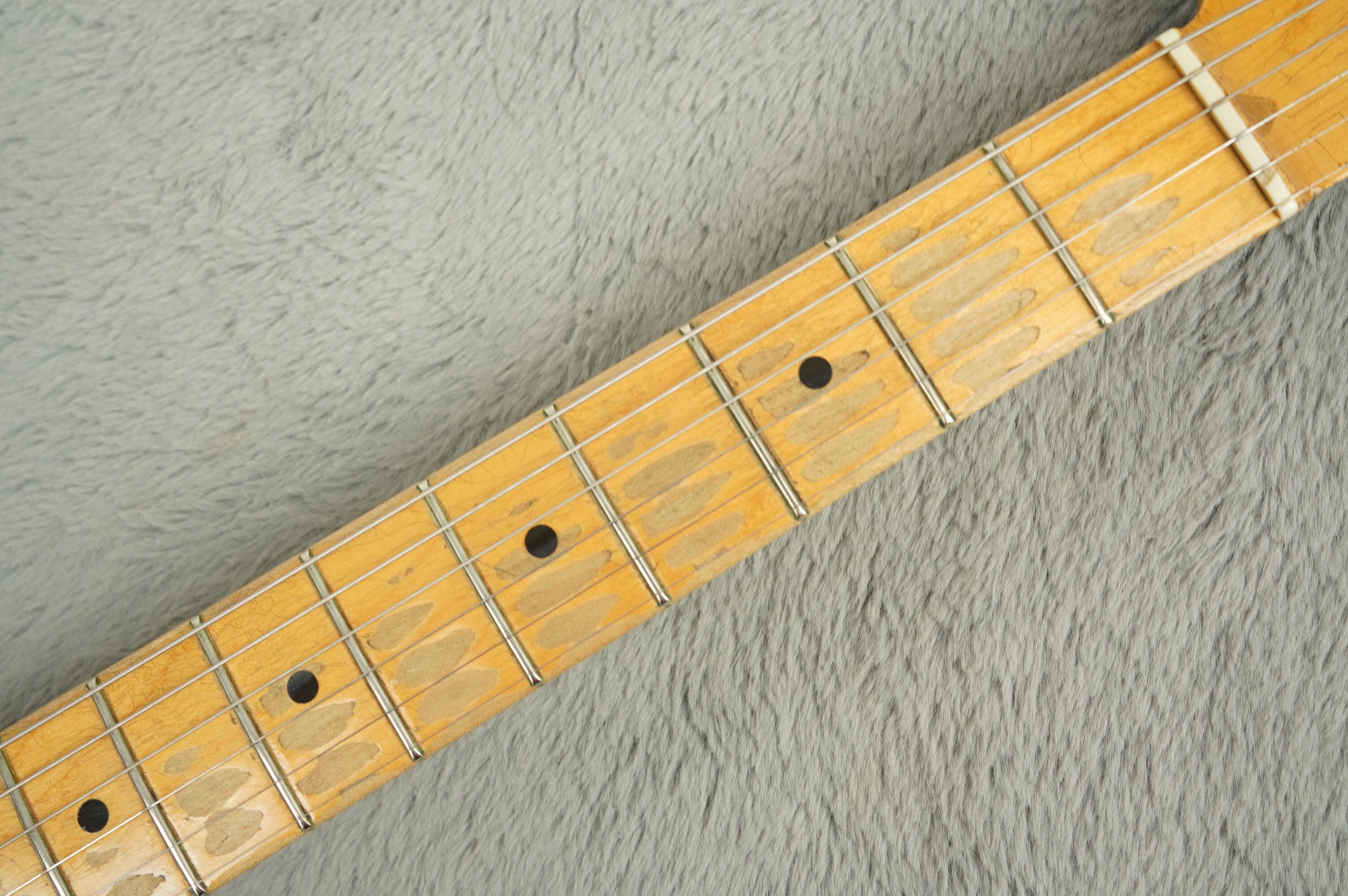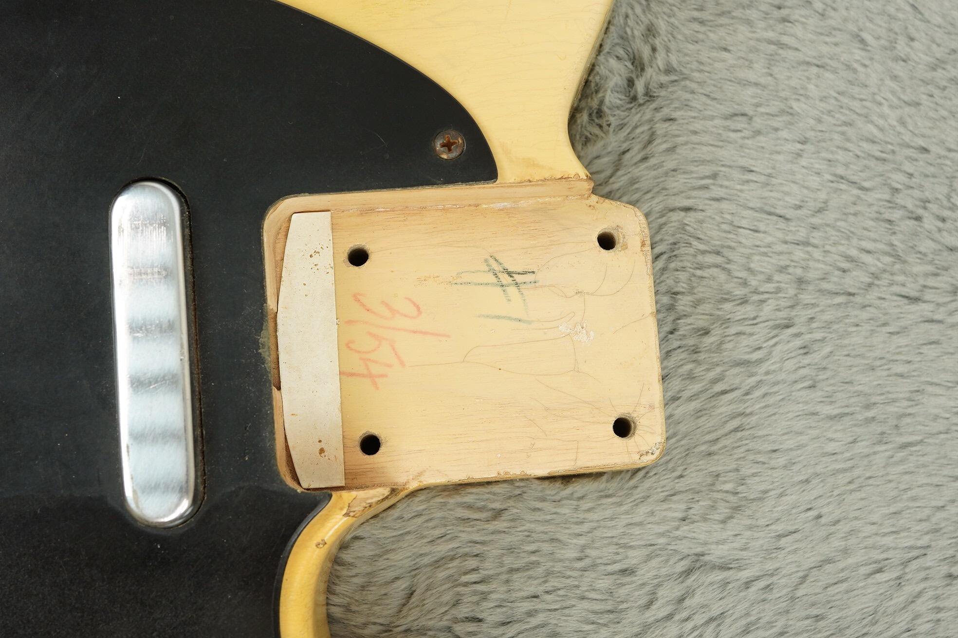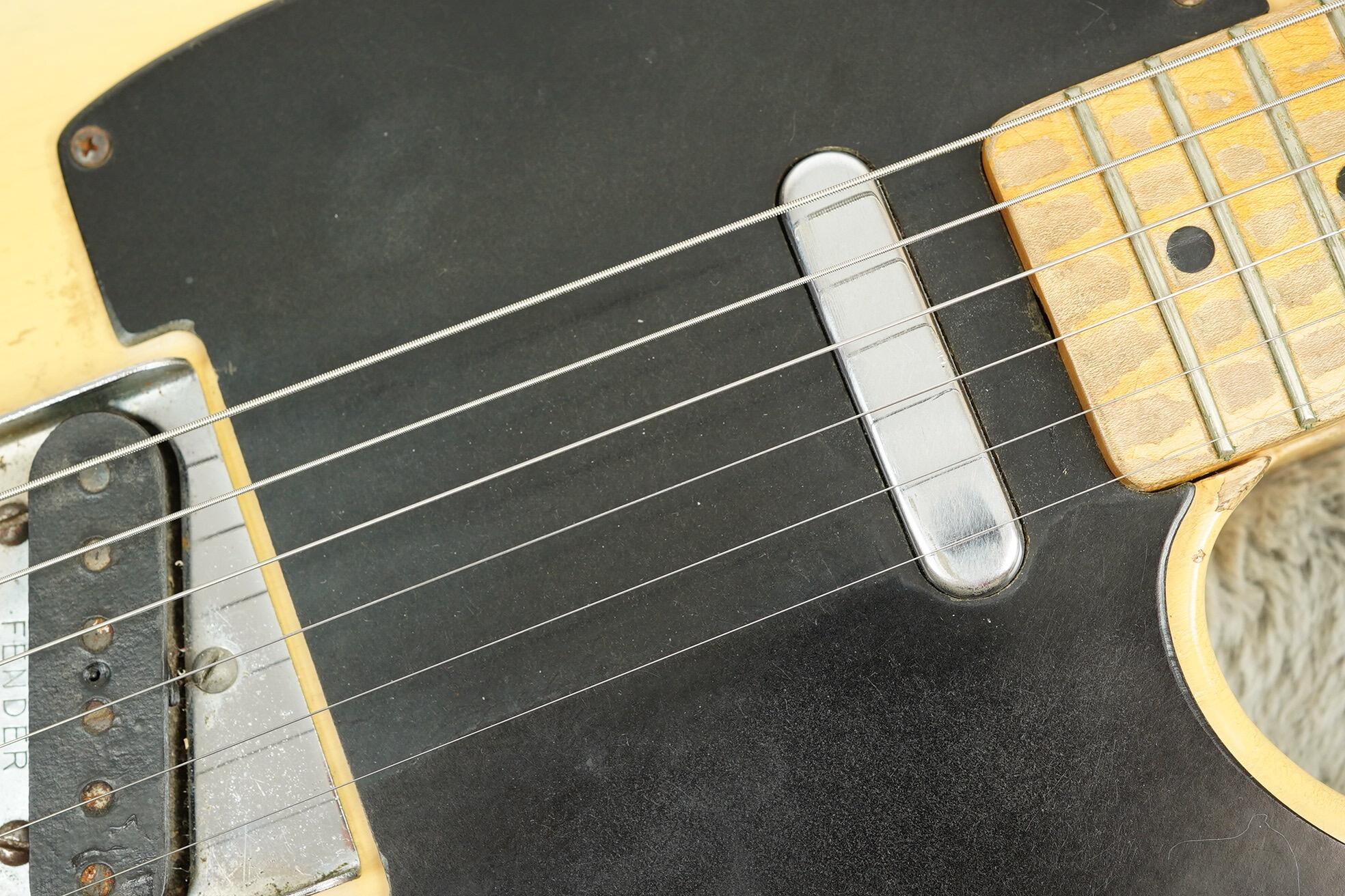 Tuners are '56-'58 Single Line Klusons, the bridge plate is correct and of Nocaster period with serial number 0313, pickups are '50s as is the switch and switch tip. The volume pot dates to '65 and the tone pot is period correct of Clarostat manufacture. All other parts are aged repro.