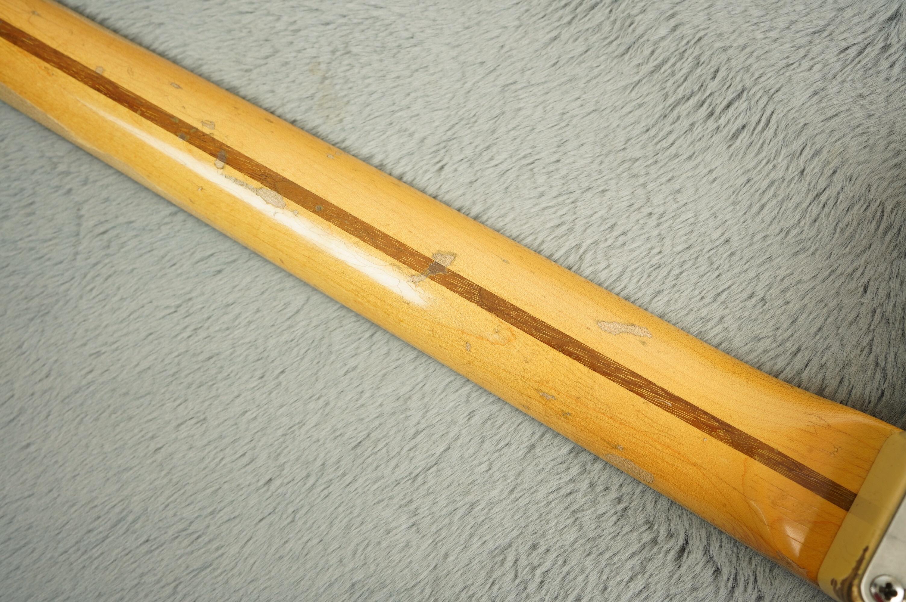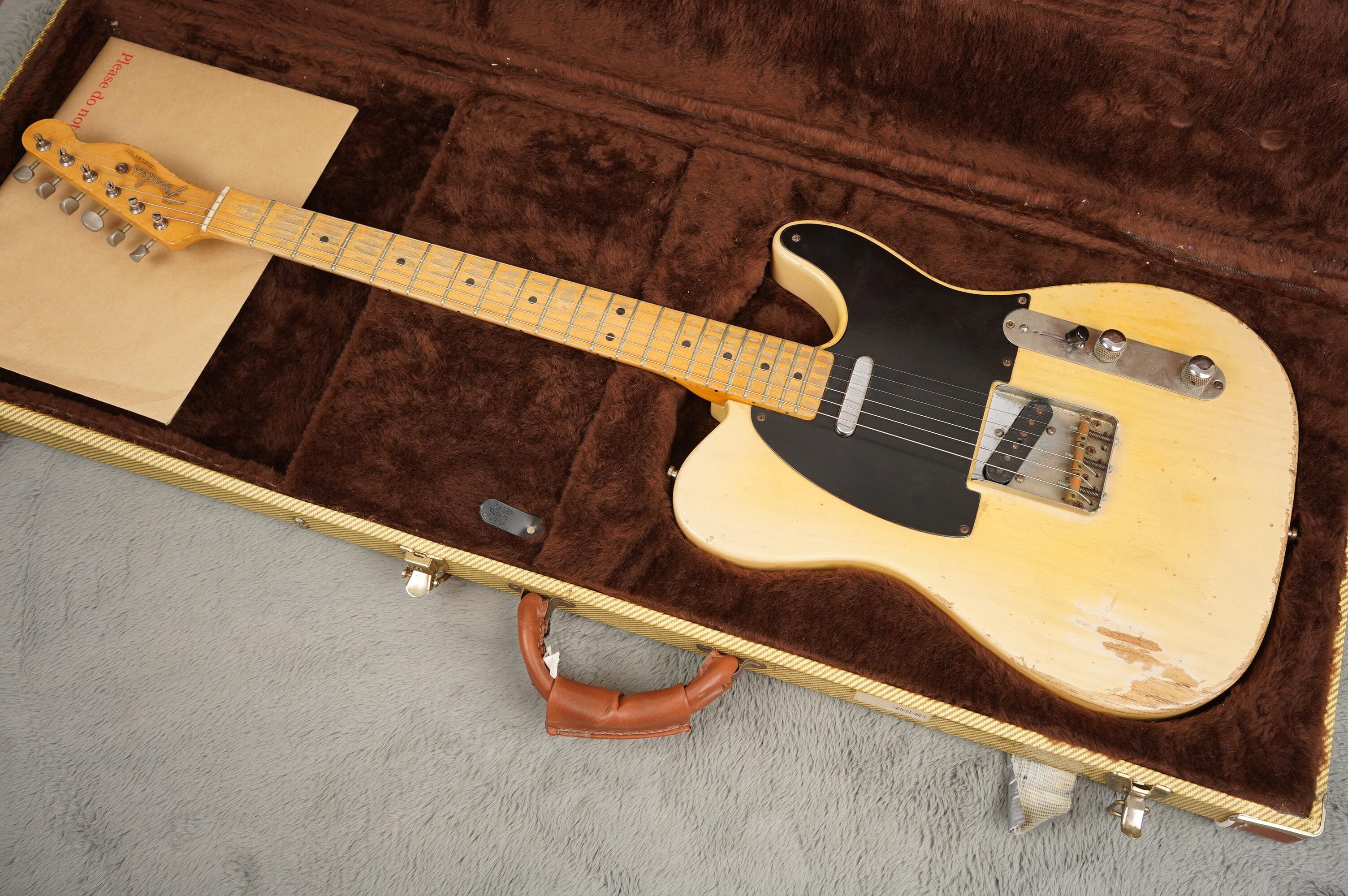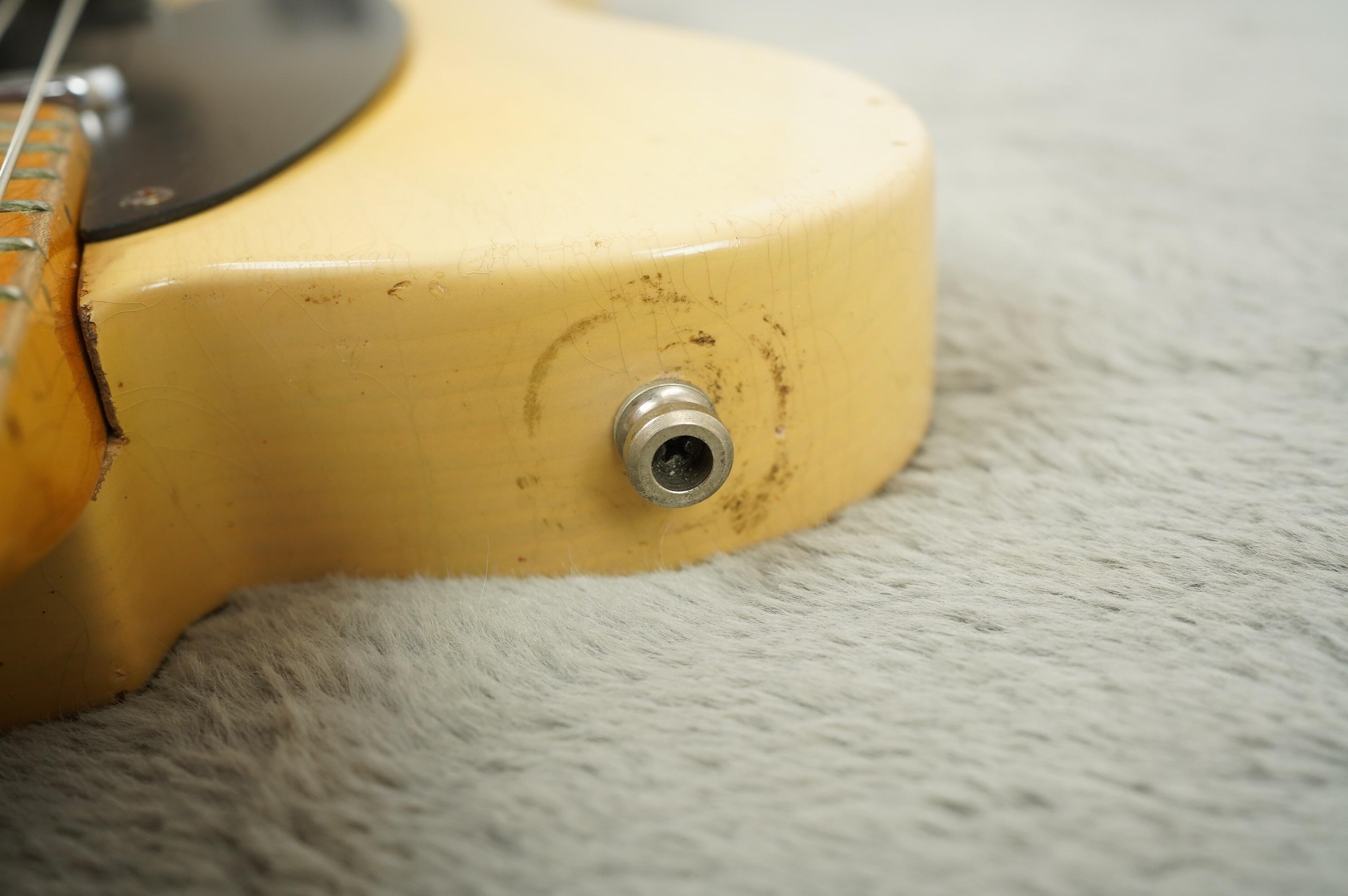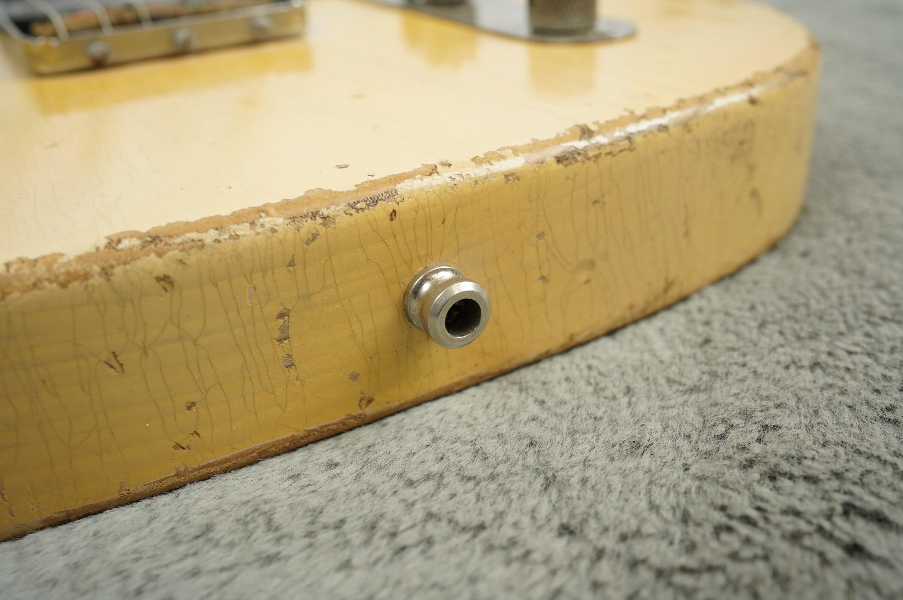 Tuners are '56-'58 Single Line Klusons, the bridge plate is correct and of Nocaster period with serial number 0313, pickups are '50s as is the switch and switch tip. The volume pot dates to '65 and the tone pot is period correct of Clarostat manufacture. All other parts are aged repro.