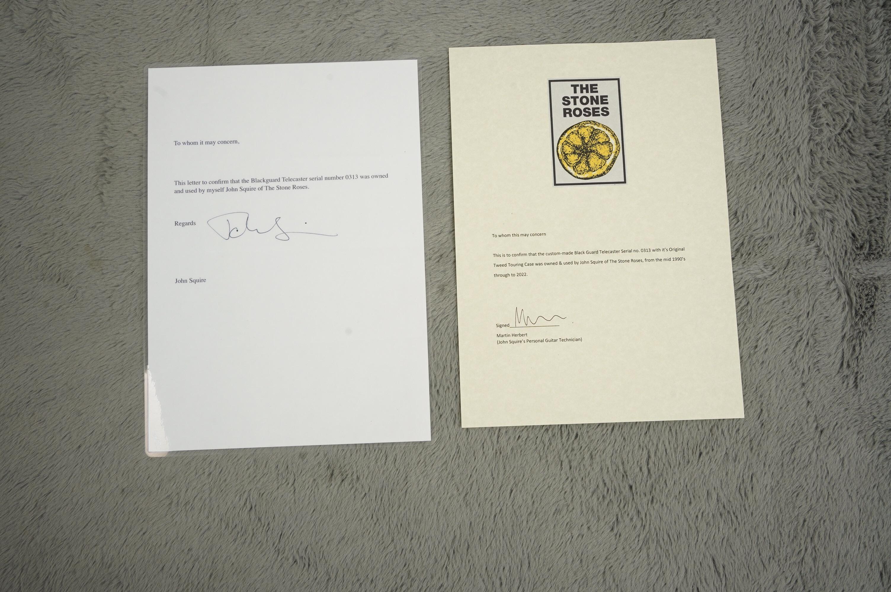 The guitar comes with a signed letter of provenance from John Squire, along with a letter from Martin Herbert, his long-time guitar tech of over 30 years and one of the instrument’s prior owners. Photographs of both Martin and John holding the guitar are included as part of the package.